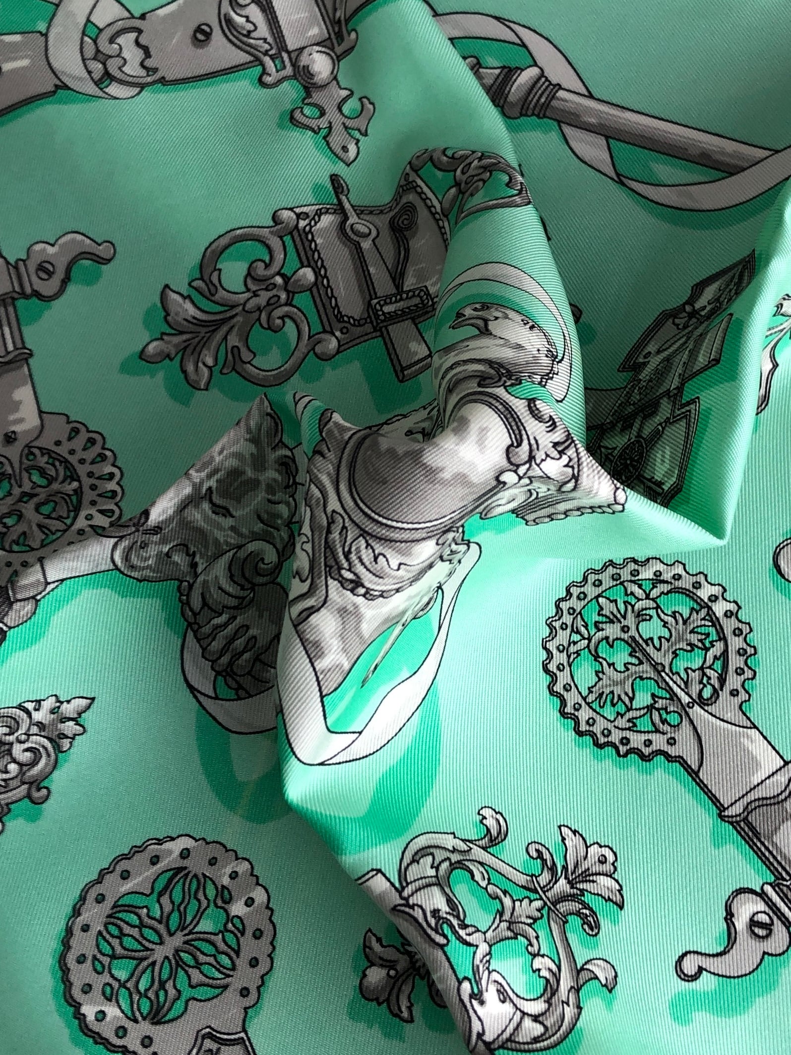 HERMES エルメス スカーフ グリーン シルク プチカレ vintage ヴィンテージ オールド n8f2h6