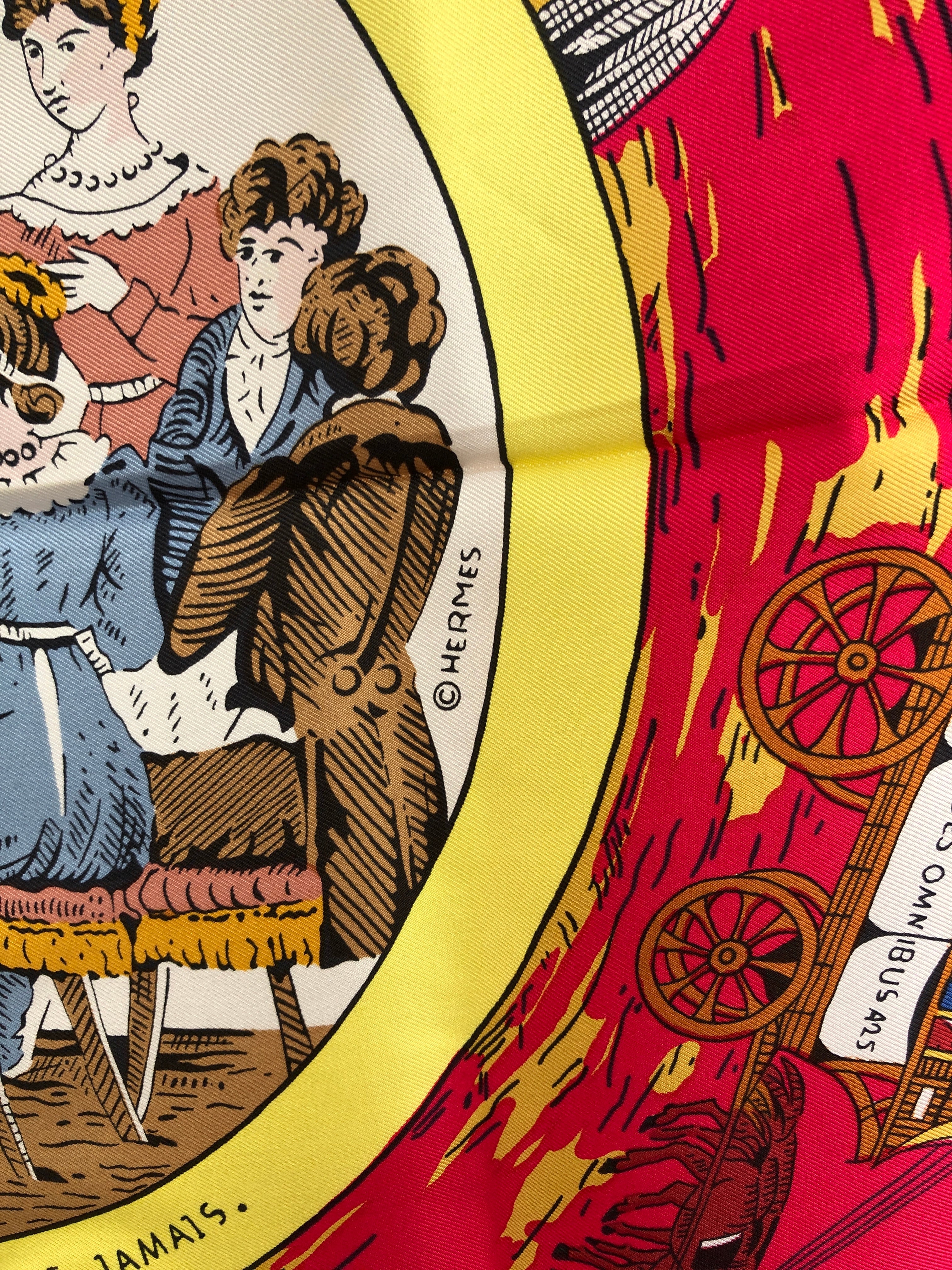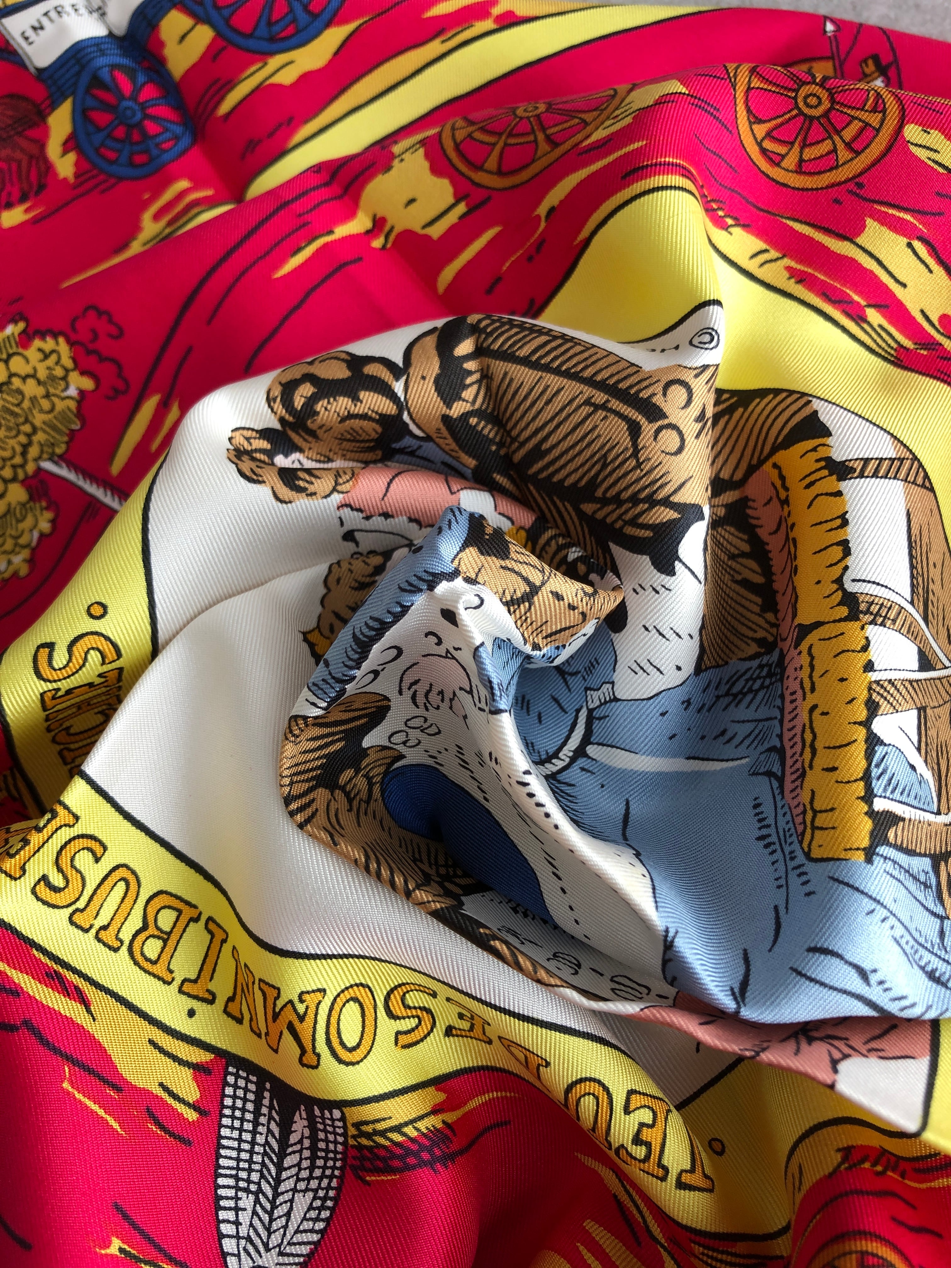 HERMES エルメス スカーフ レッド×ブルー シルク カレジェアン 《オムニバスと白い貴婦人のゲーム》vintage ヴィンテージ オールド xxzprf