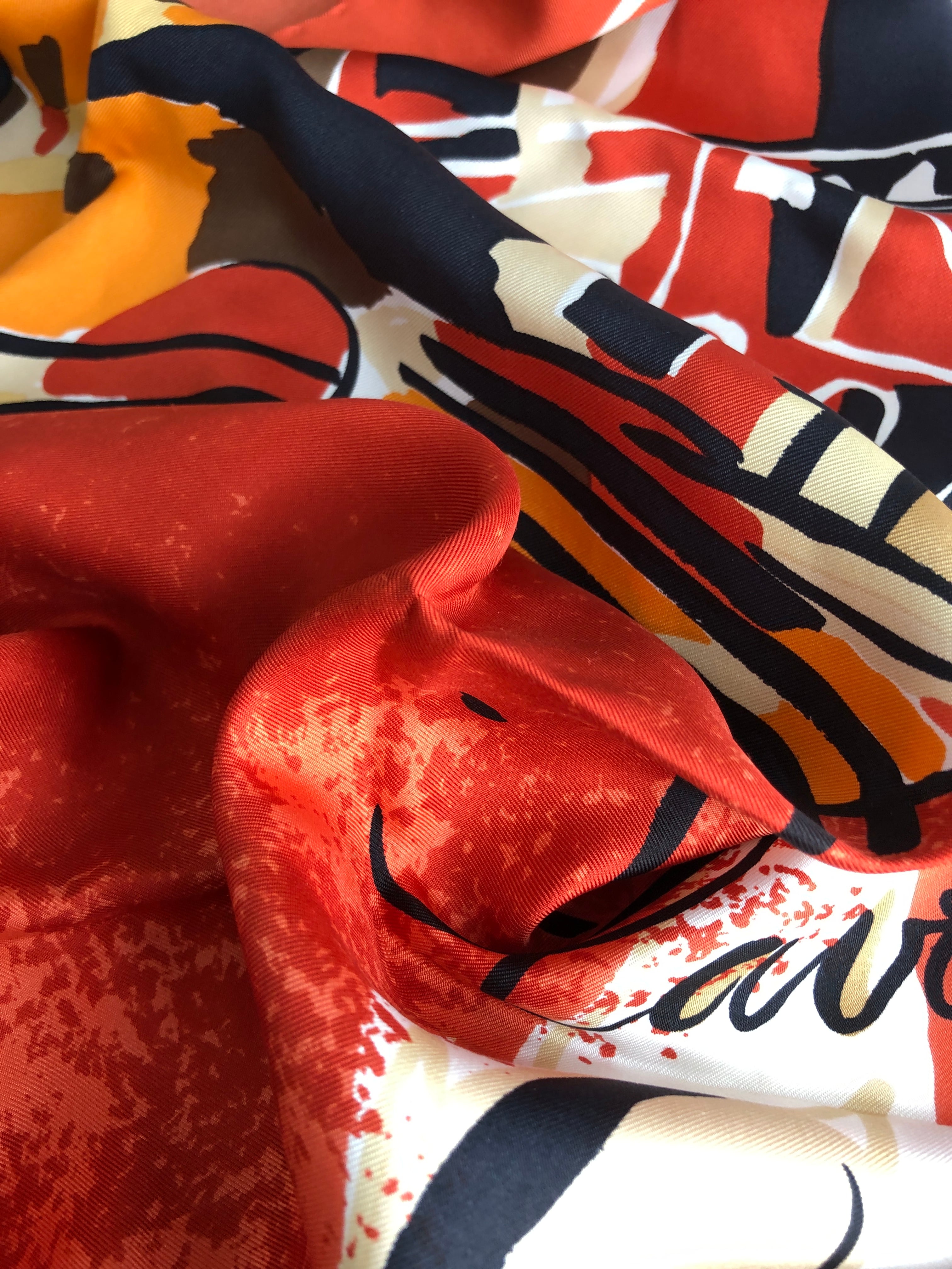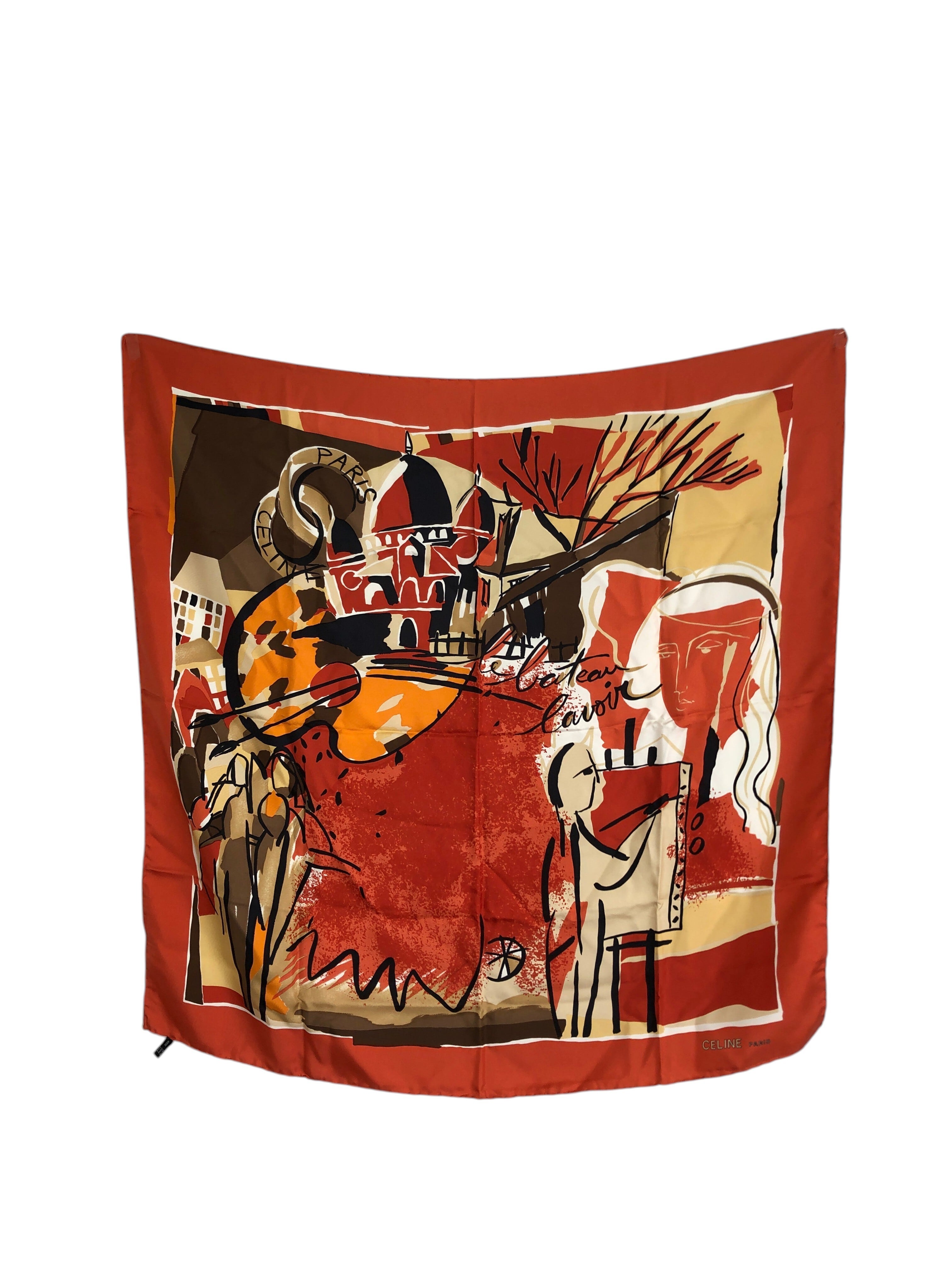 CELINE セリーヌ スカーフ オレンジ 婦人モチーフ シルク vintage ヴィンテージ オールド 2teu78