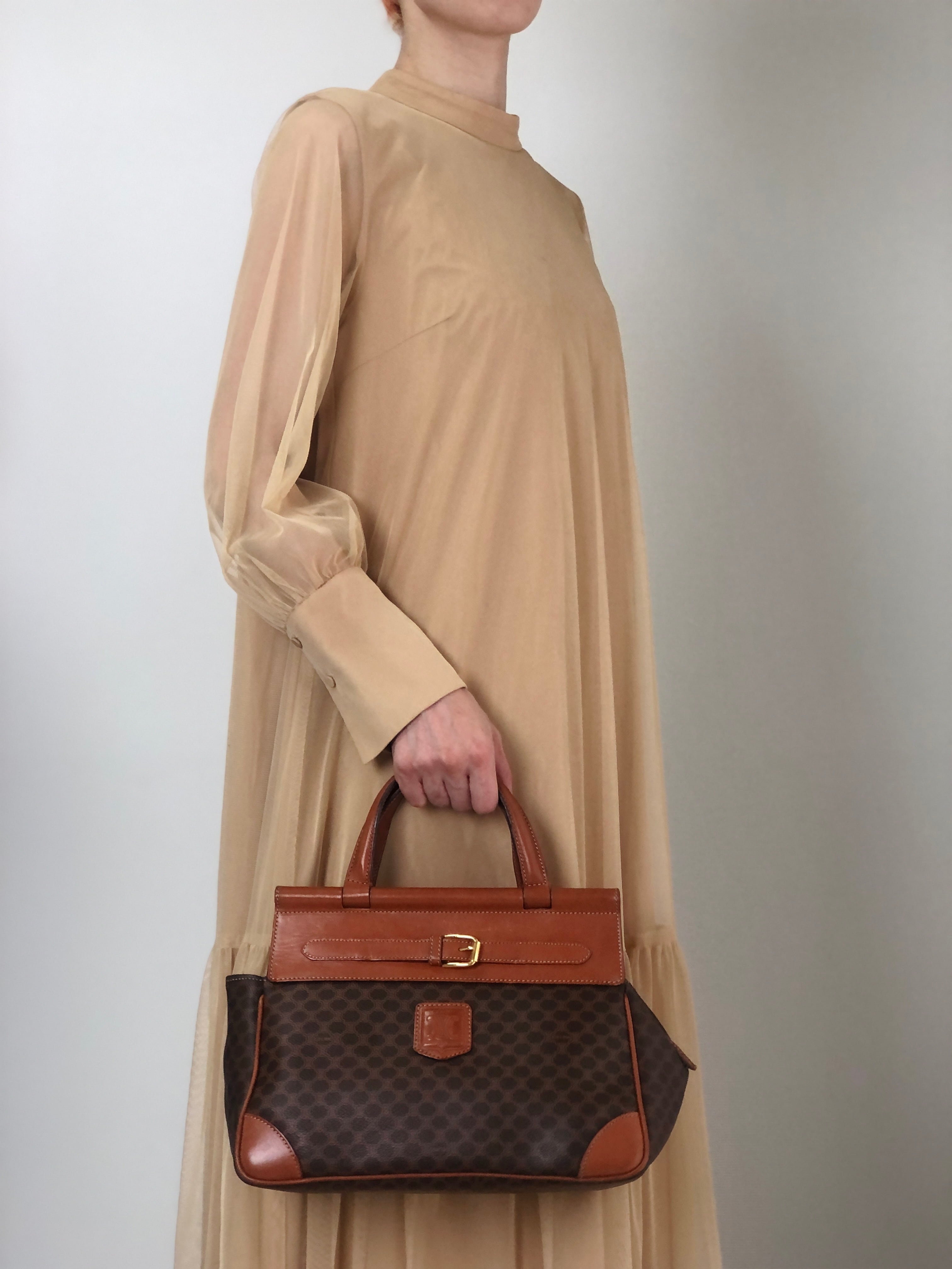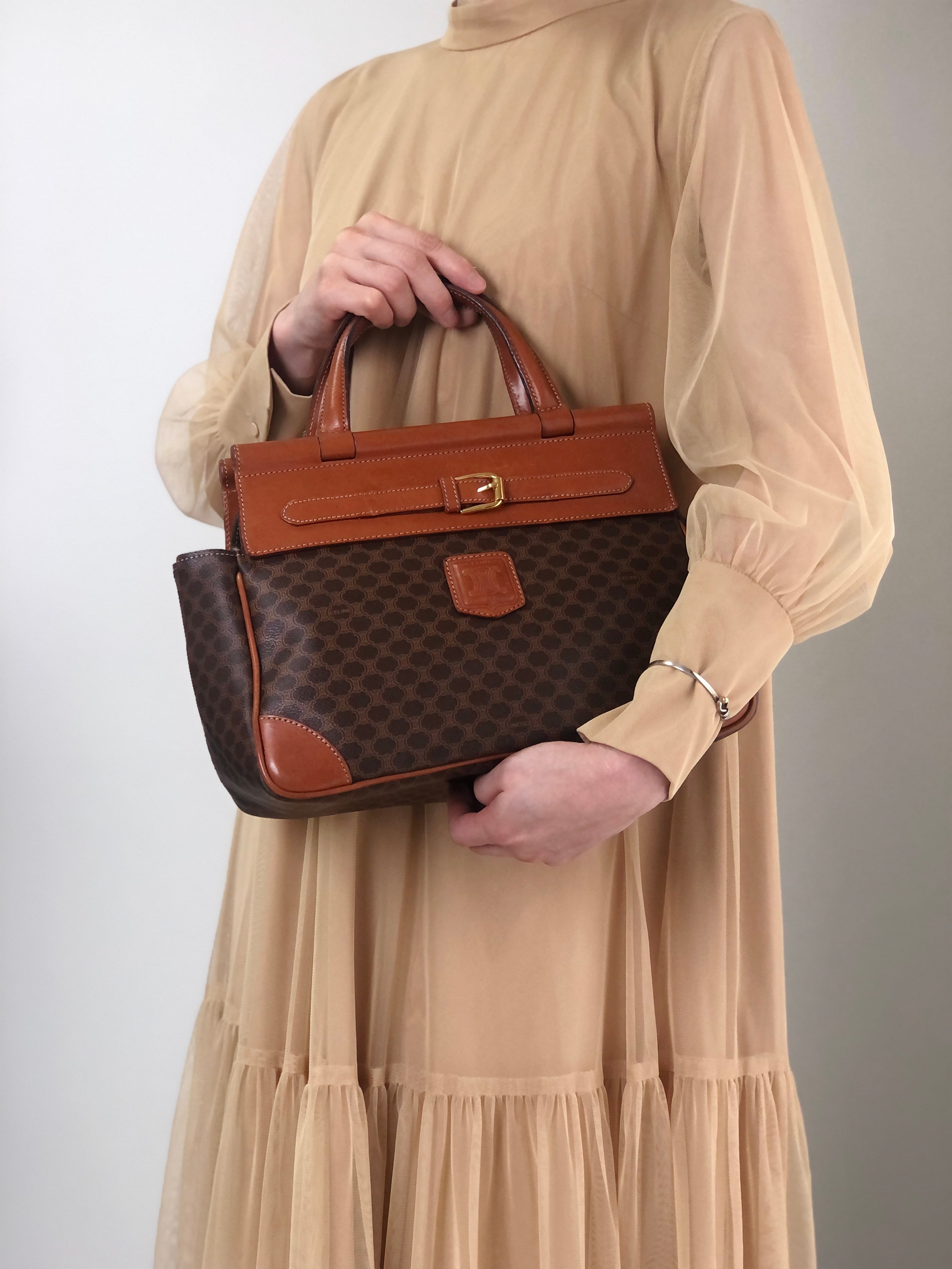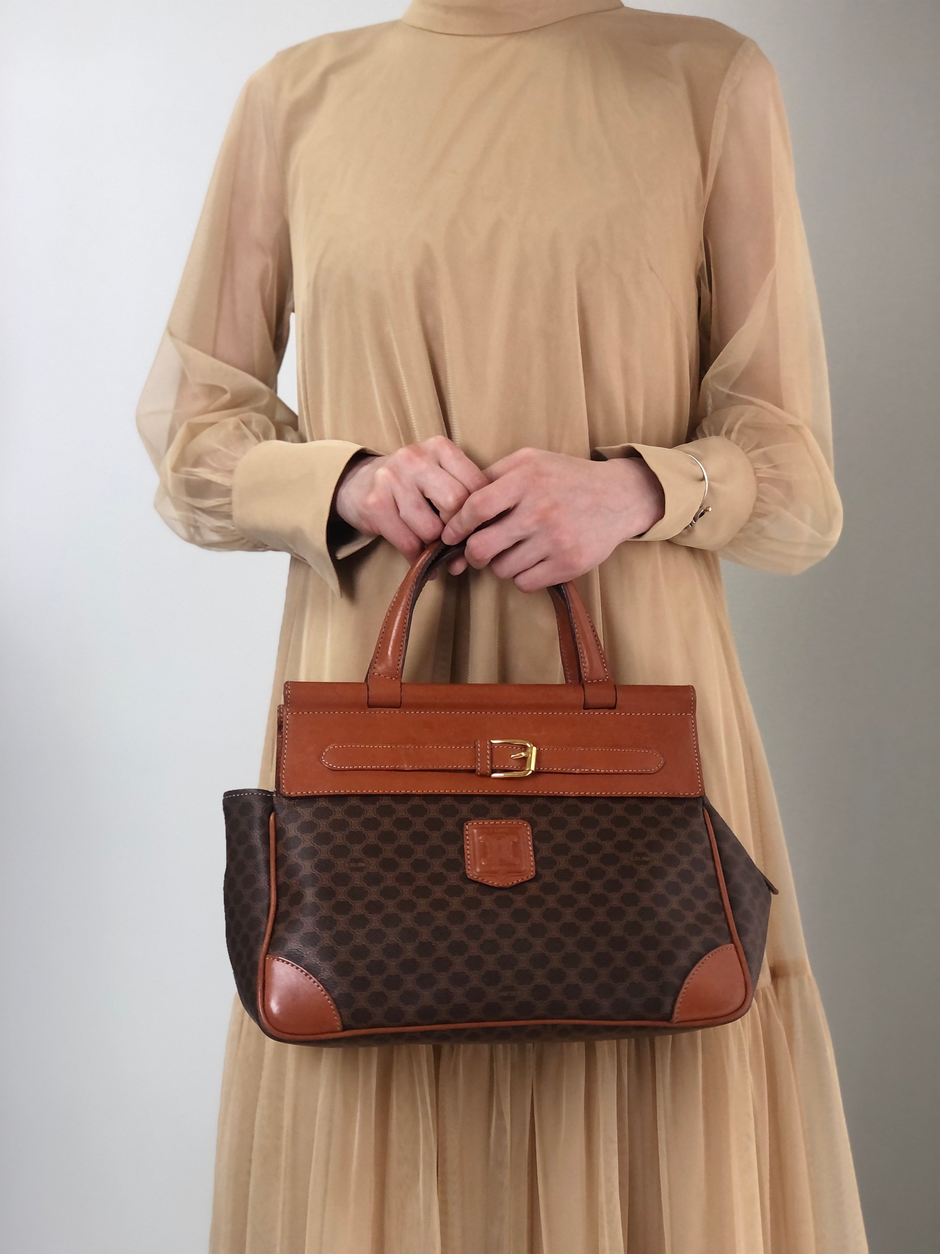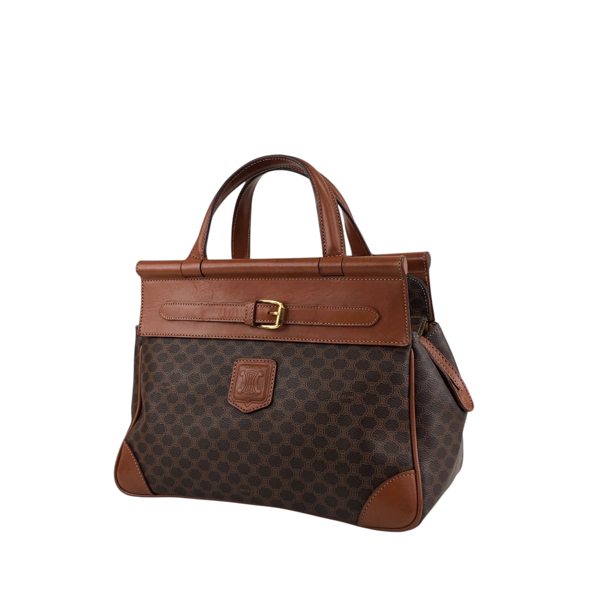 CELINE セリーヌ マカダム ハンドバッグ ブラウン ブラゾン型押し PVC フロントバックル vintage ヴィンテージ オールド kaare7