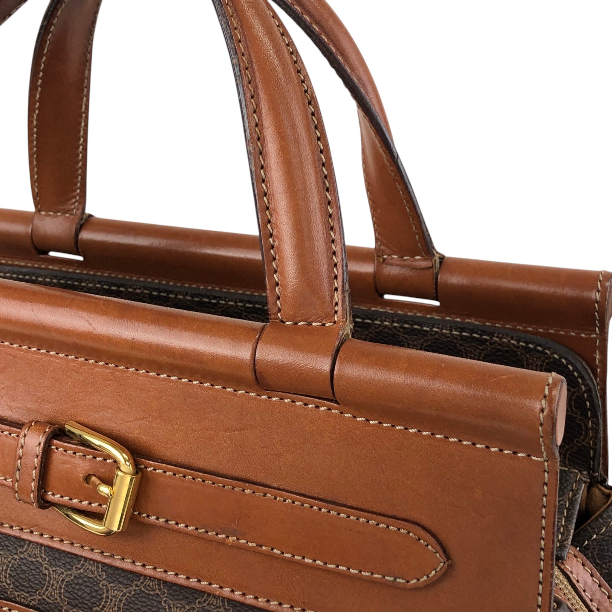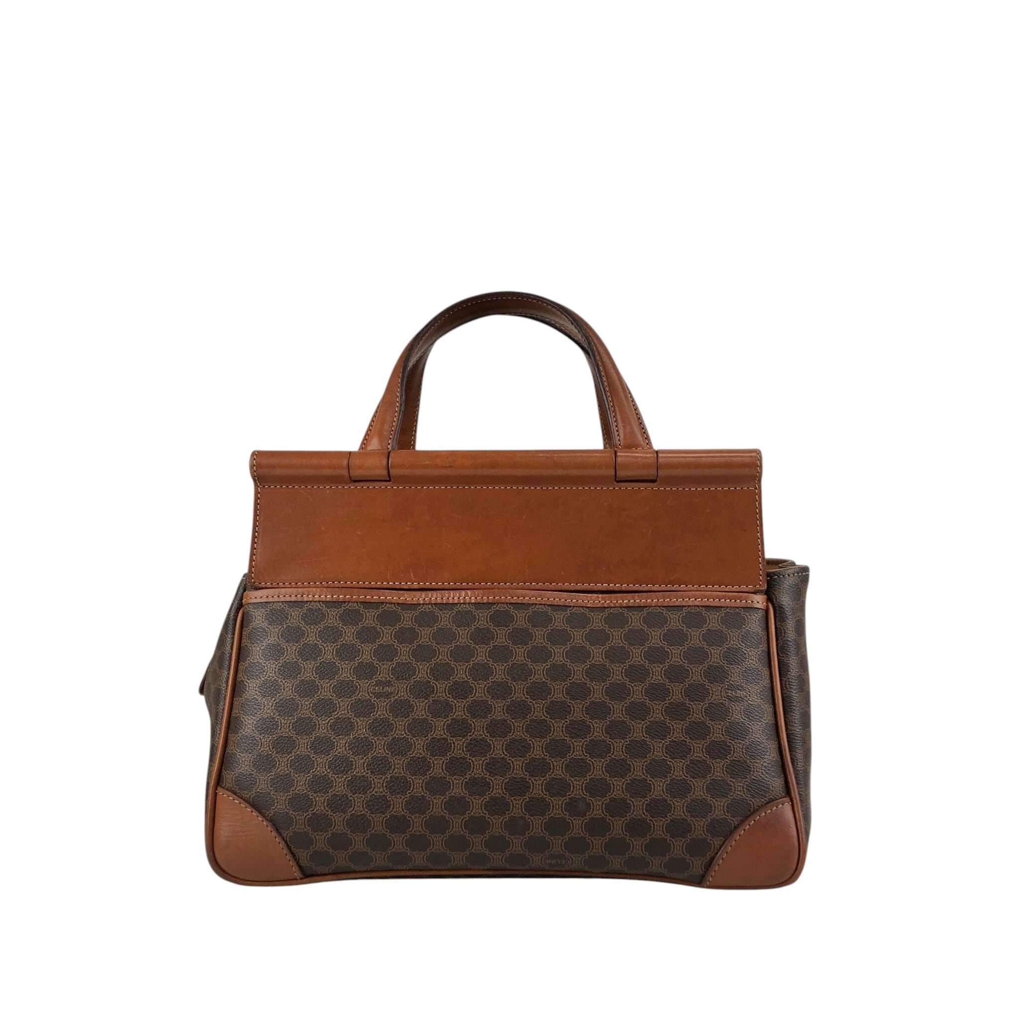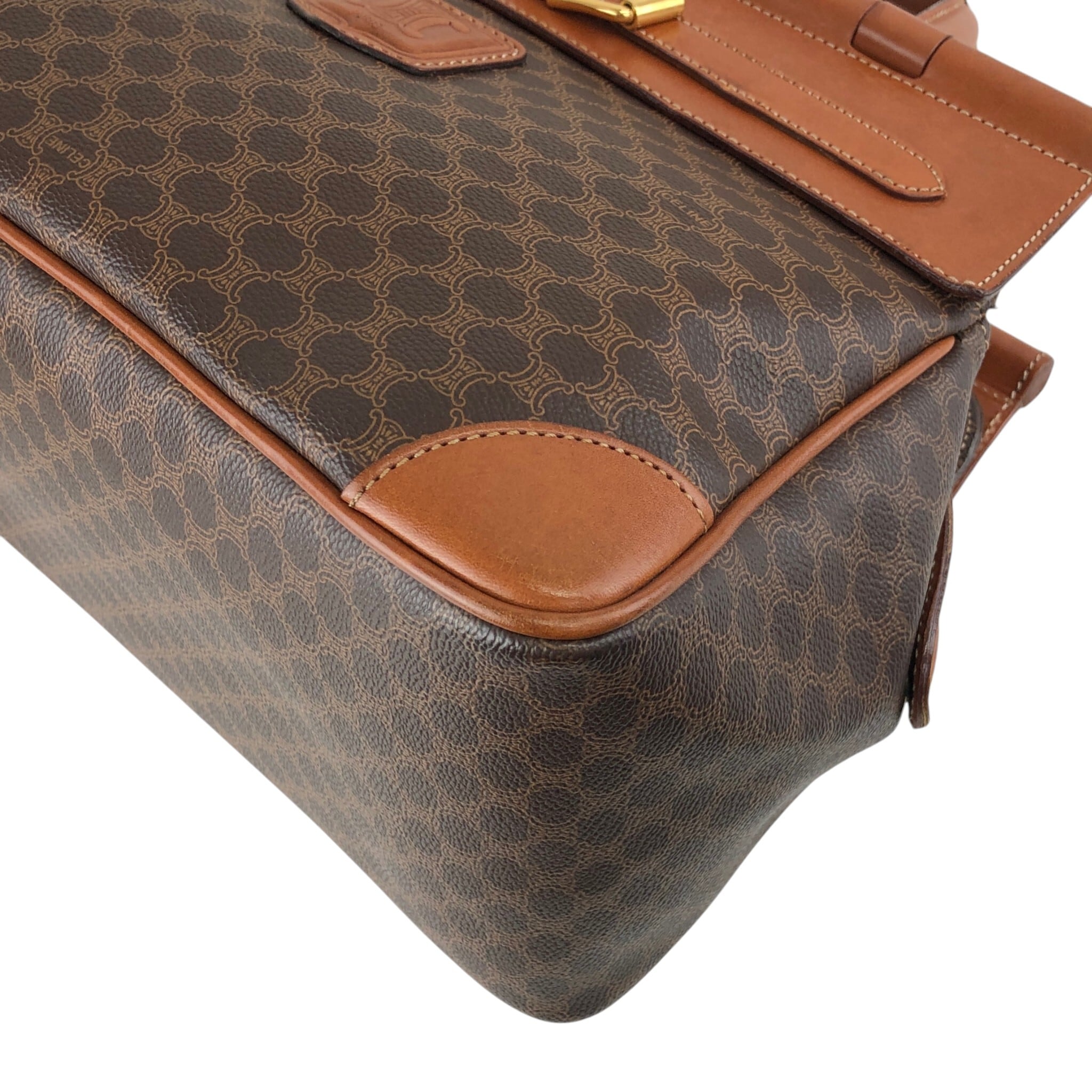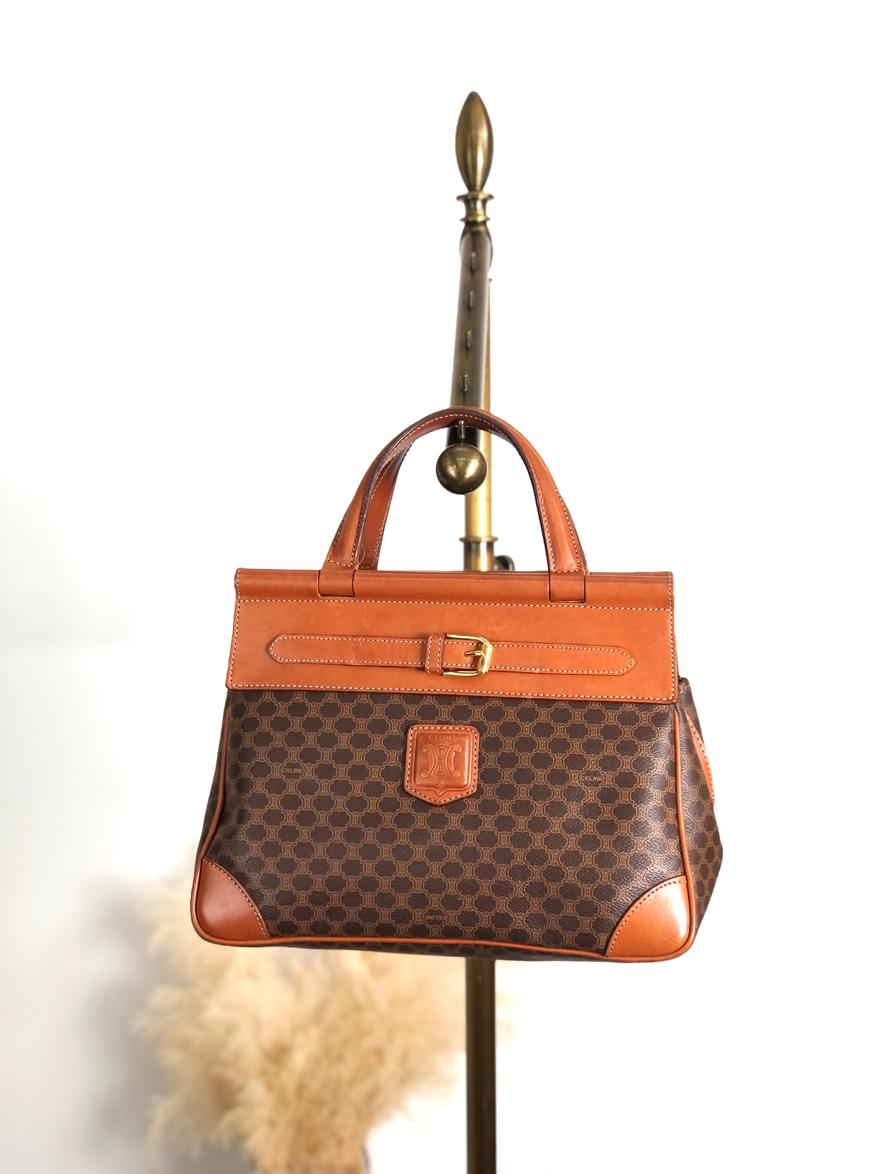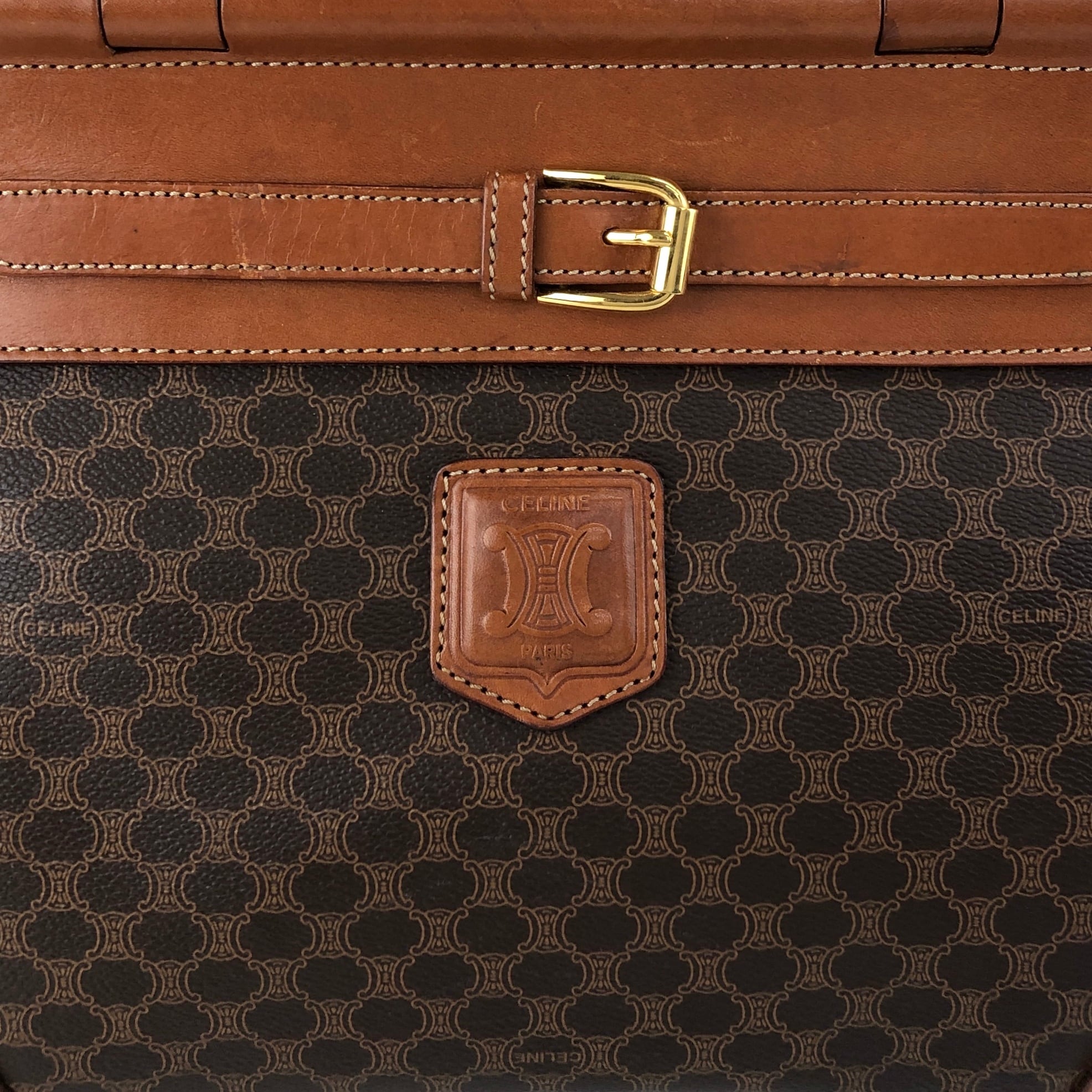 CELINE セリーヌ マカダム ハンドバッグ ブラウン ブラゾン型押し PVC フロントバックル vintage ヴィンテージ オールド kaare7