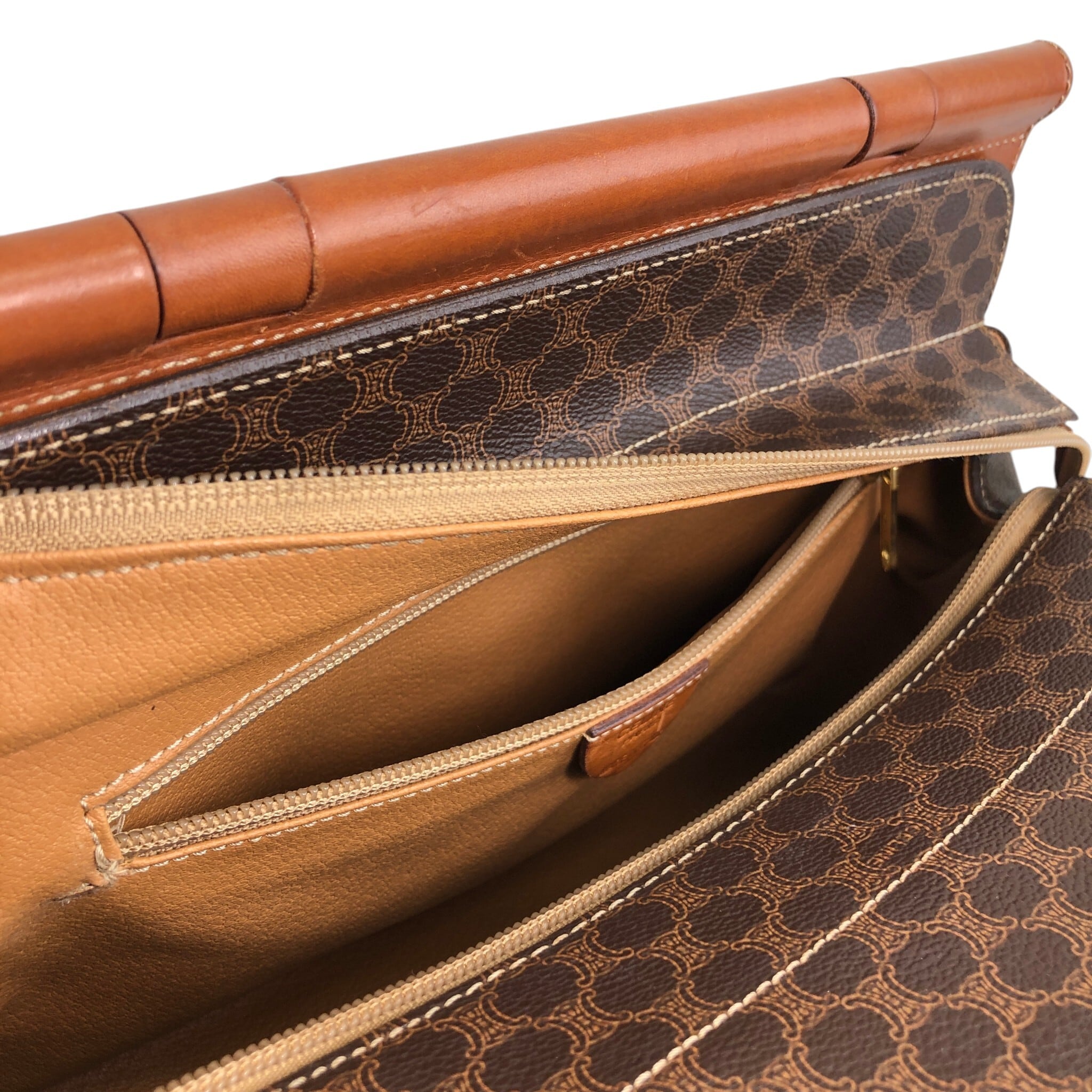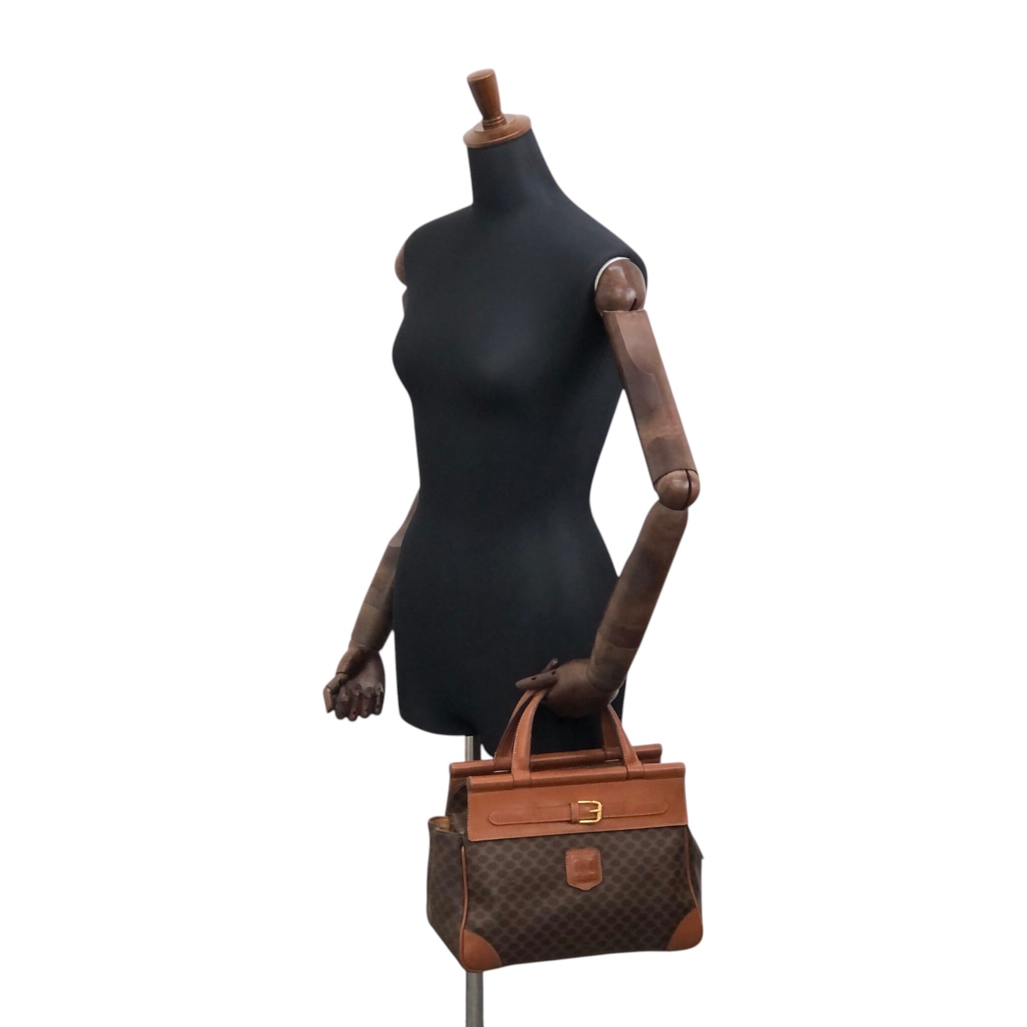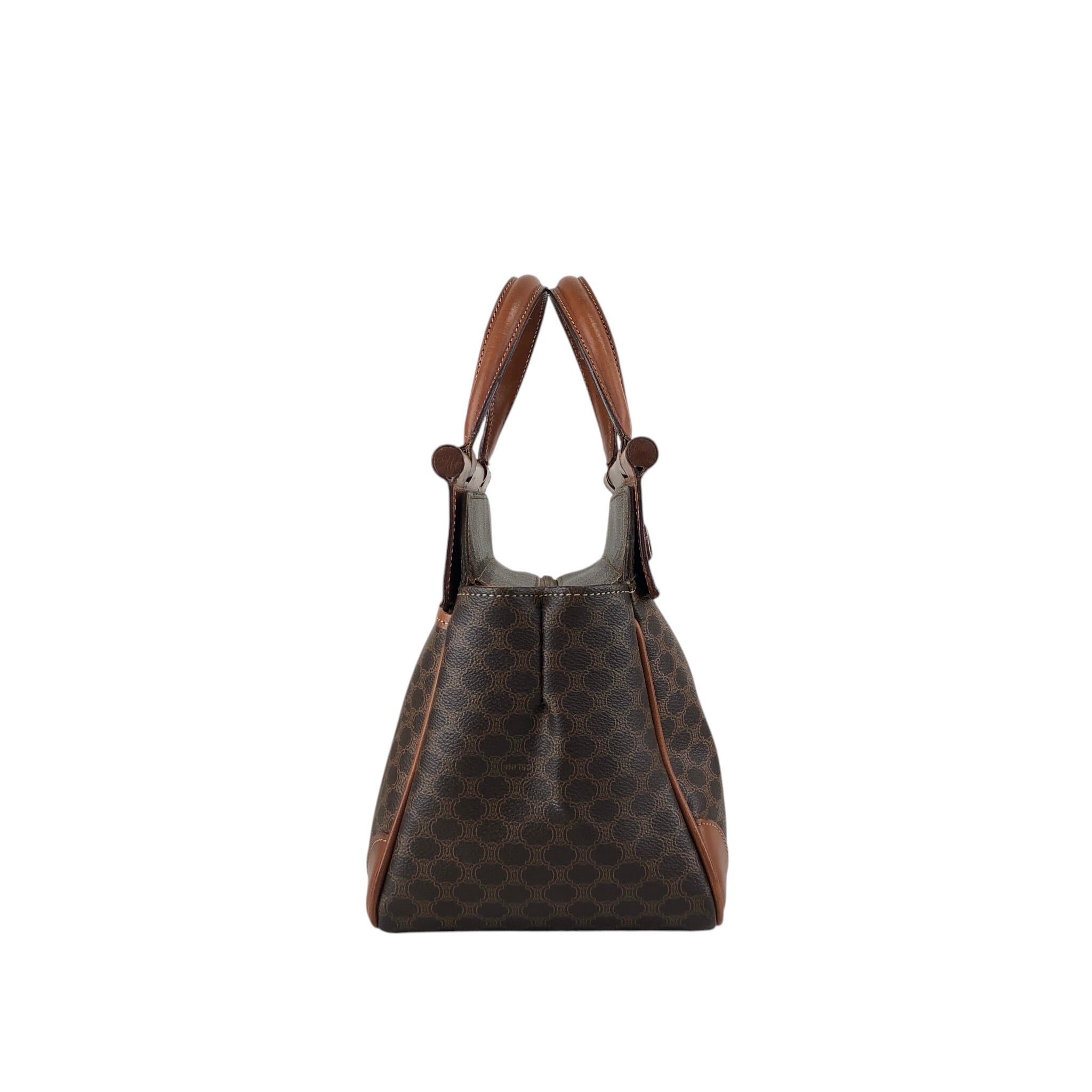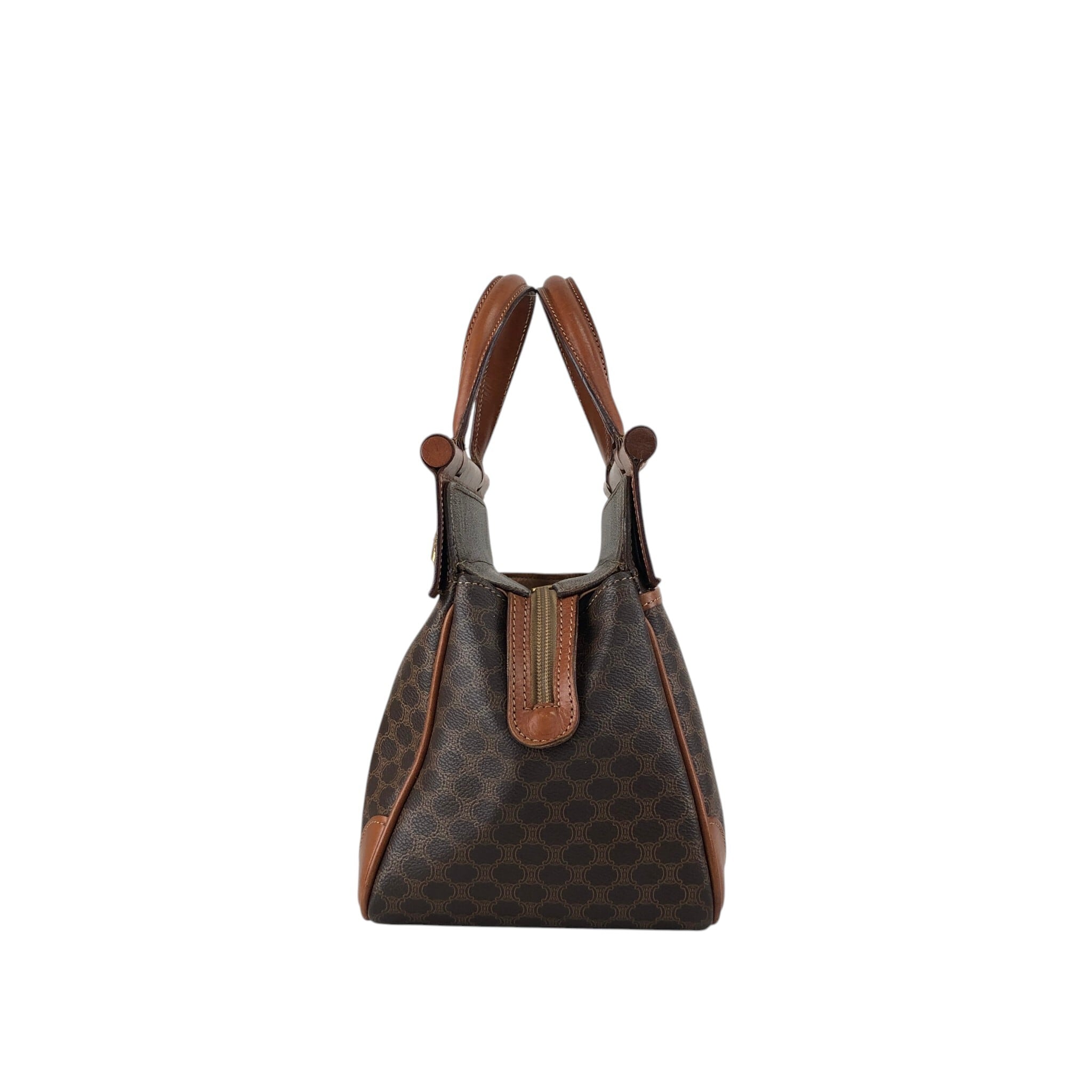 CELINE セリーヌ マカダム ハンドバッグ ブラウン ブラゾン型押し PVC フロントバックル vintage ヴィンテージ オールド kaare7