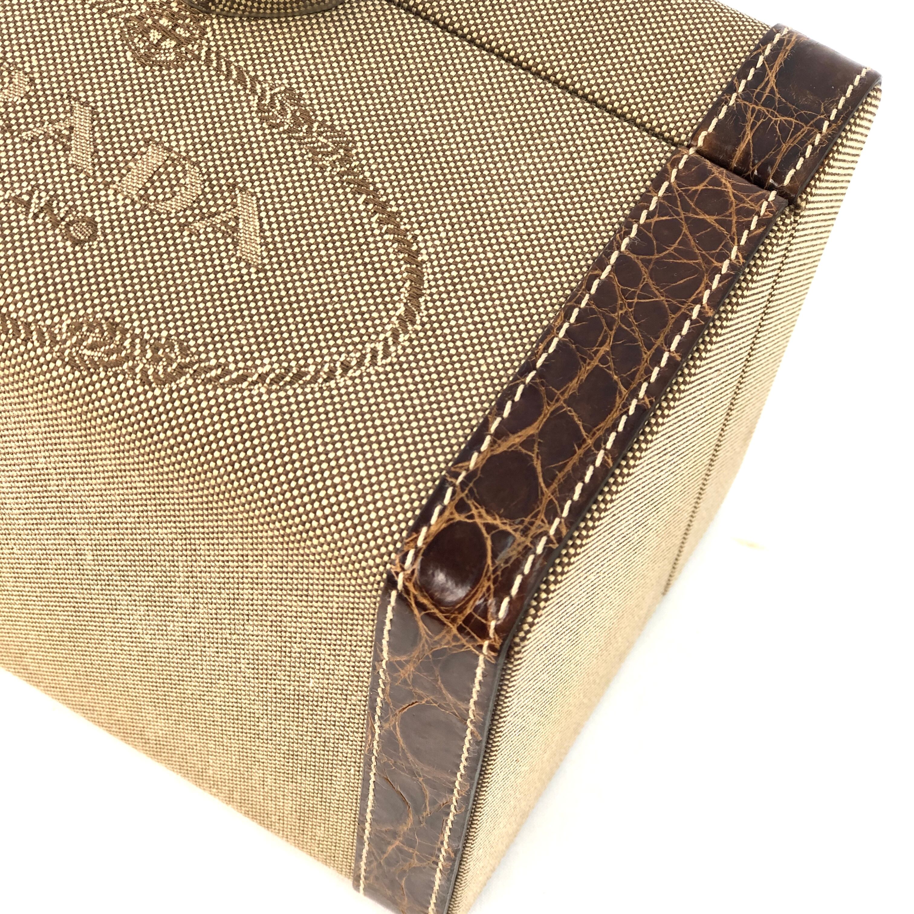 PRADA プラダ バニティバッグ ミニバッグ ジャガード クロコ型押し ハンドバッグ ベージュ×ブラウン vintage ヴィンテージ g8pf83
