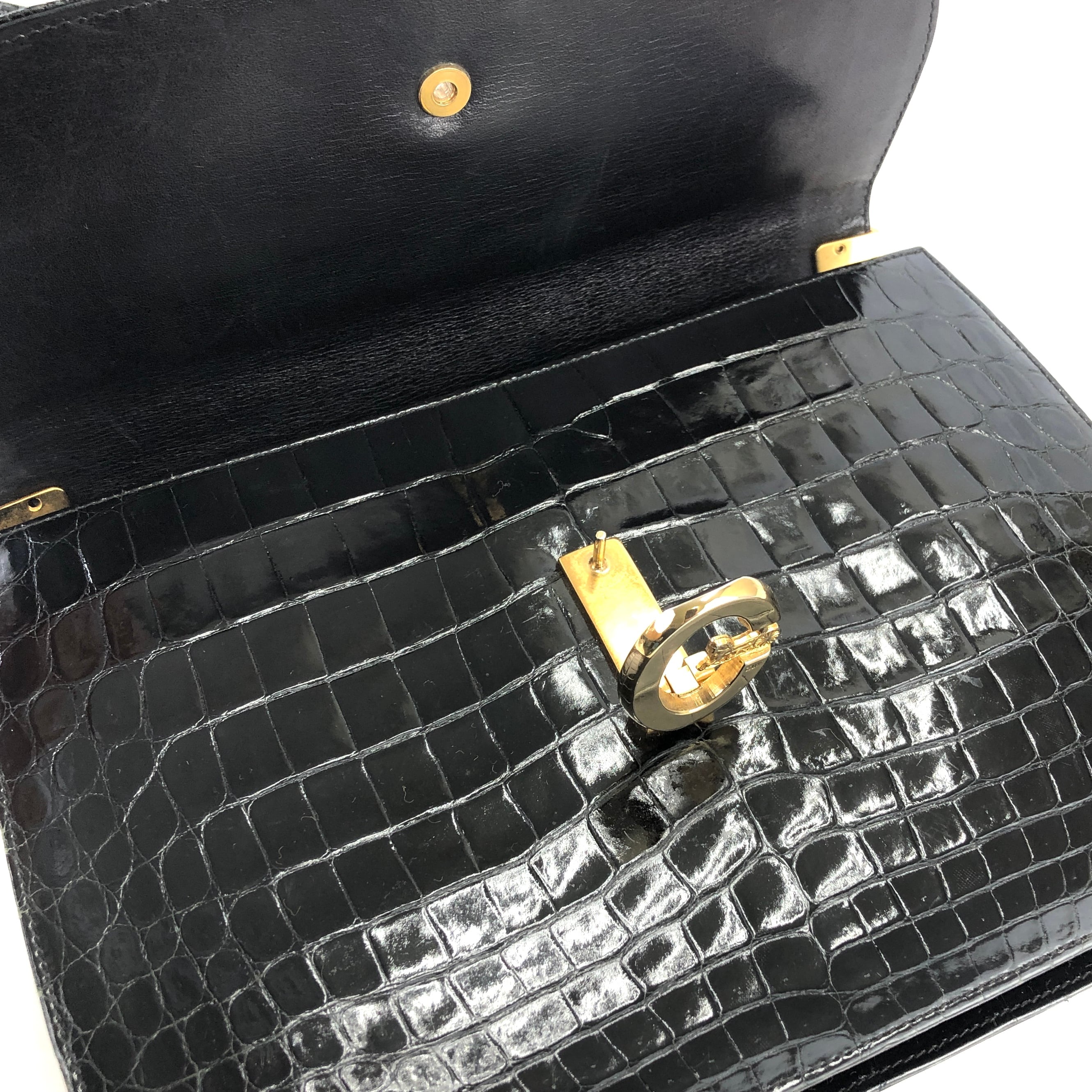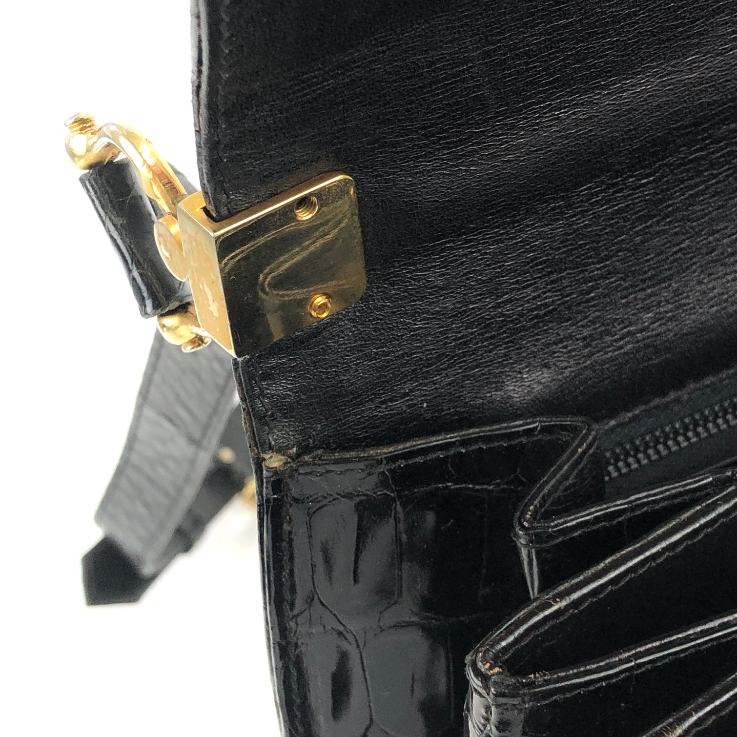 CELINE セリーヌ 馬車 ホースキャリッジ オーバル クロコ型押しレザー ショルダーバッグ ブラック vintage ヴィンテージ オールドセリーヌ 6tmne2
