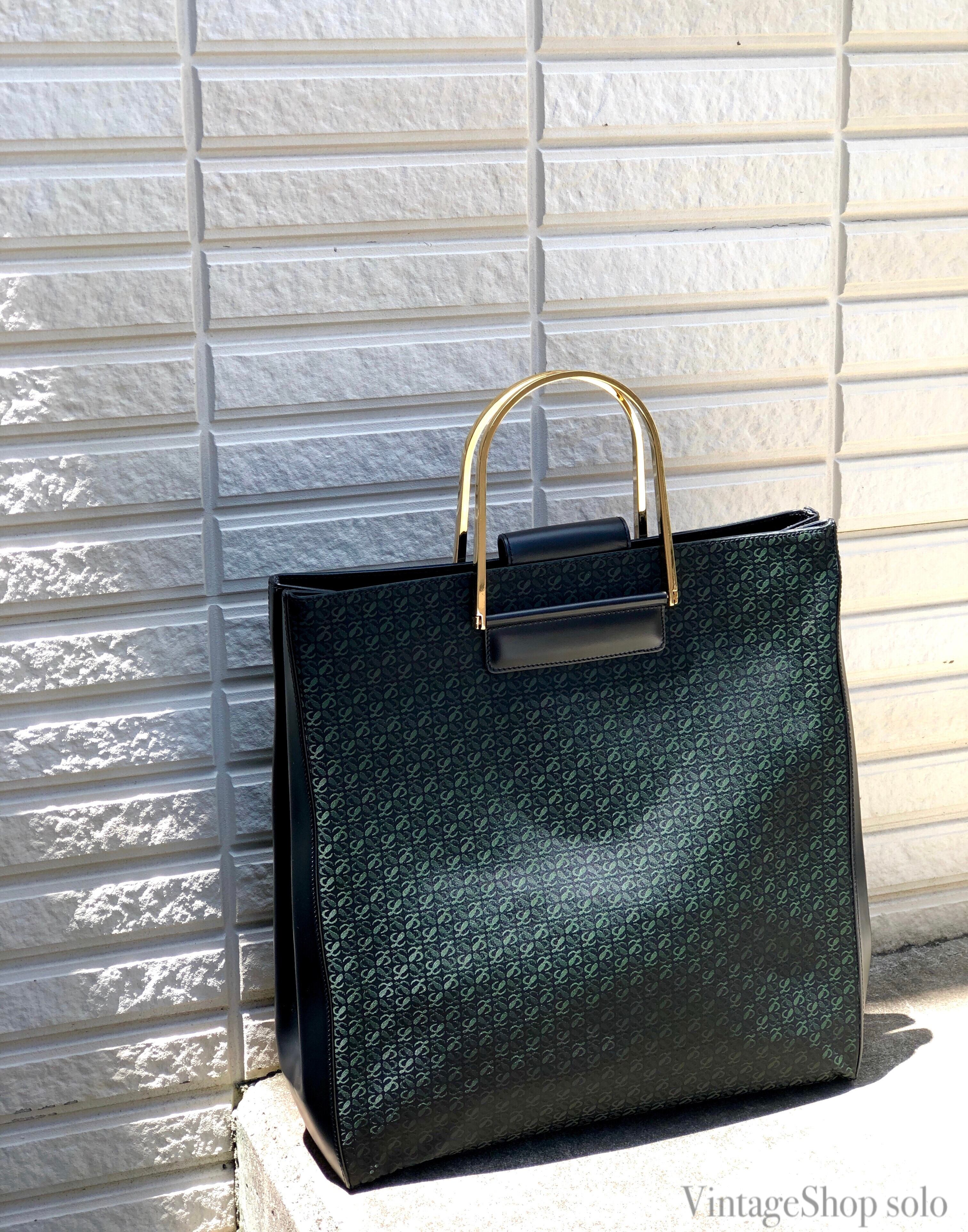 【reserved 売約品】LOEWE ロエベ アナグラム メタルハンドル 総柄 レザー トートバッグ グリーン ブラック vintage ヴィンテージ オールド 2ihtgz