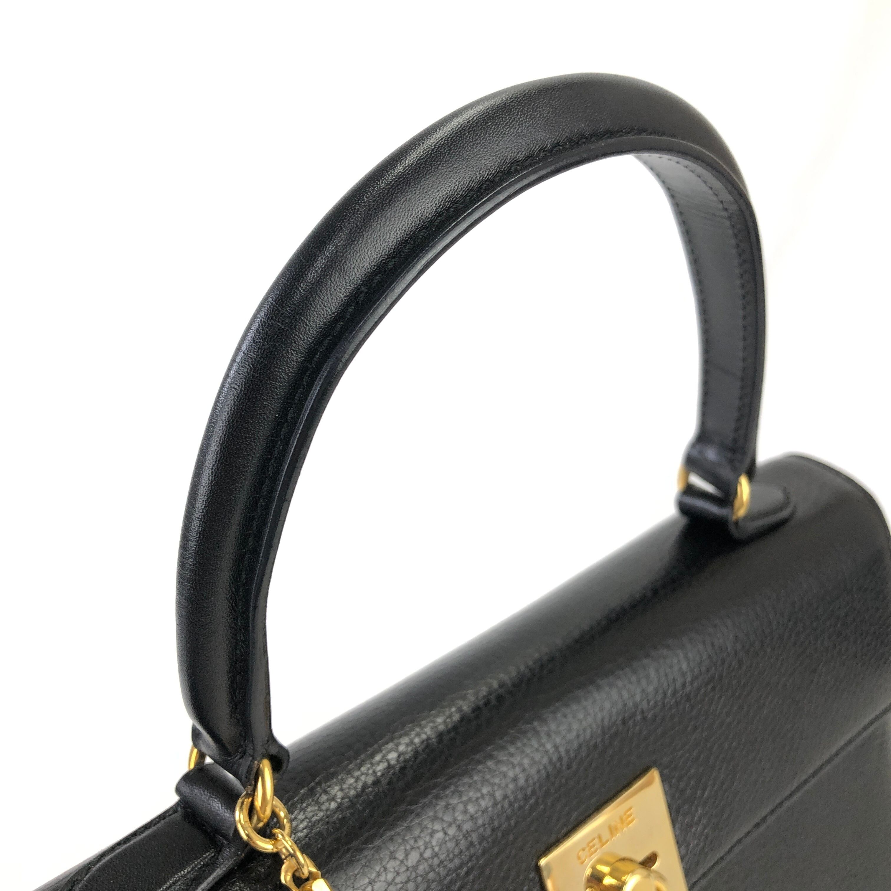 CELINE セリーヌ マンテル エンボスレザー トップハンドル ケリー ハンドバッグ ブラック オールドセリーヌ ヴィンテージ vintage vtz7d4