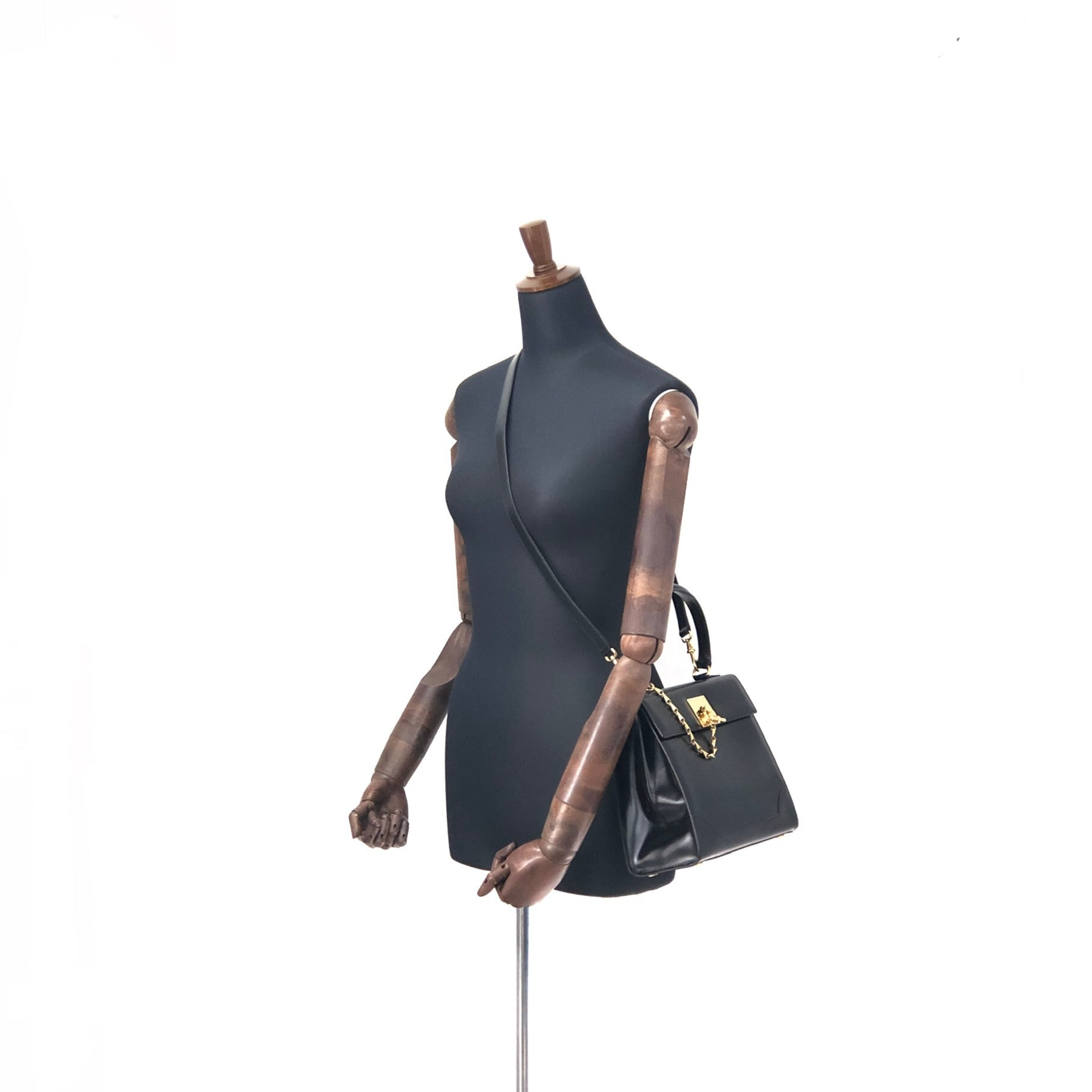 CELINE セリーヌ マンテル ガンチーニ チェーン レザー コーナー 2WAY ハンドバッグ ブラック ヴィンテージ オールド v4rchb