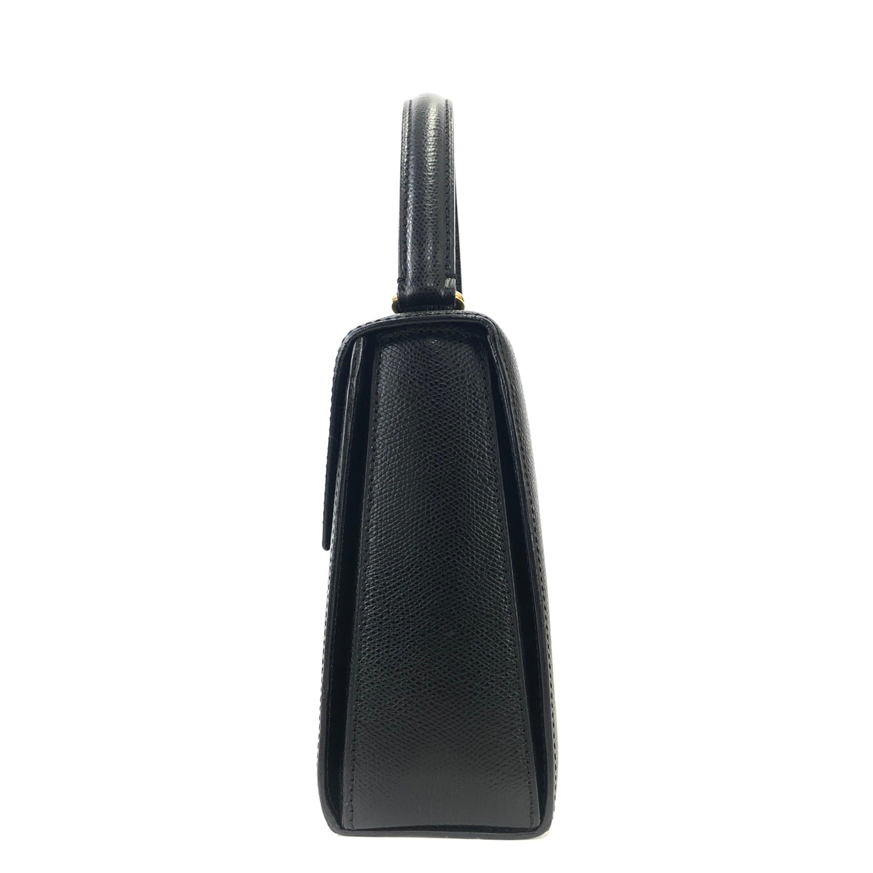 CELINE セリーヌ ロゴ ターンロック エンボスレザー トップハンドル 2WAY ハンドバッグ ブラック vintage ヴィンテージ オールドセリーヌ 8edjtg