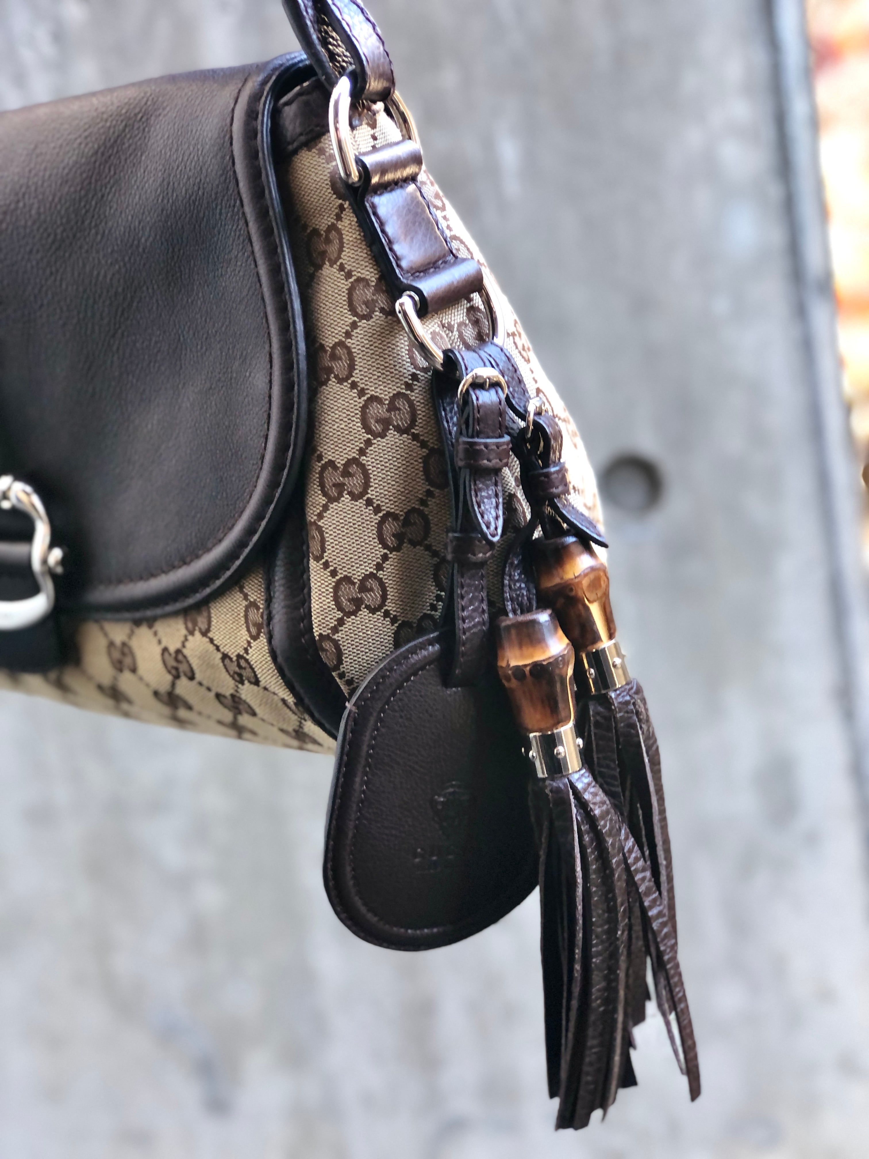 GUCCI グッチ GGキャンバス バンブータッセル フリンジ セミショルダーバッグ ベージュ×ブラウン vintage ヴィンテージ オールドグッチ 67z6bi