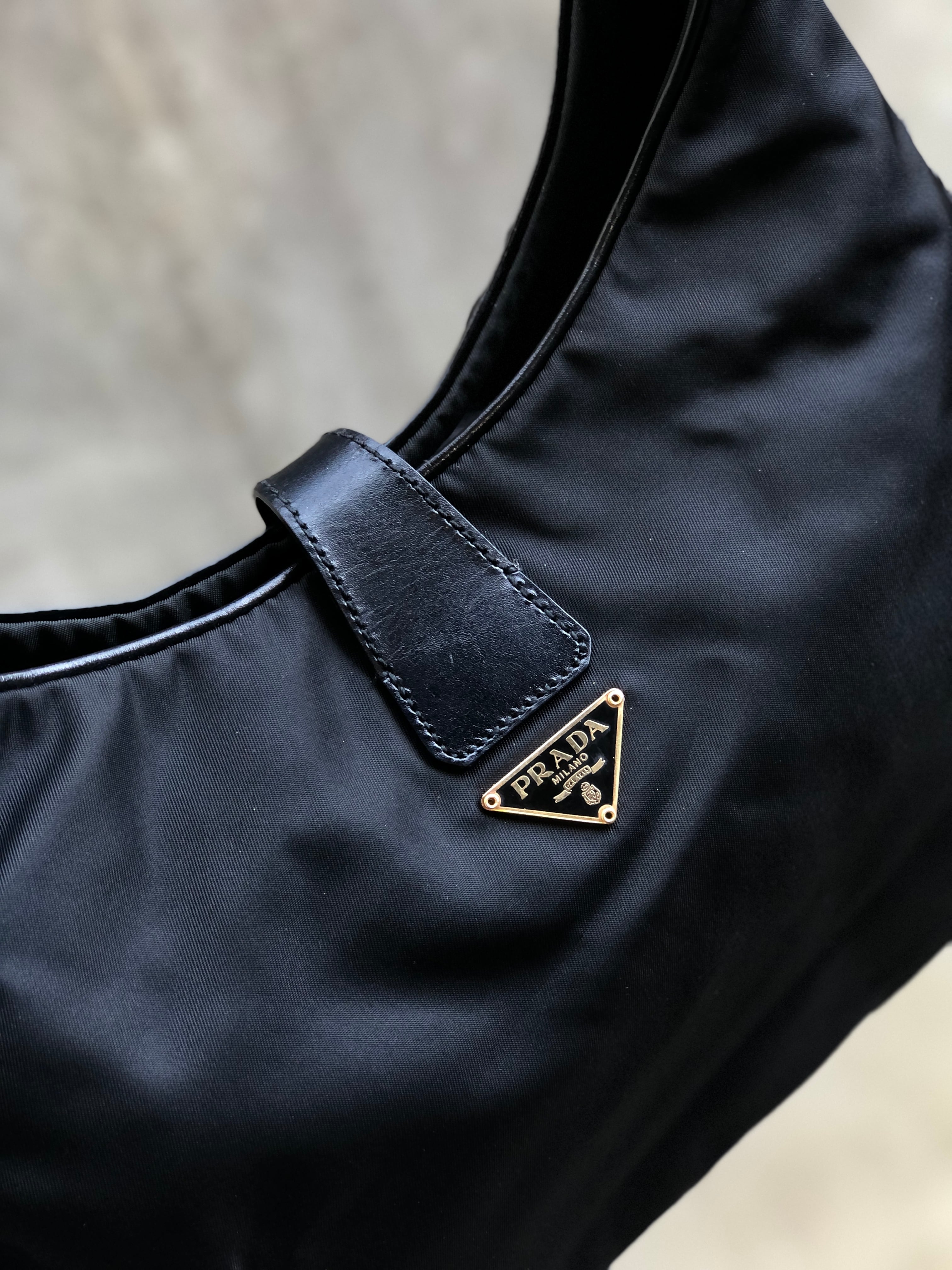 PRADA プラダ トライアングルロゴ ナイロン×レザー ターンロック ホーボー ショルダーバッグ ブラック vintage ヴィンテージ オールド yguwgm