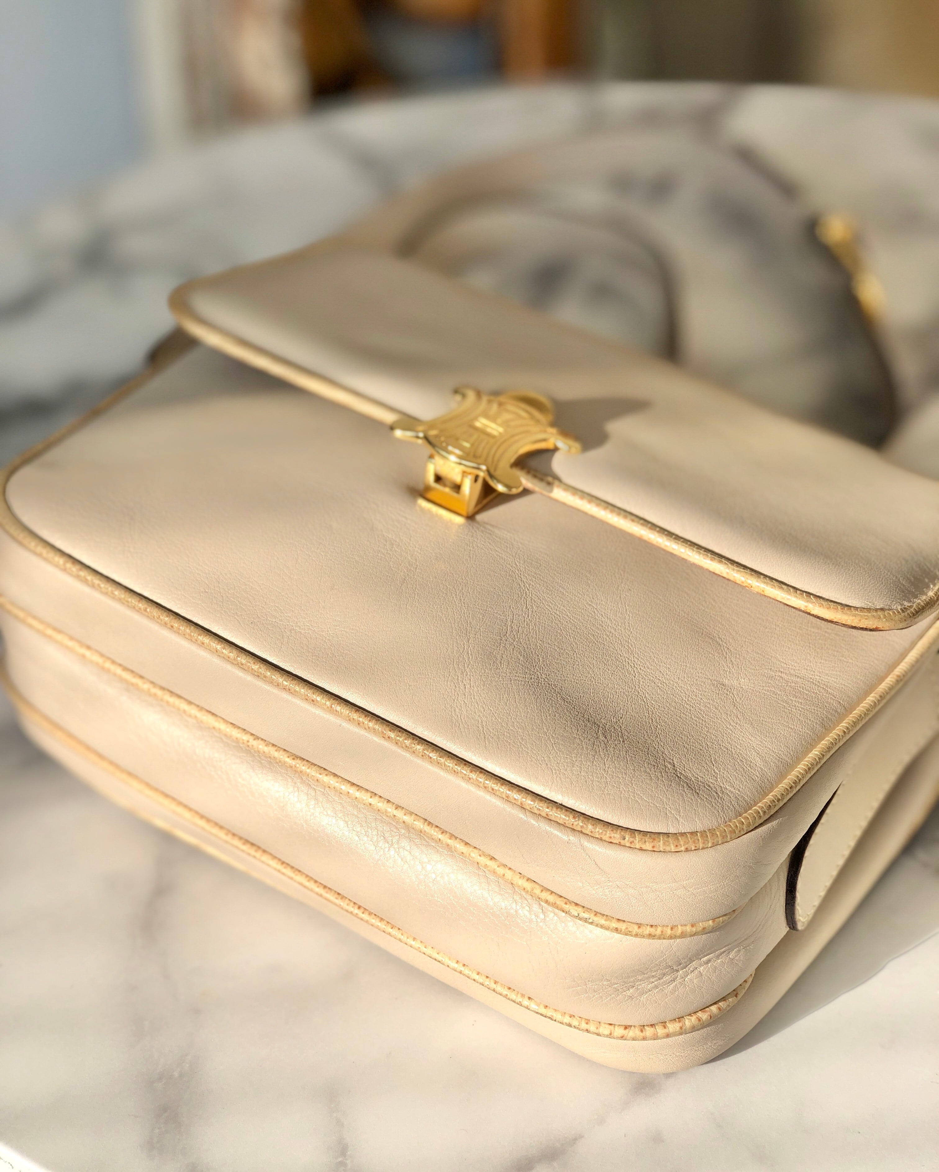CELINE セリーヌ トリオンフ レザー リザード型押し パイピング クロスボディ ショルダーバッグ アイボリー vintage ヴィンテージ オールドセリーヌ cf6rxb