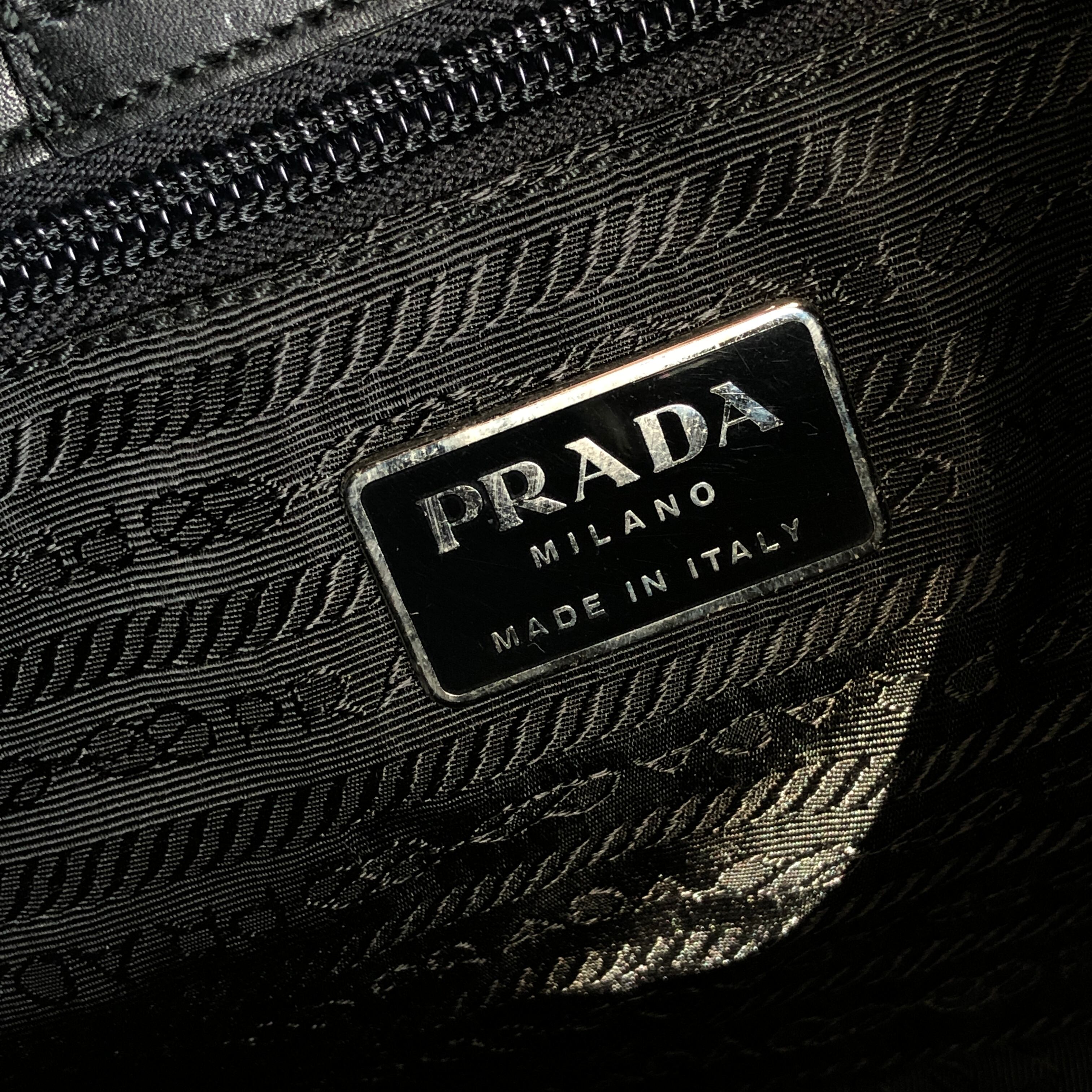 PRADA プラダ ロゴ型押し レザー ホーボーバッグ アシンメトリー ショルダーバッグ グレー vintage ヴィンテージ axd7ri