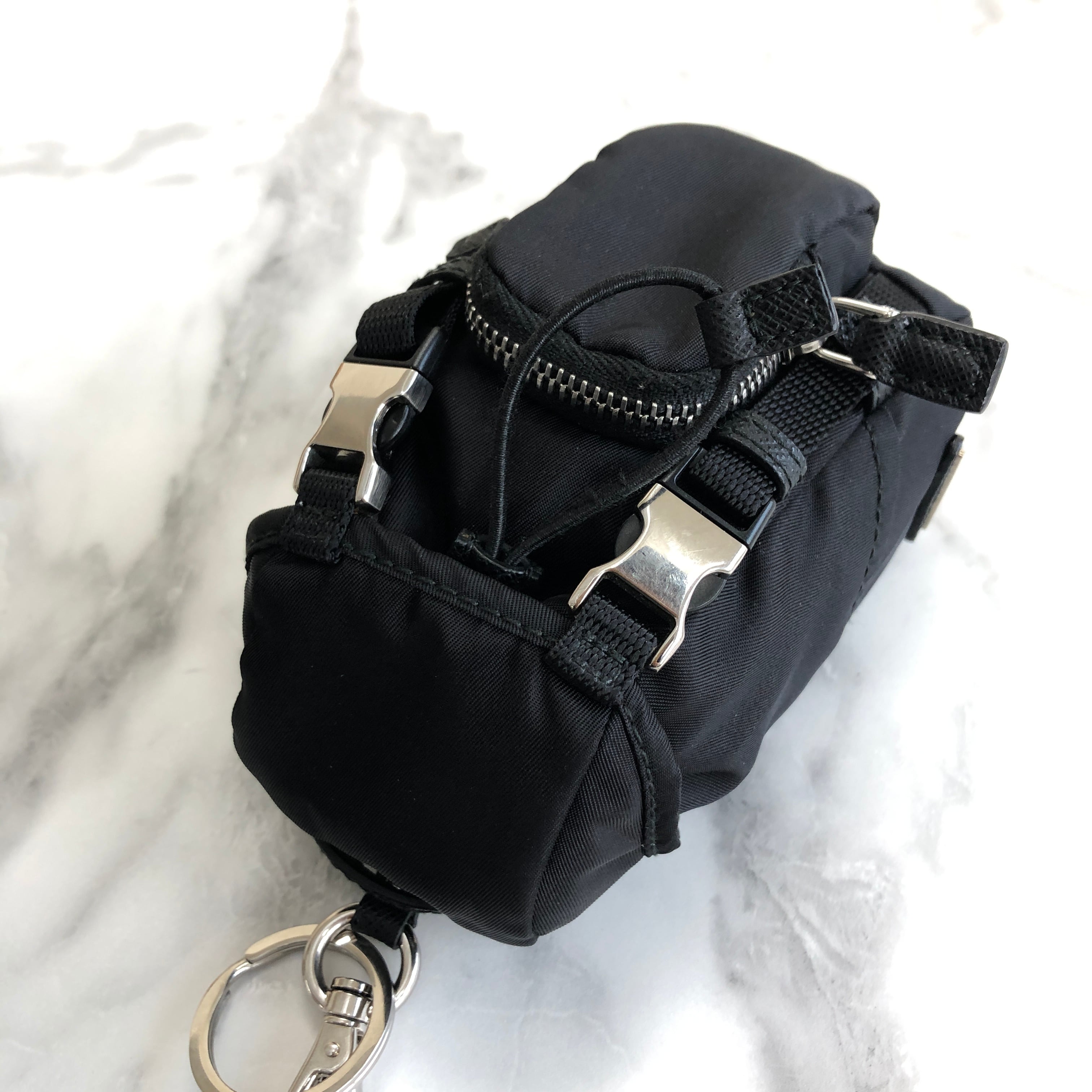 PRADA プラダ トライアングルロゴ 2TT061 ミニ キーホルダー ブラック vintage e5w63e