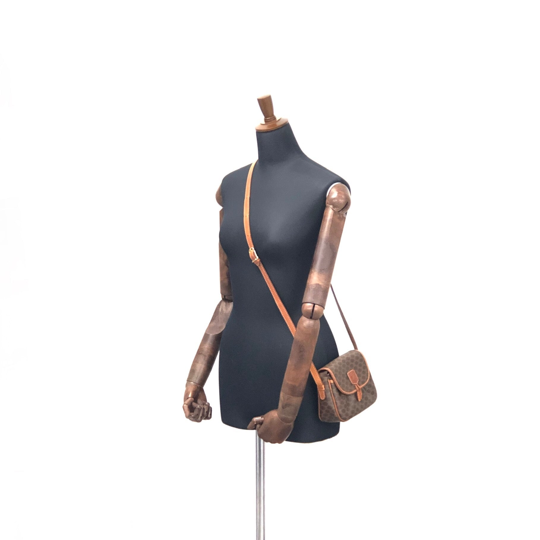 CELINE セリーヌ マカダム ブラゾン型押し タッセル ポシェット ミニバッグ ショルダーバッグ ブラウン vintage ヴィンテージ オールドセリーヌ my22ht