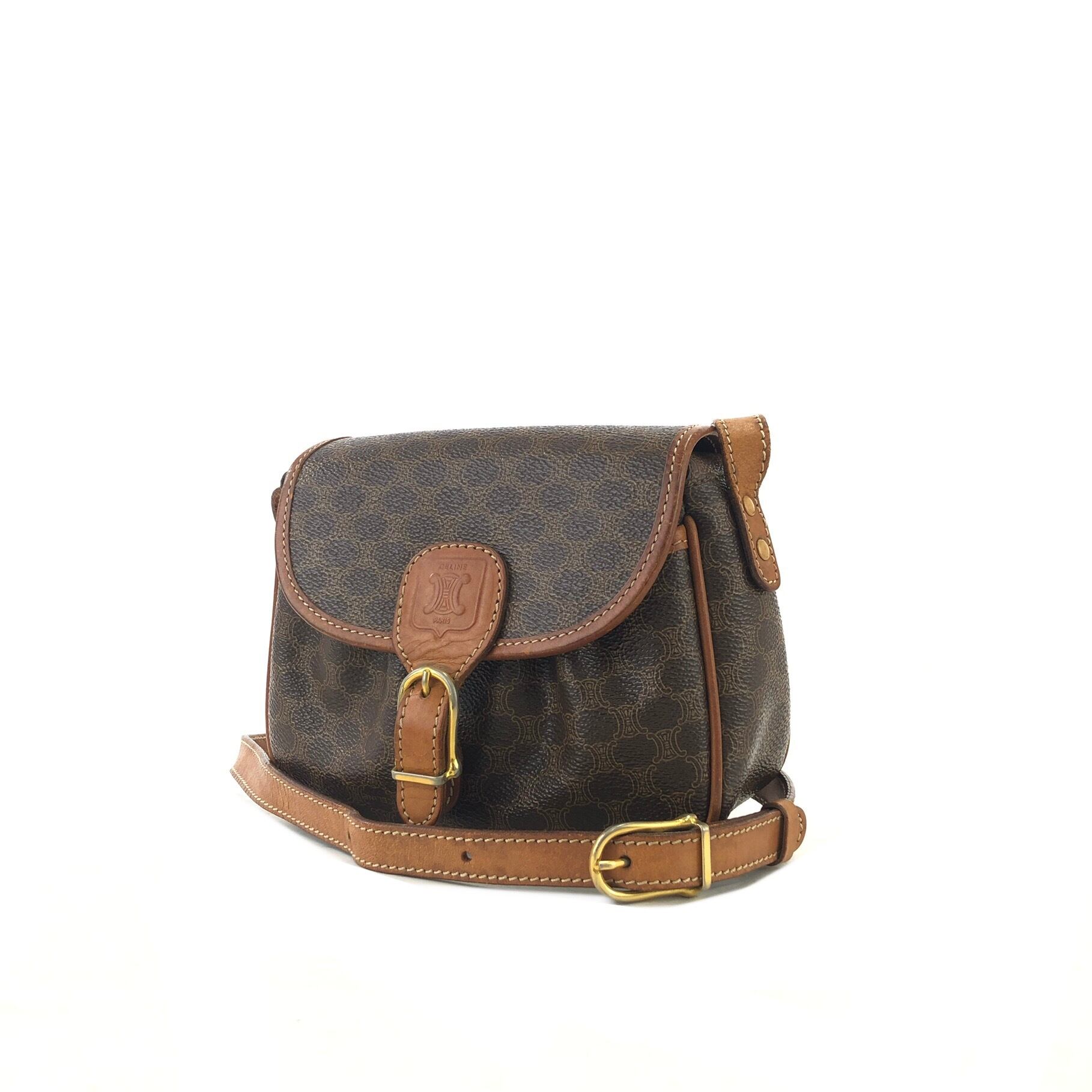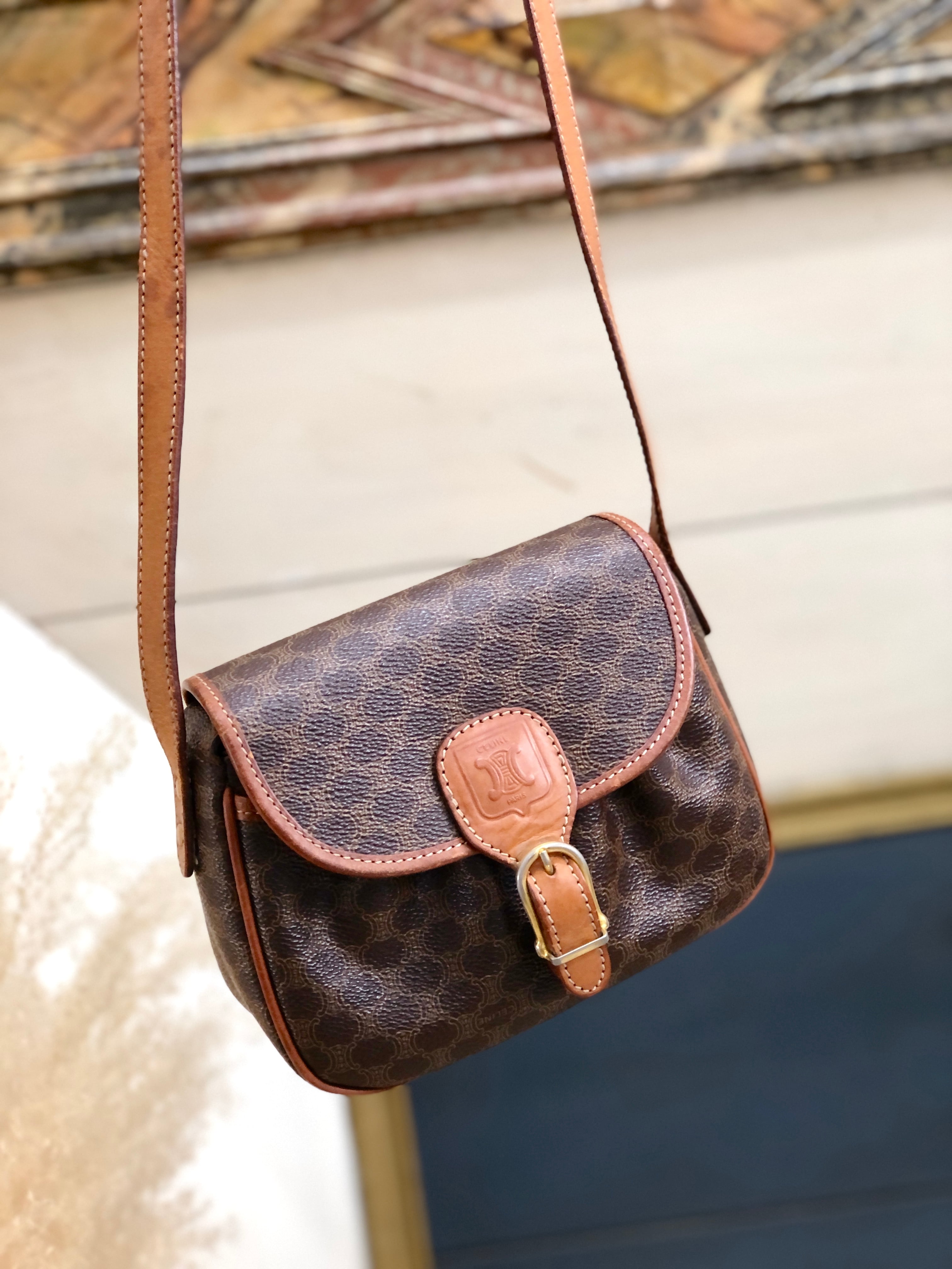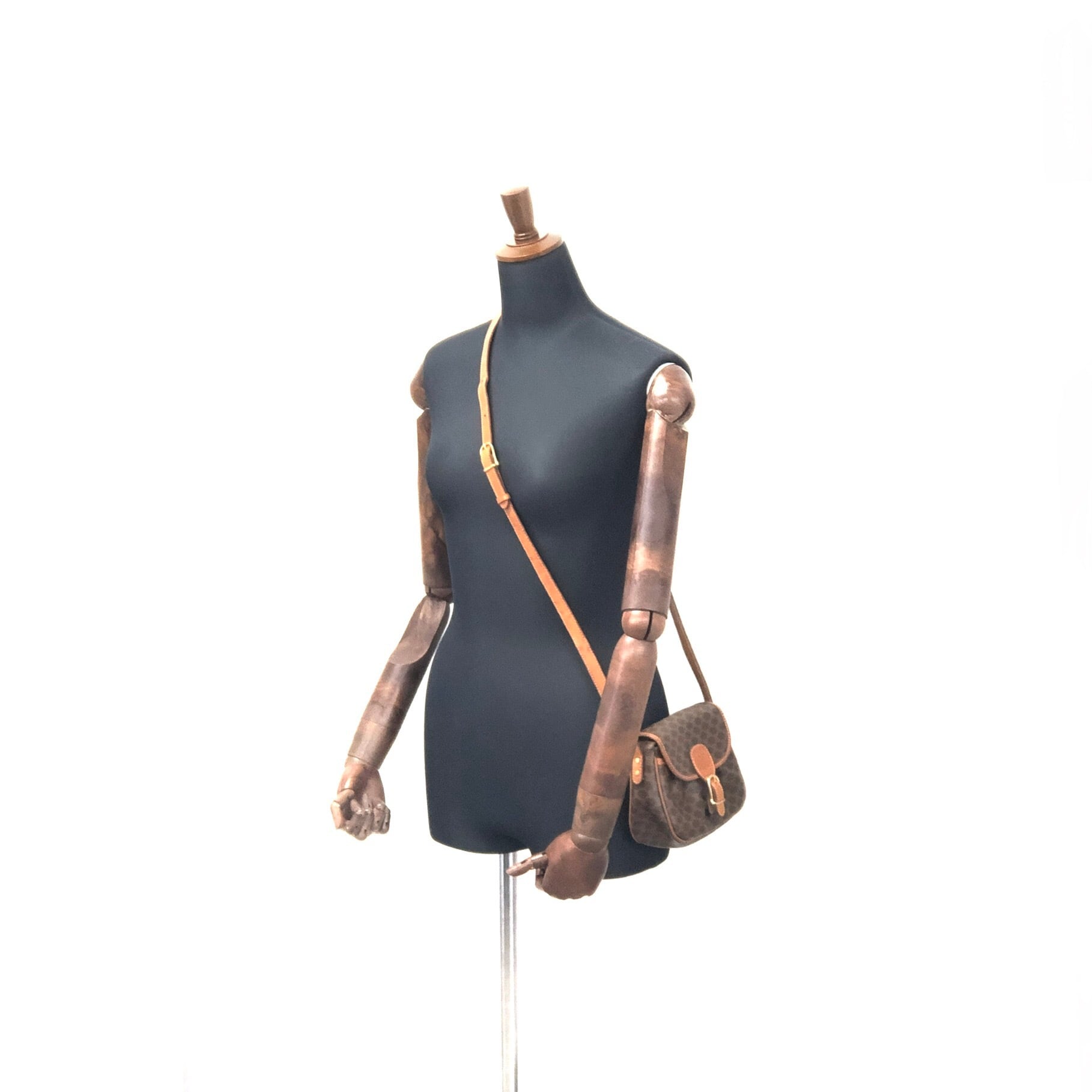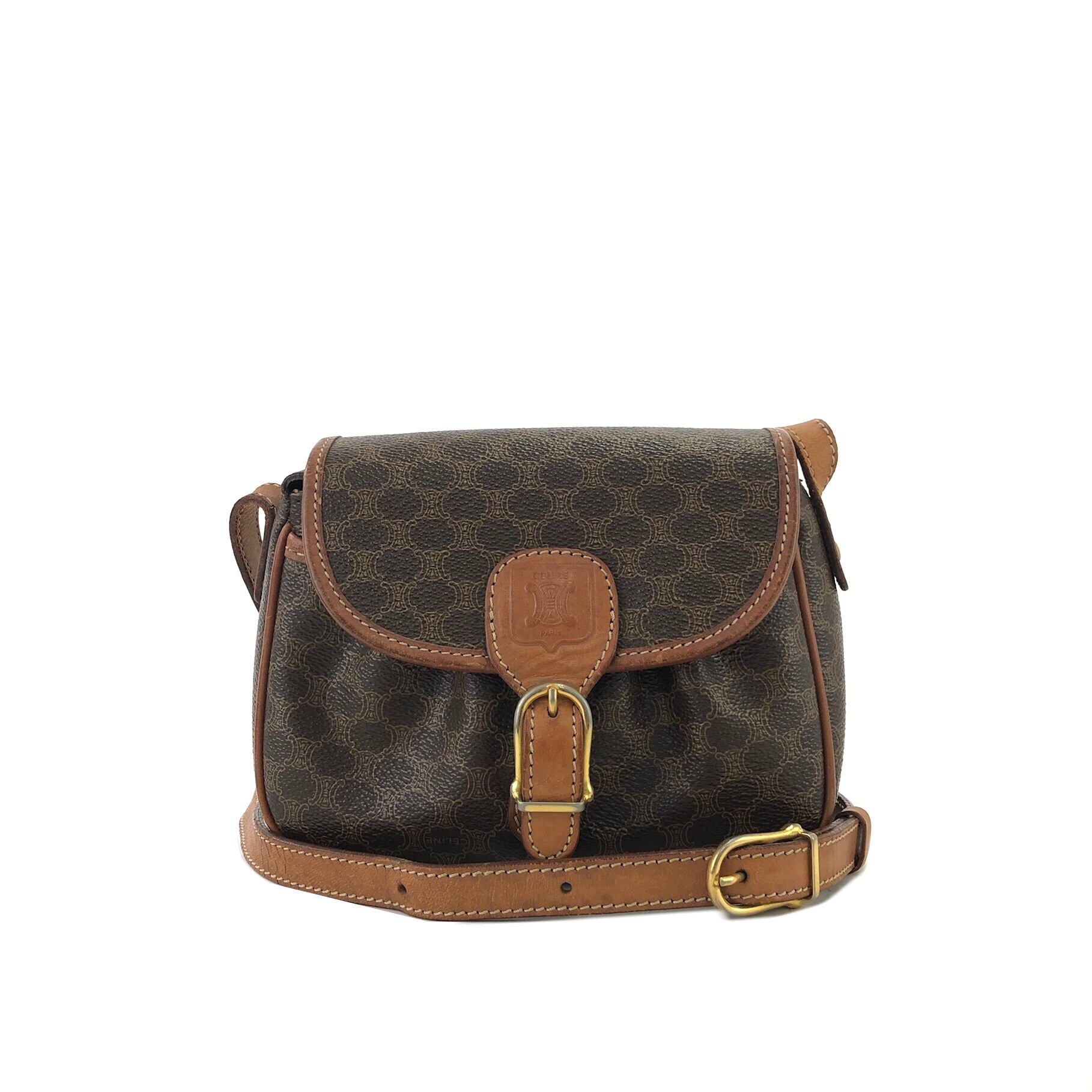 CELINE セリーヌ マカダム ブラゾン型押し フロントベルト PVC レザー ミニバッグ ショルダーバッグ ブラウン vintage ヴィンテージ オールド sykhsz