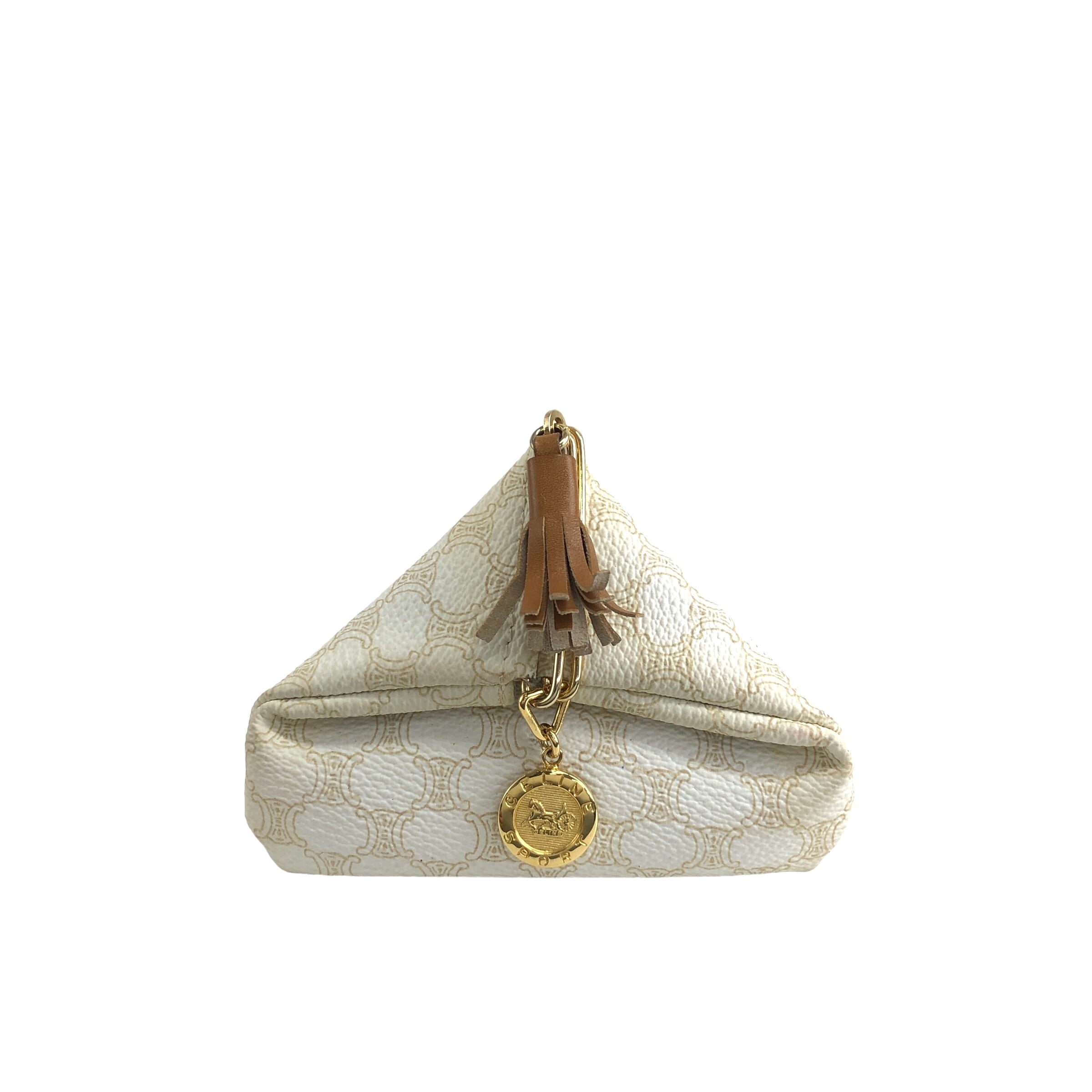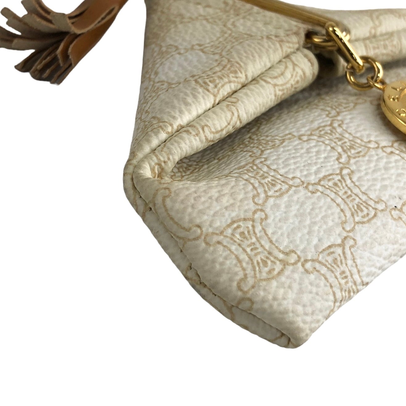 CELINE セリーヌ マカダム 馬車 ホースキャリッジ タッセル トライアングル コインケース ホワイト z72uzp
