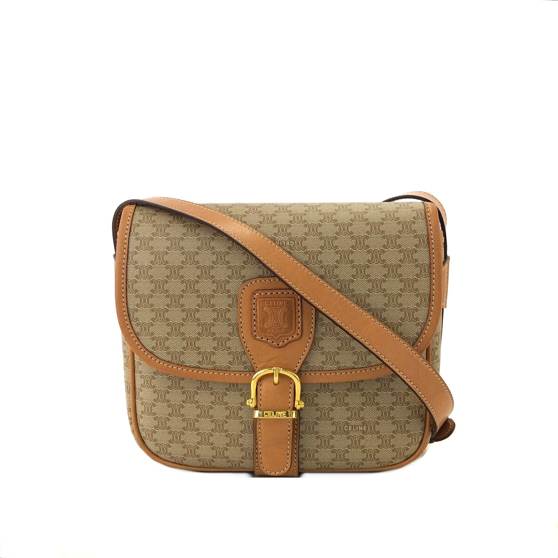 CELINE セリーヌ マカダム ブラゾン型押し フロントベルト レザー ショルダーバッグ ベージュ vintage ヴィンテージ オールド 2kzdab