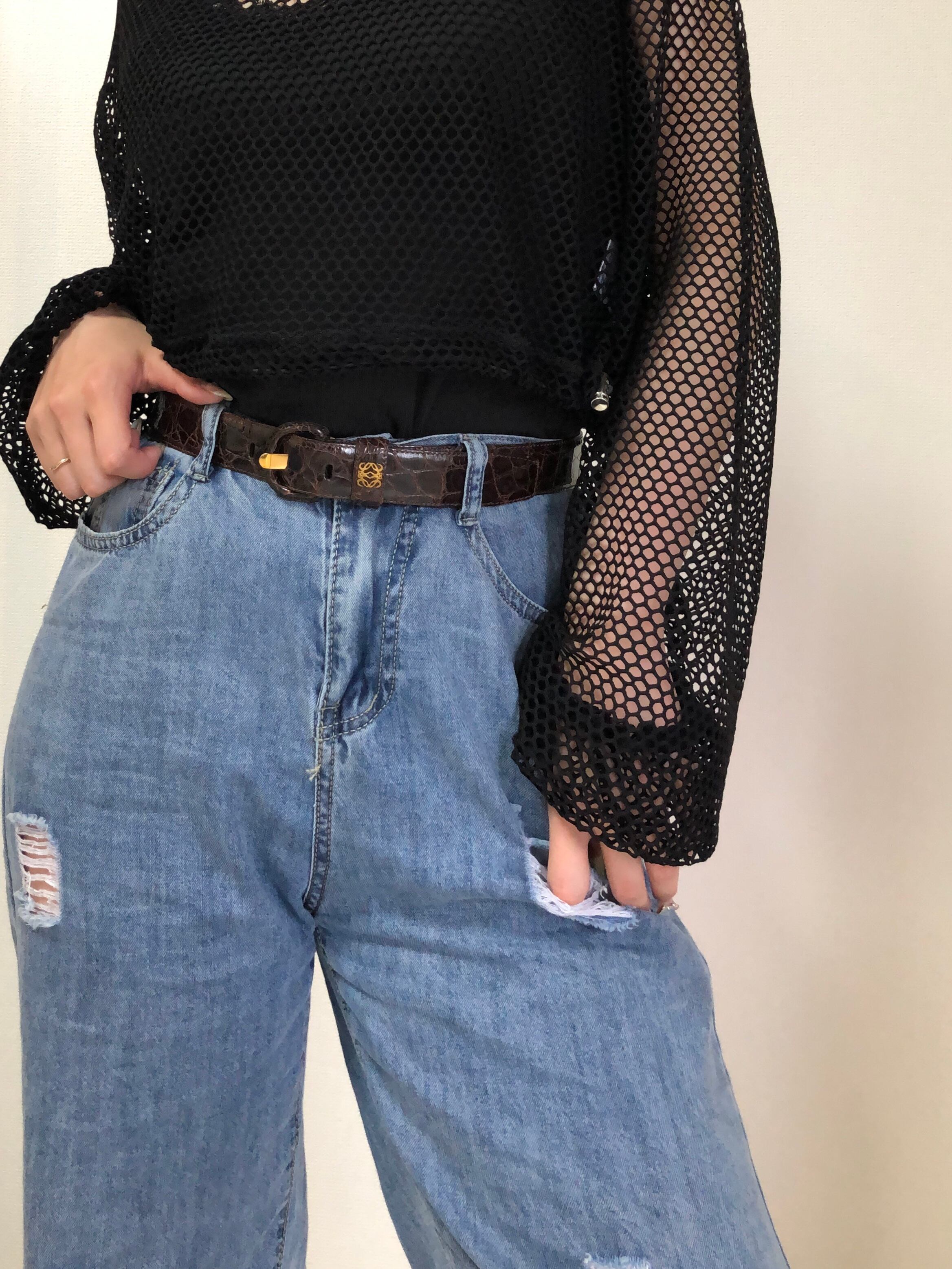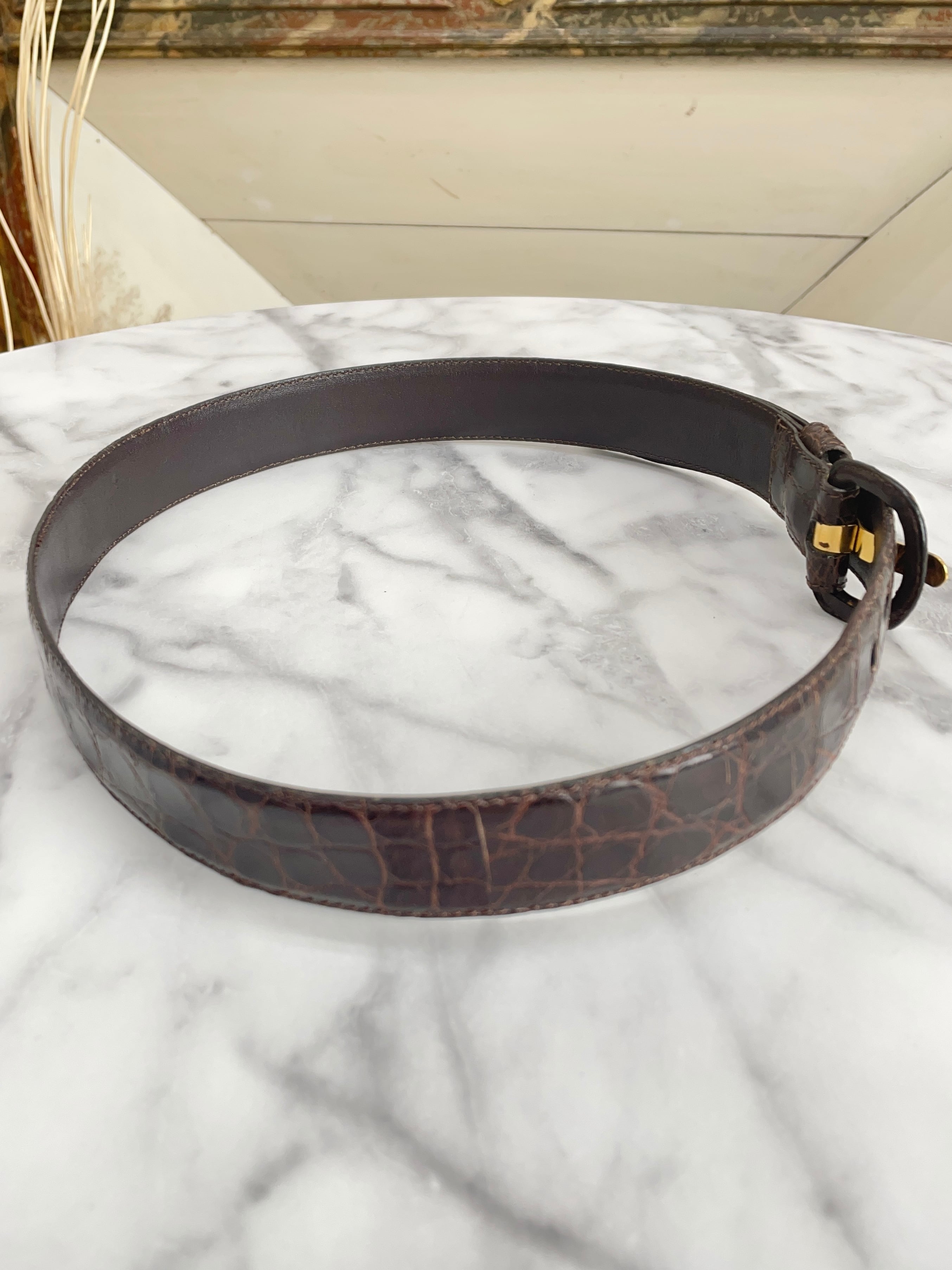 LOEWE ロエベ アナグラム クロコ型押しレザー ベルト ブラウン vintage ヴィンテージ オールド idabm7
