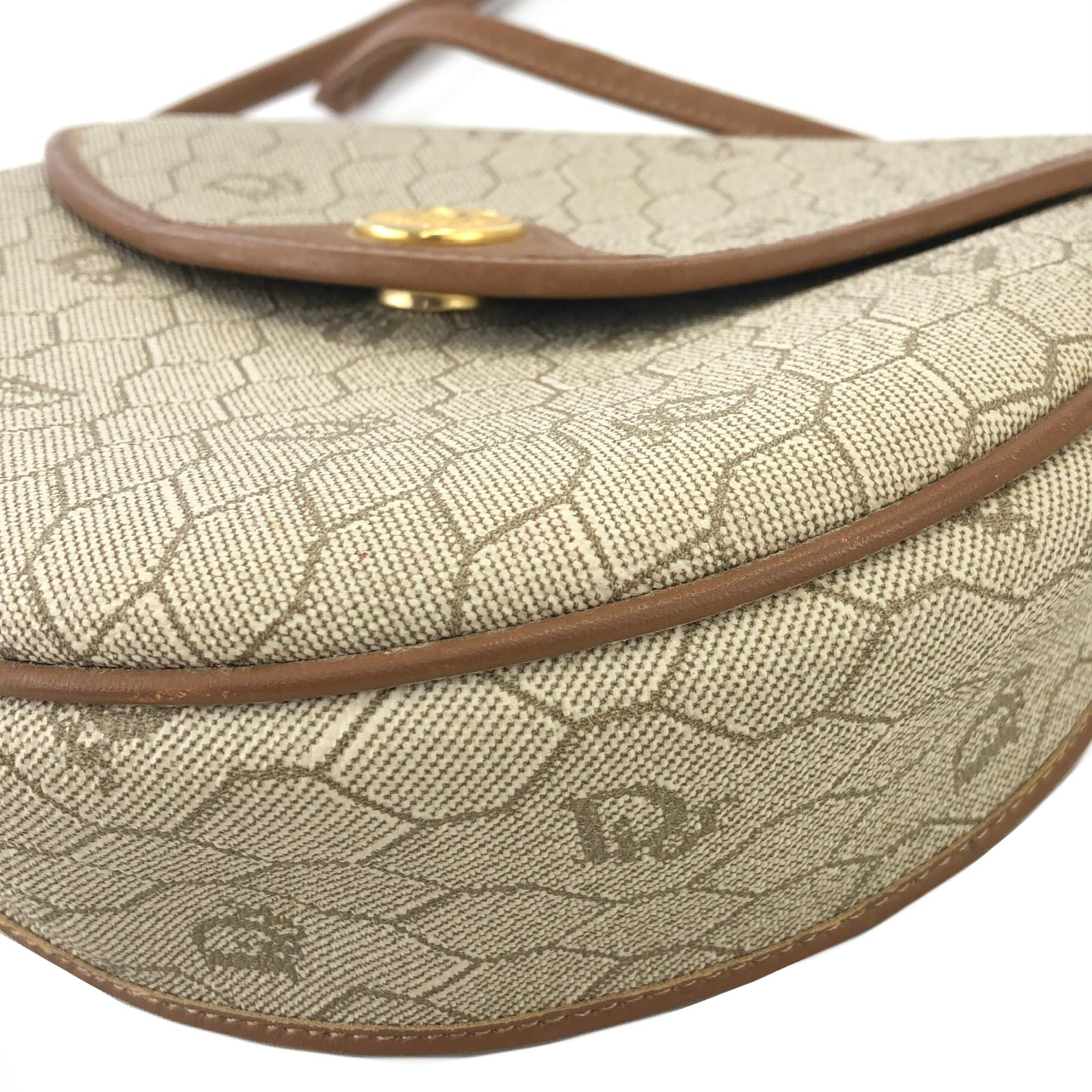 Christian Dior クリスチャン ディオール ハニカム柄 PVC×レザー ラウンド ショルダーバッグ ベージュ vintage ヴィンテージ オールド jtrcy2