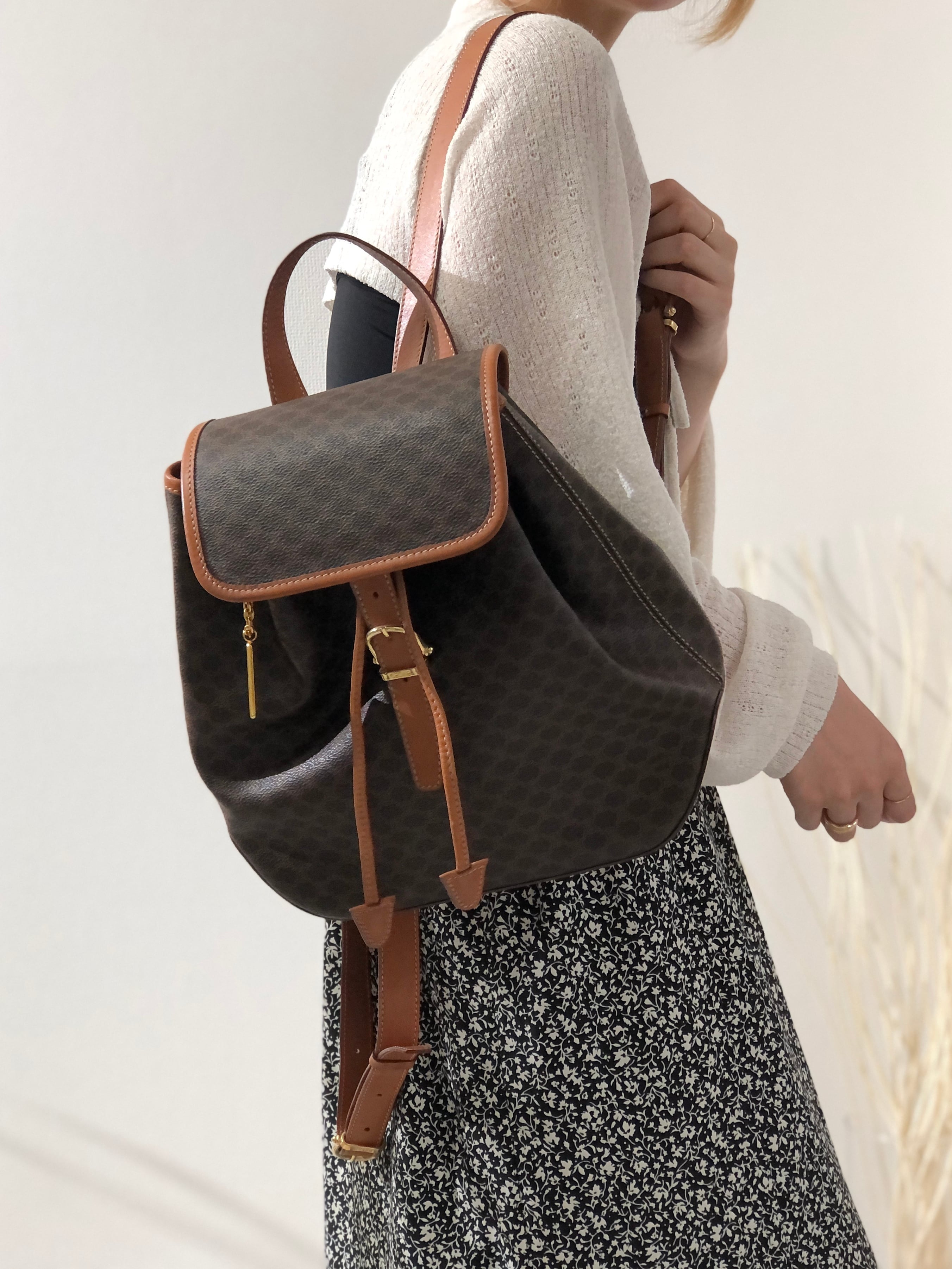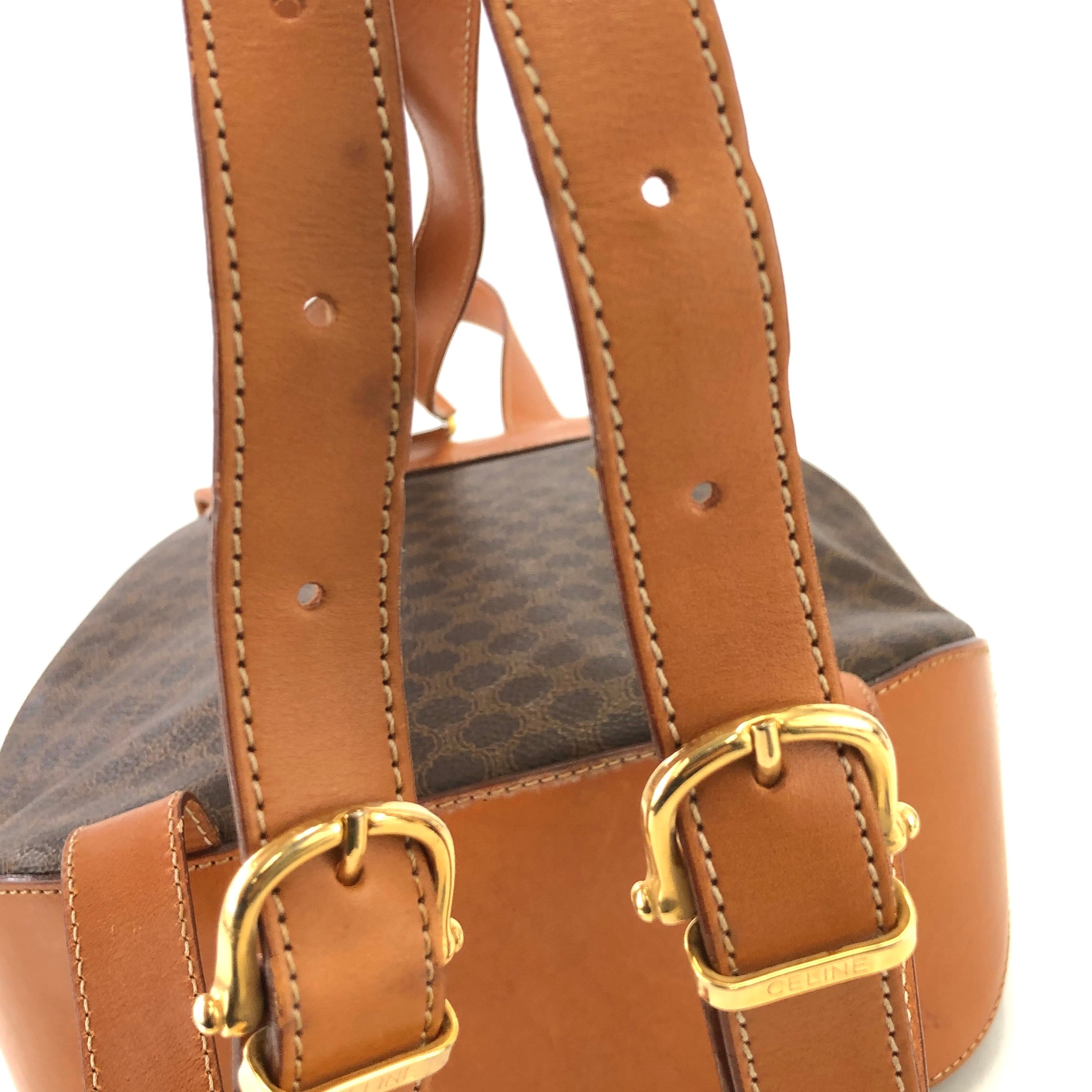 CELINE セリーヌ マカダム フロントベルト ロゴチャーム PVC レザー バッグパック リュック ブラウン vintage ヴィンテージ オールド nmhrrj