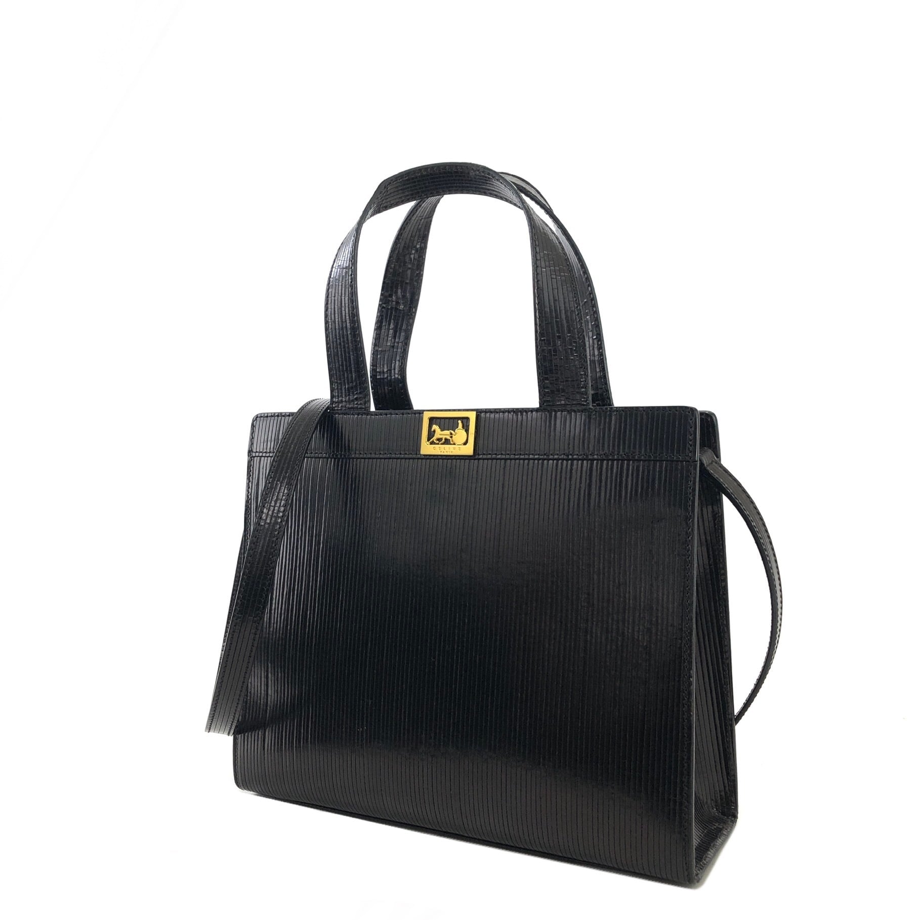 CELINE セリーヌ ホースキャリッジ 馬車 金具 型押しレザー ハンドバッグ 2way ショルダーバッグ ブラック vintage ヴィンテージ オールド 2urg2x