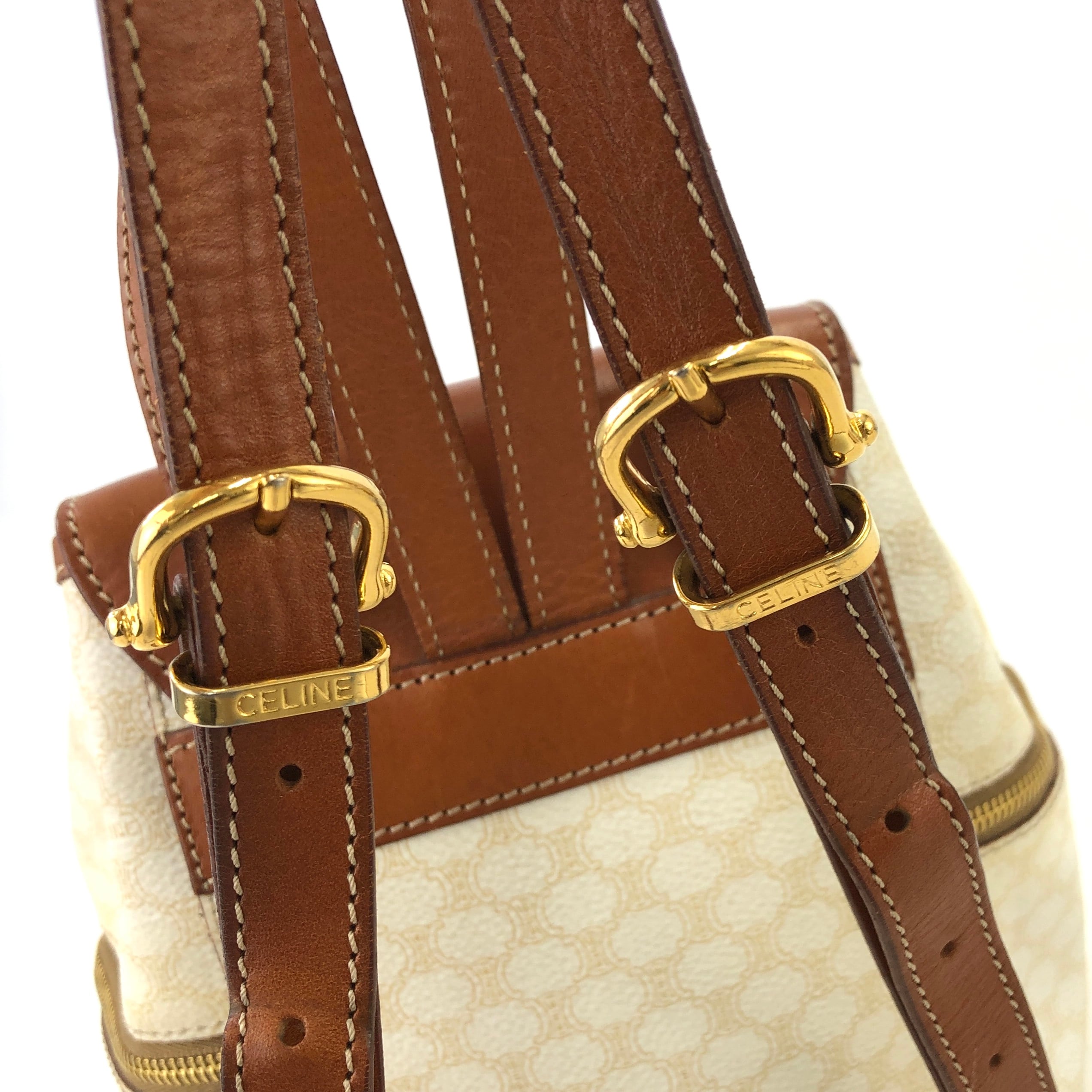 CELINE セリーヌ マカダム ブラゾン パンチング PVC レザー バックパック リュック ホワイト vintage ヴィンテージ オールド wih3fy