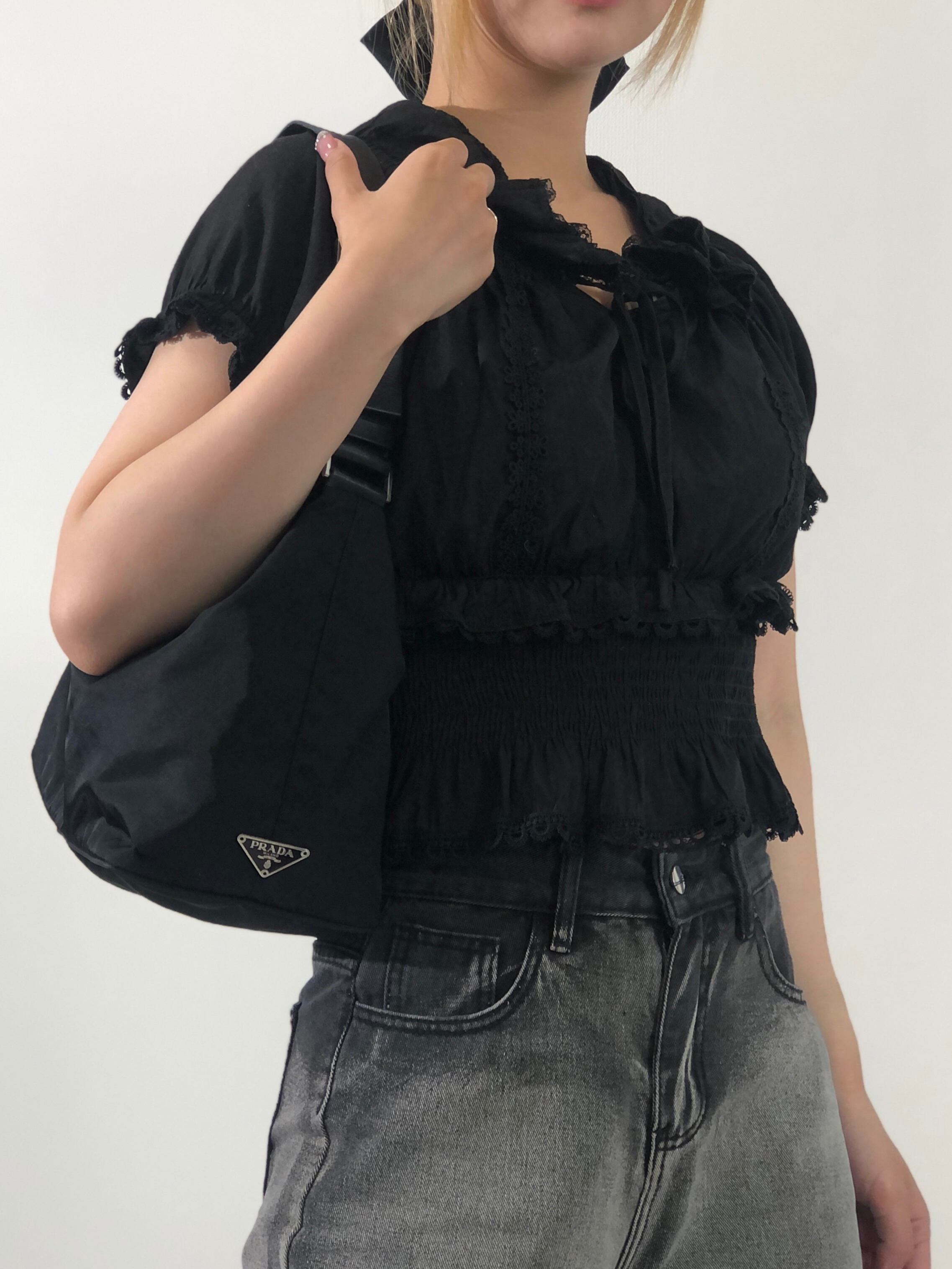 PRADA プラダ トライアングルロゴ ナイロン×レザー ハンドバッグ ブラック vintage ヴィンテージ オールド un6hfw