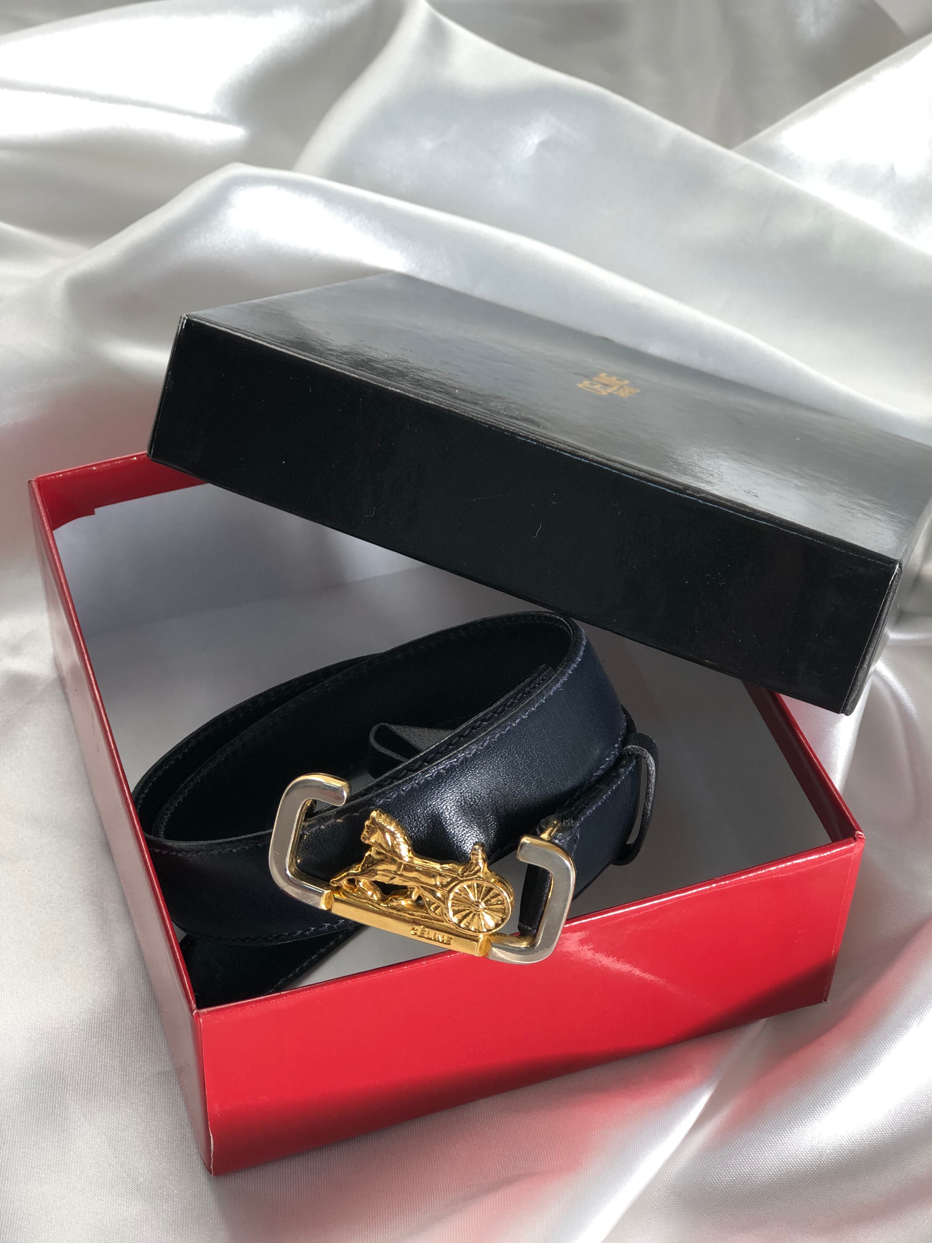 CELINE セリーヌ ホースキャリッジ レザー ベルト ネイビー vintage ヴィンテージ オールド zmr5za