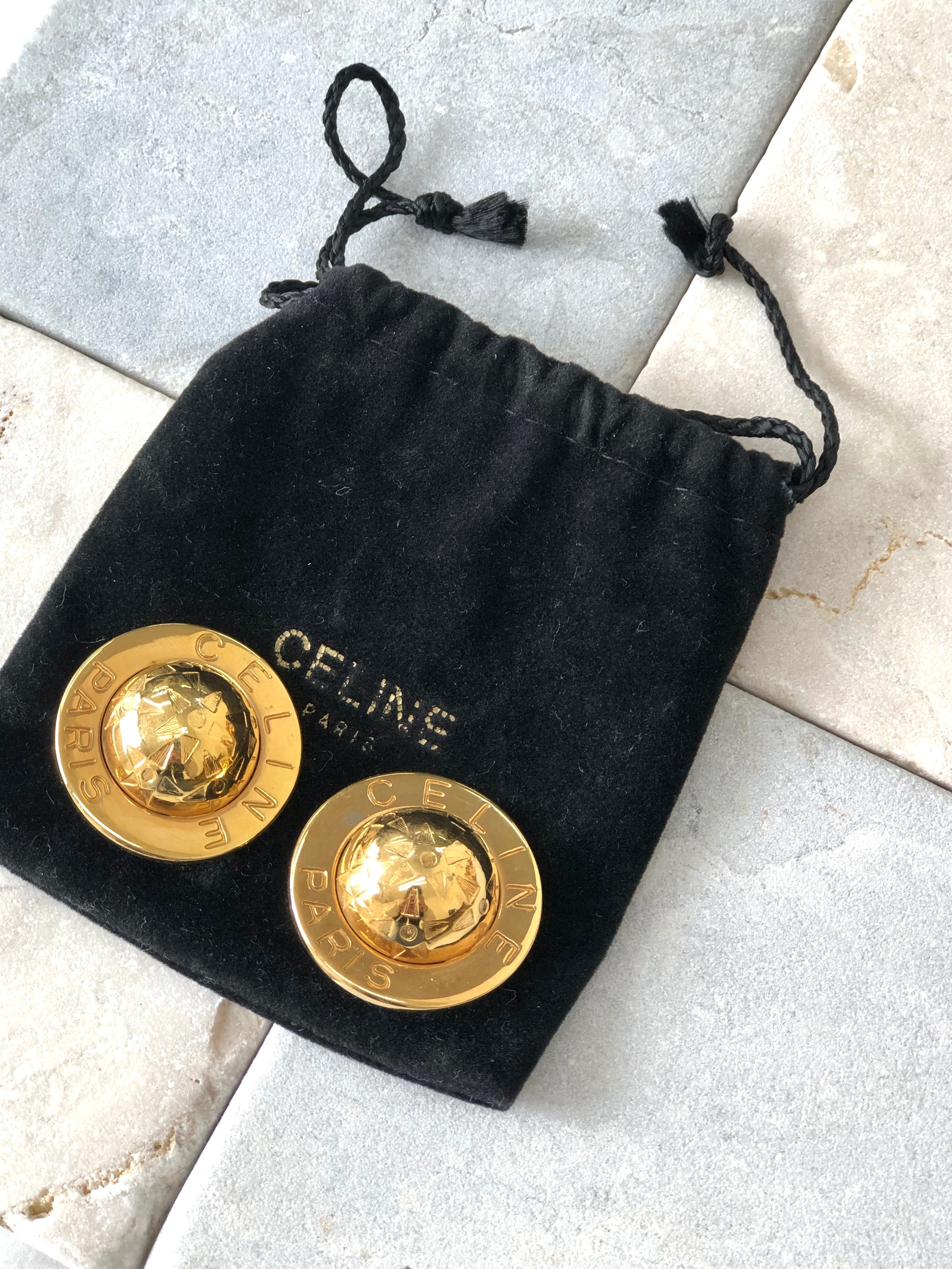 CELINE セリーヌ ロゴサークル スターボール ラウンド イヤリング ゴールド vintage ヴィンテージ オールド 5sk543