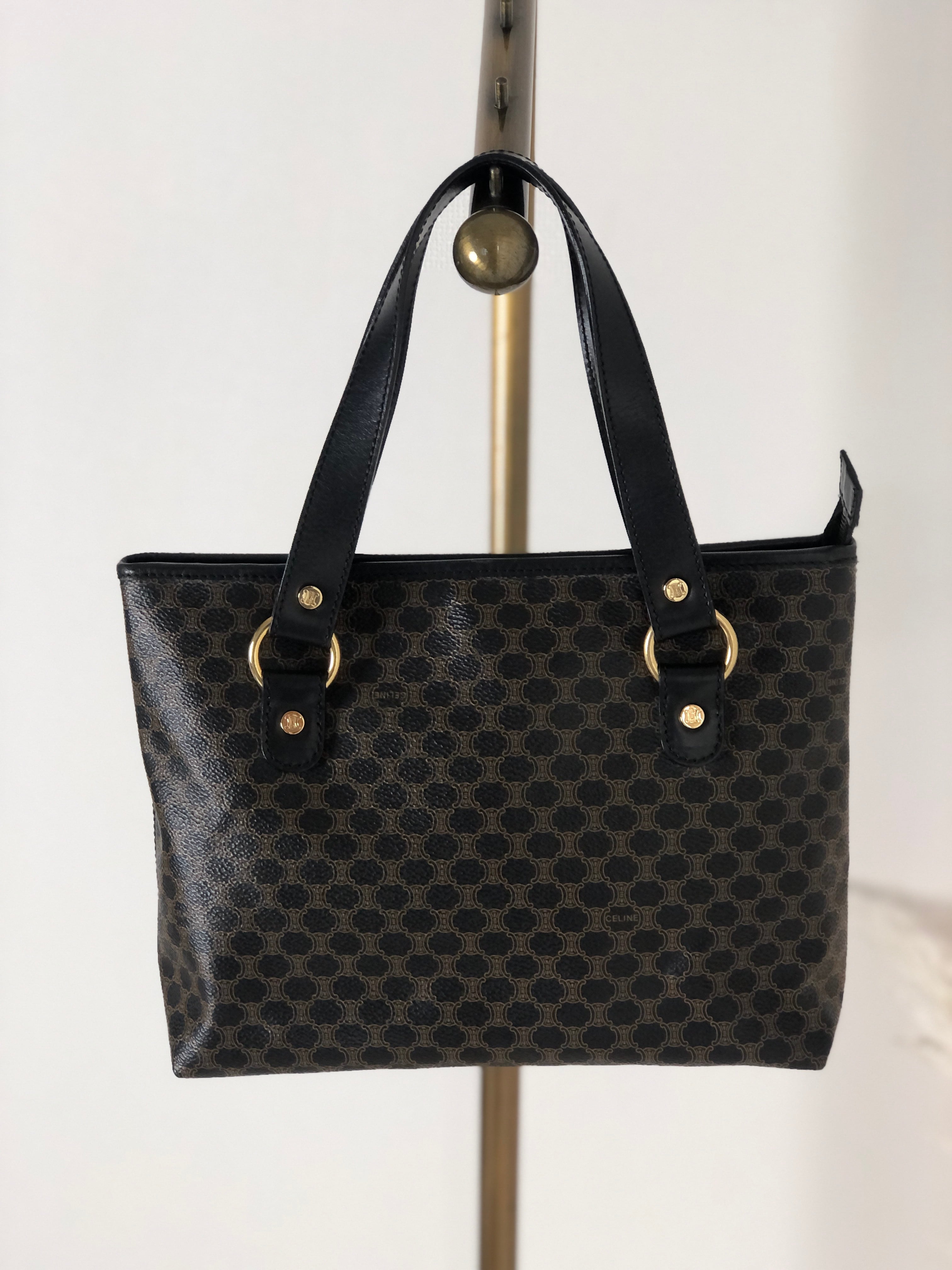 CELINE セリーヌ マカダム レザー ハンドバッグ ブラック vintage ヴィンテージ オールド a2psx4