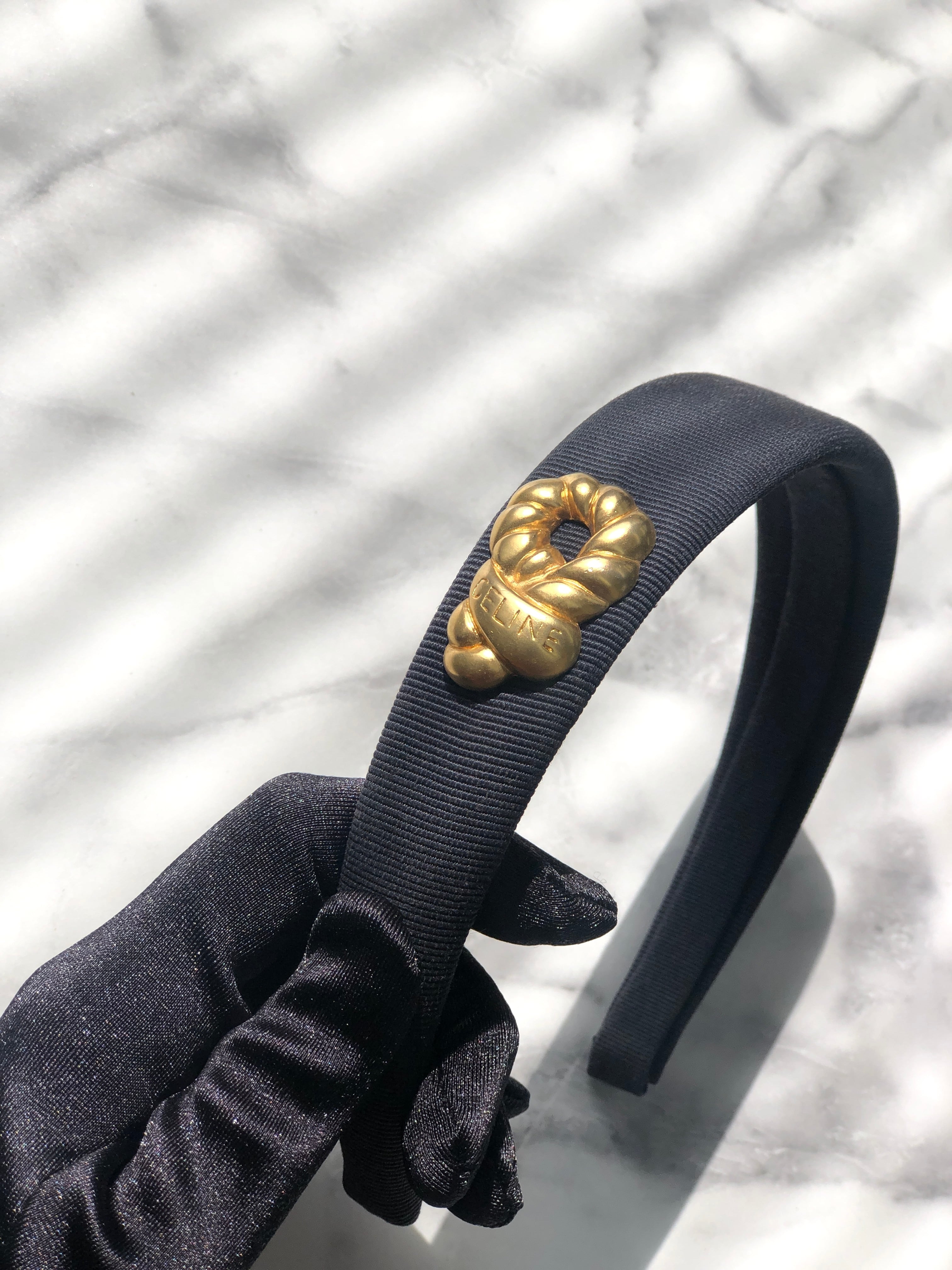 CELINE セリーヌ ツイスト ロゴ カチューシャ ネイビー vintage ヴィンテージ オールド 5745z4