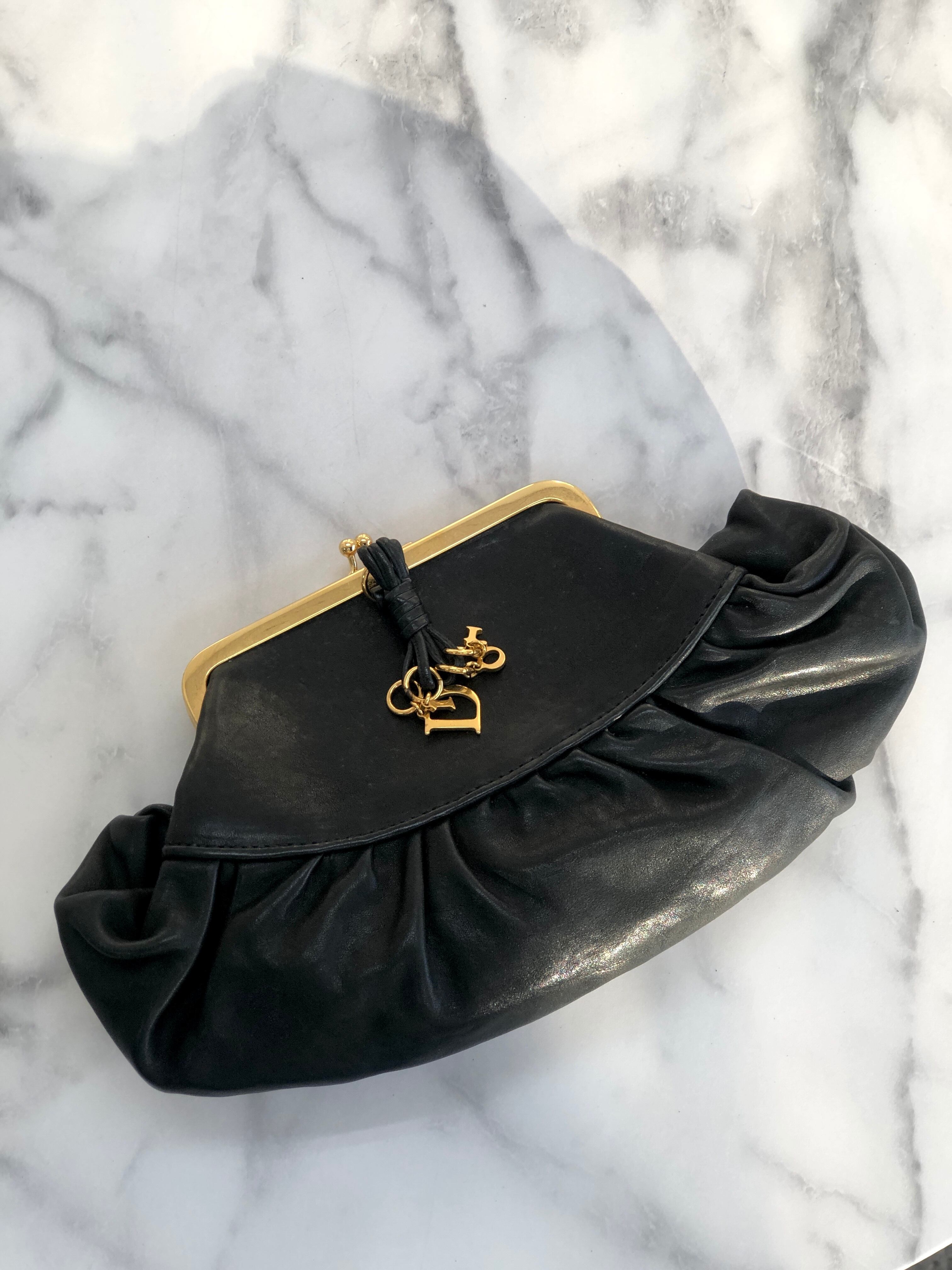 Christian Dior クリスチャン ディオール ロゴチャーム レザー がま口 ポーチ ブラック vintage ヴィンテージ オールド 4stjkz