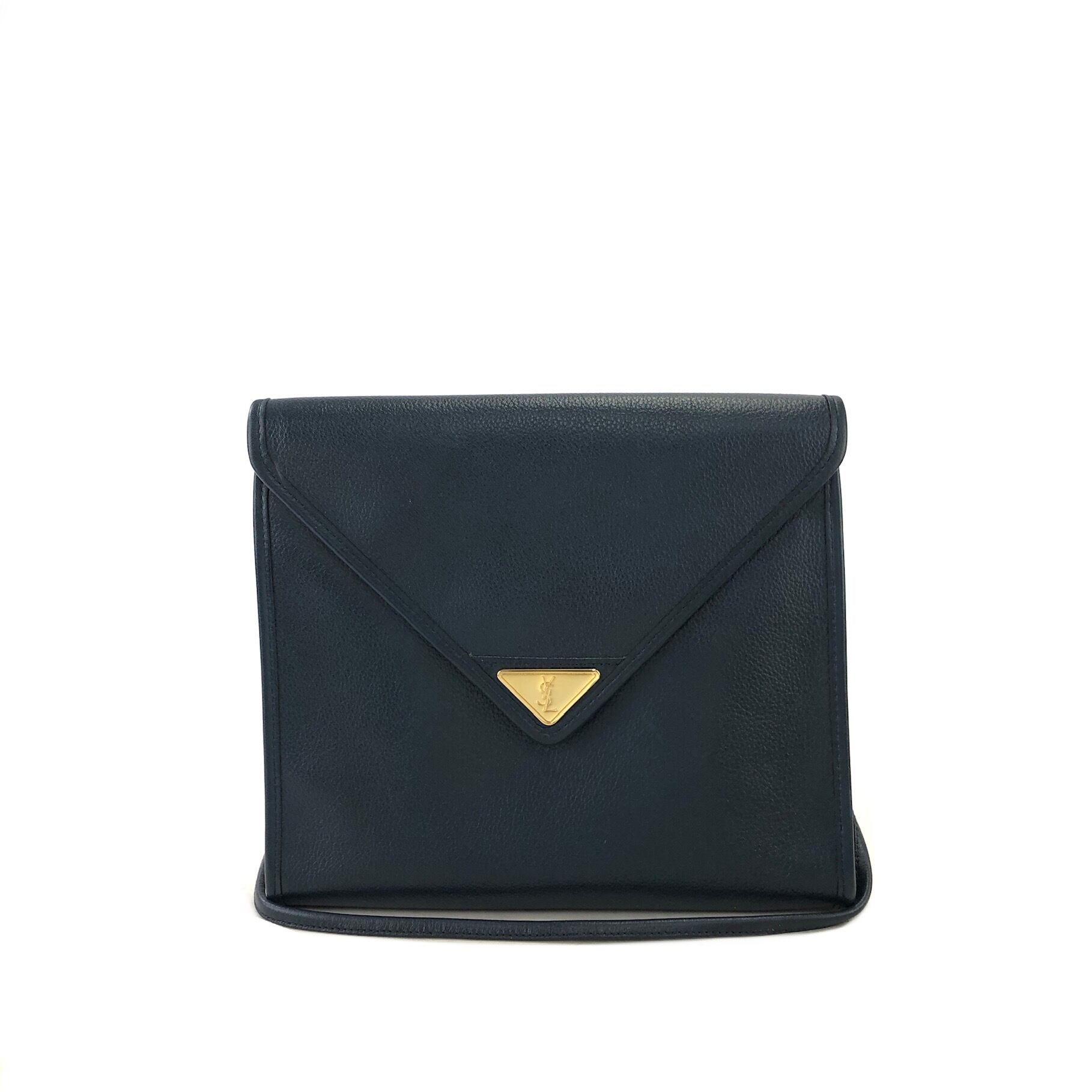 Yves Saint Laurent イヴ・サンローラン YSLロゴ レザー ショルダーバッグ ネイビー vintage ヴィンテージ オールド 26gkij