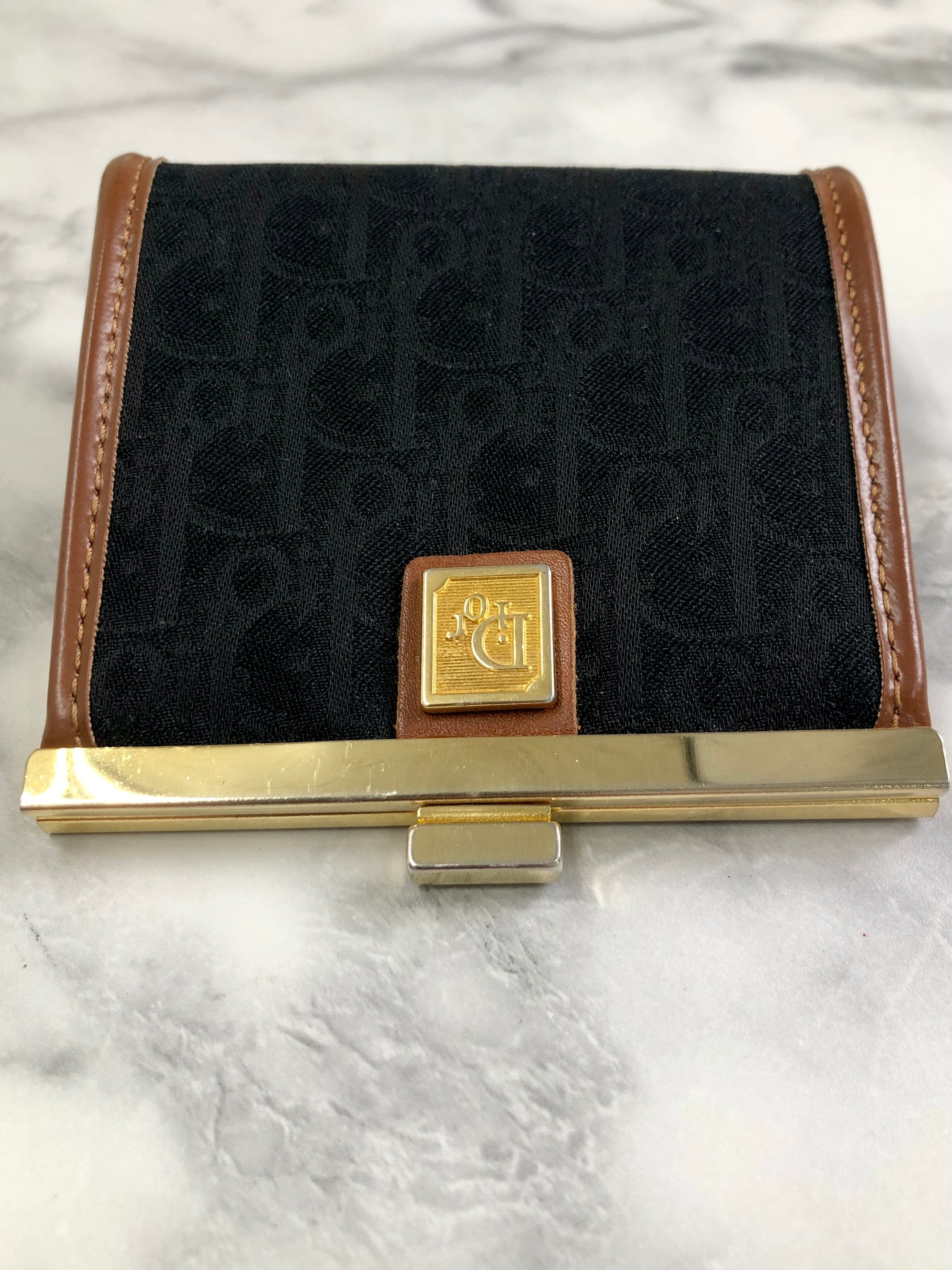 Christian Dior クリスチャン ディオール トロッター ロゴ ジャガード がま口 コインケース ブラック キャメル vintage ヴィンテージ オールドセリーヌ 5w6fms