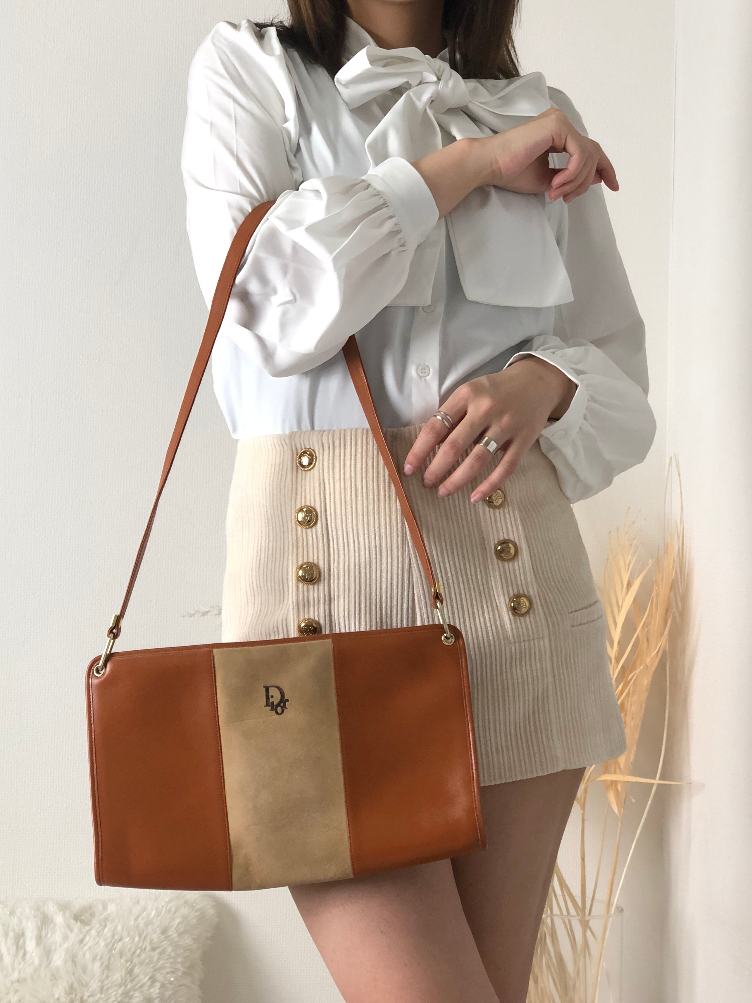 Christian Dior クリスチャン ディオール Diorモチーフ レザー スエード セミショルダー ショルダーバッグ ブラウン vintage ヴィンテージ オールド pygxuy