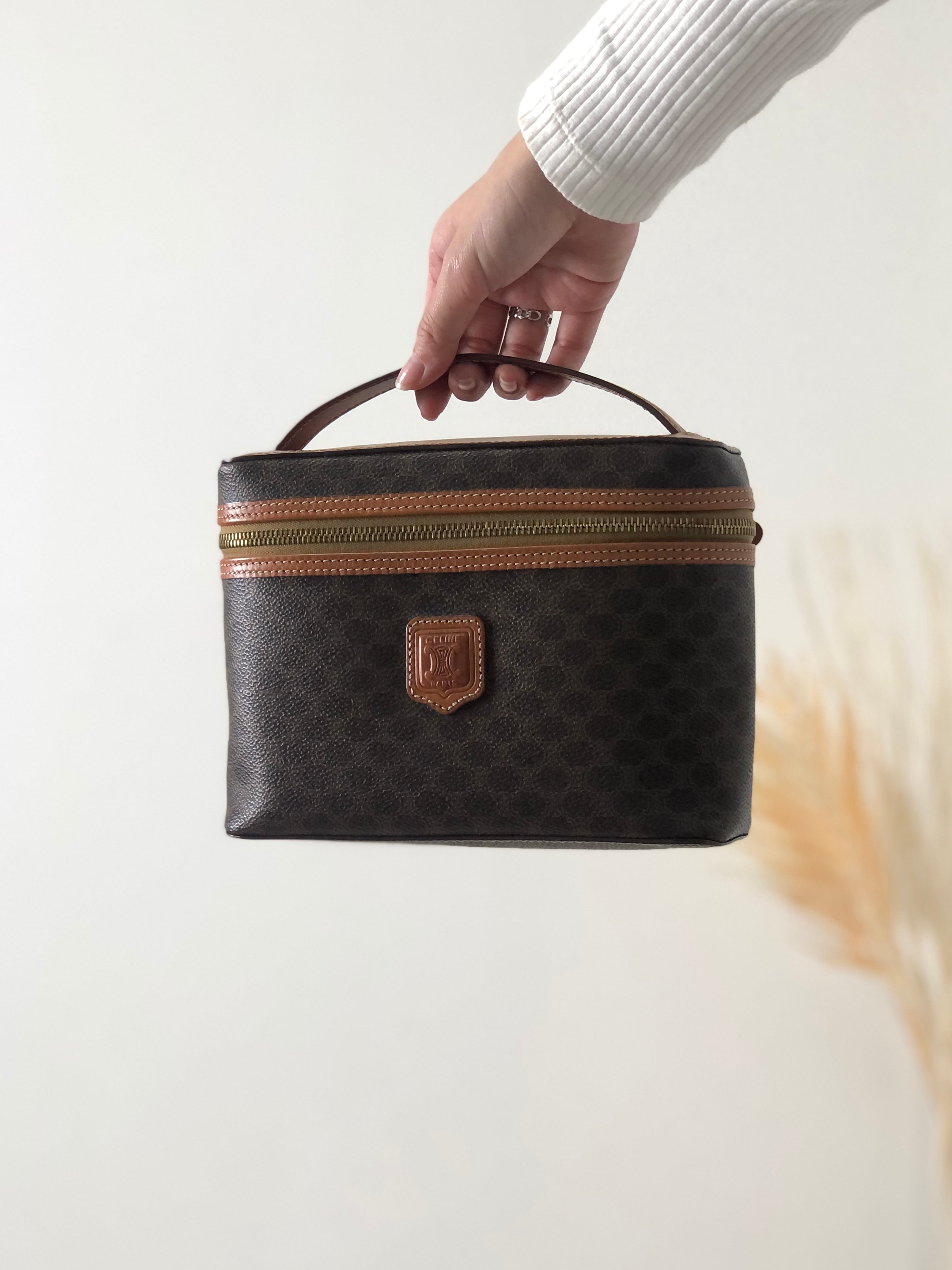 CELINE セリーヌ マカダム ブラゾン バニティバッグ ハンドバッグ ブラウン Vintage mi8ijt