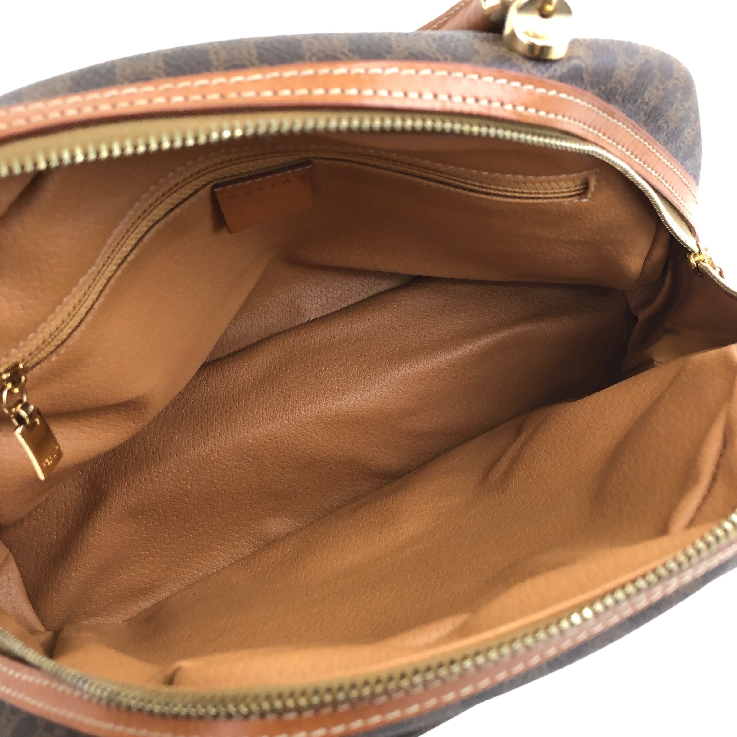 CELINE セリーヌ マカダム PVC レザー ブガッティ ハンドバッグ ブラウン 3jzxwt