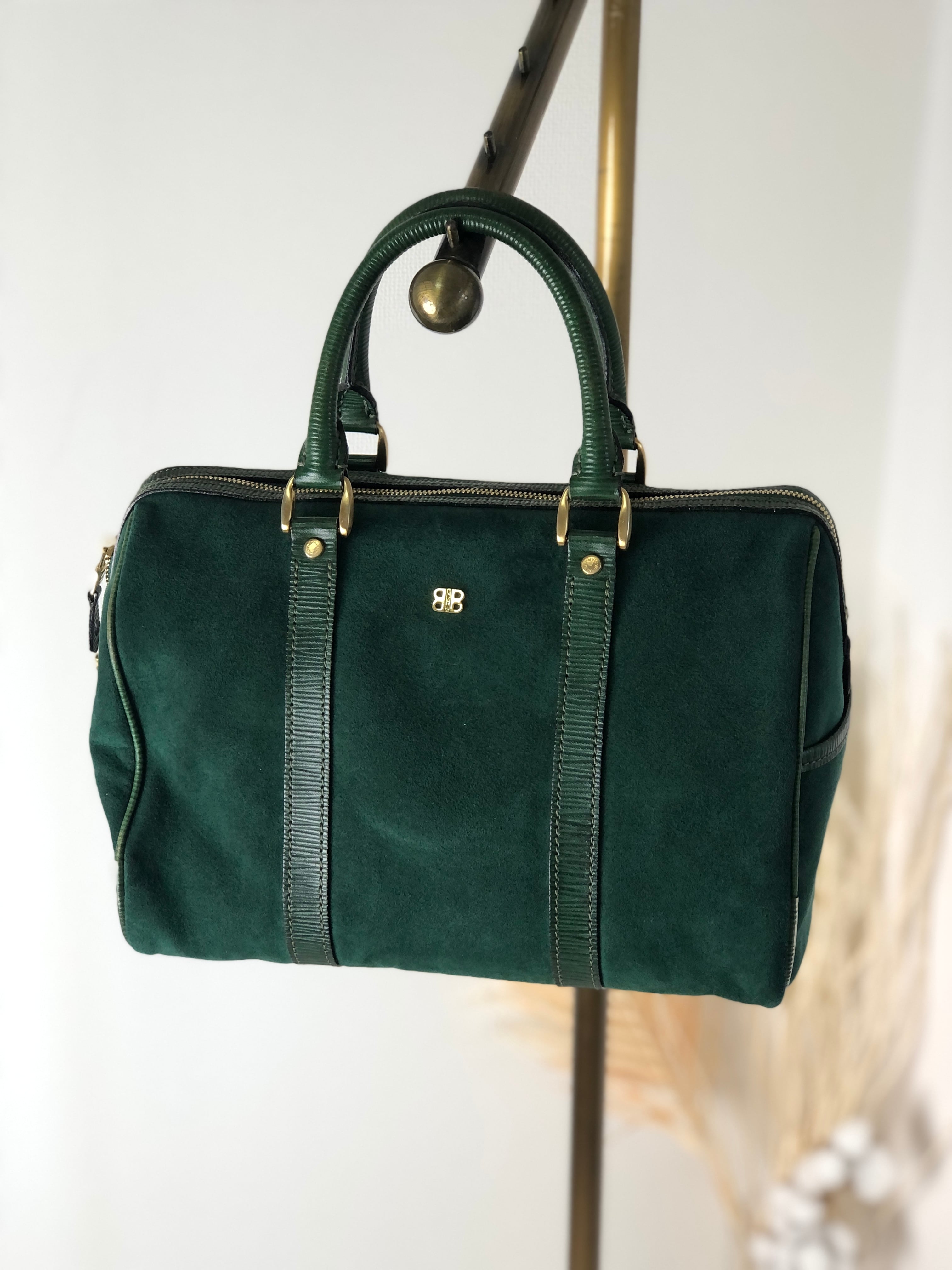 BALENCIAGA バレンシアガ ロゴ スエード ボストンバッグ グリーン vintage ヴィンテージ オールド cswsjb