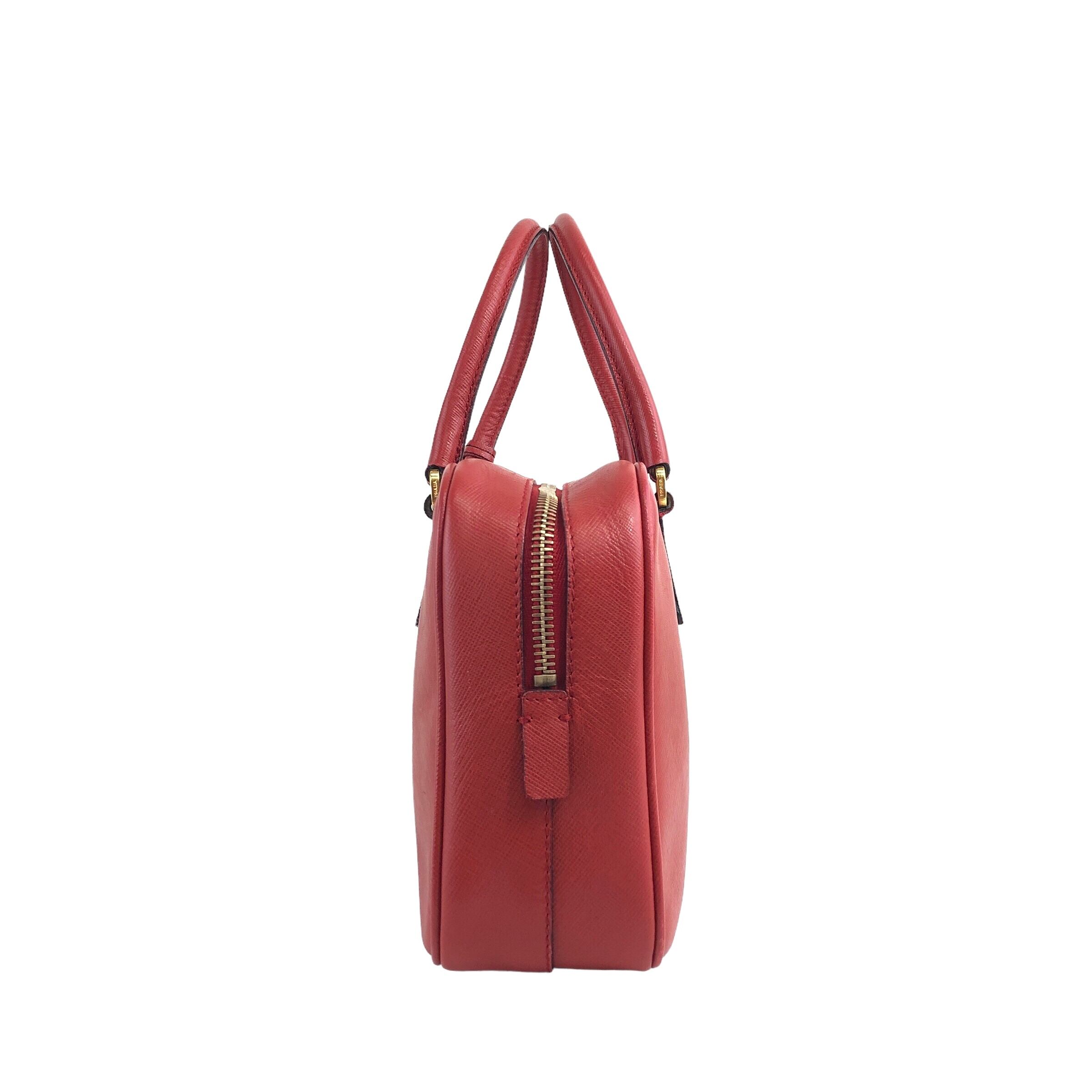 PRADA プラダ ハンドバッグ レッド ロゴ サフィアーノレザー パドロック vintage ヴィンテージ オールド udugdn