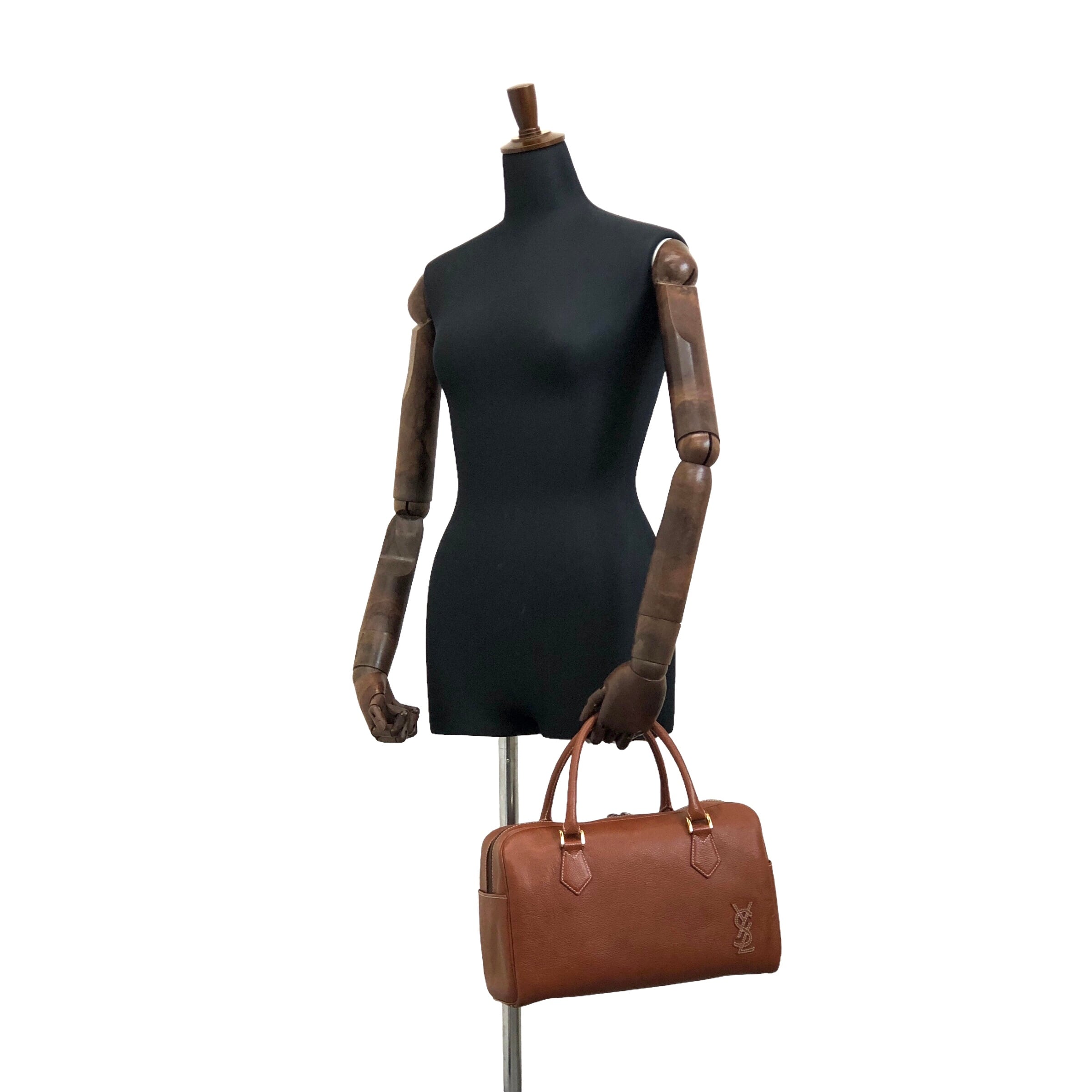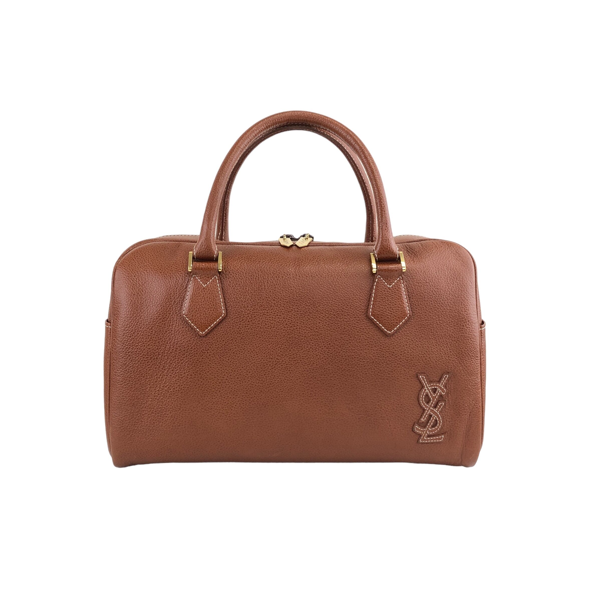 Yves Saint Laurent イヴ・サンローラン ハンドバッグ ブラウン YSL レザー ステッチ ボストン vintage ヴィンテージ オールド vt7xkg
