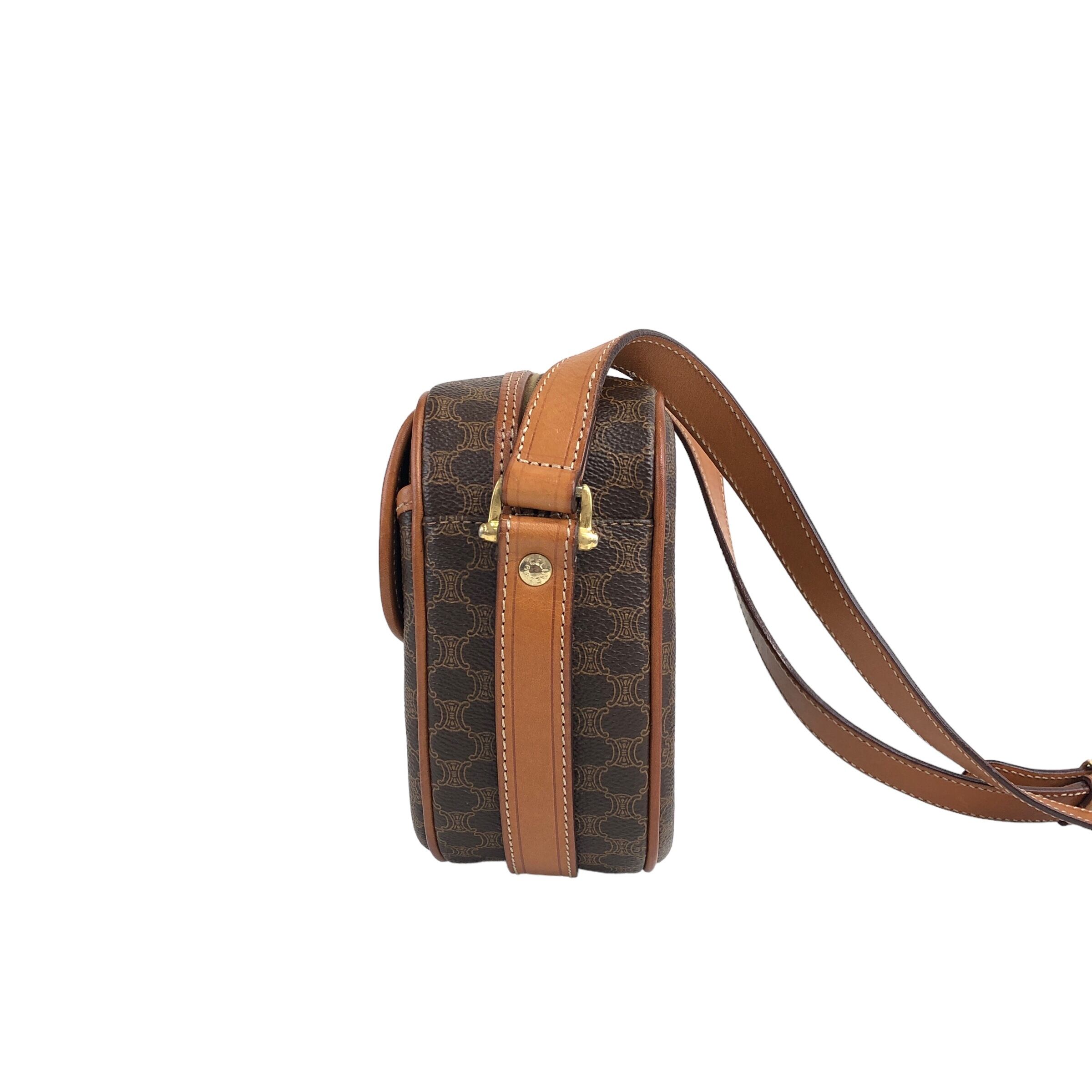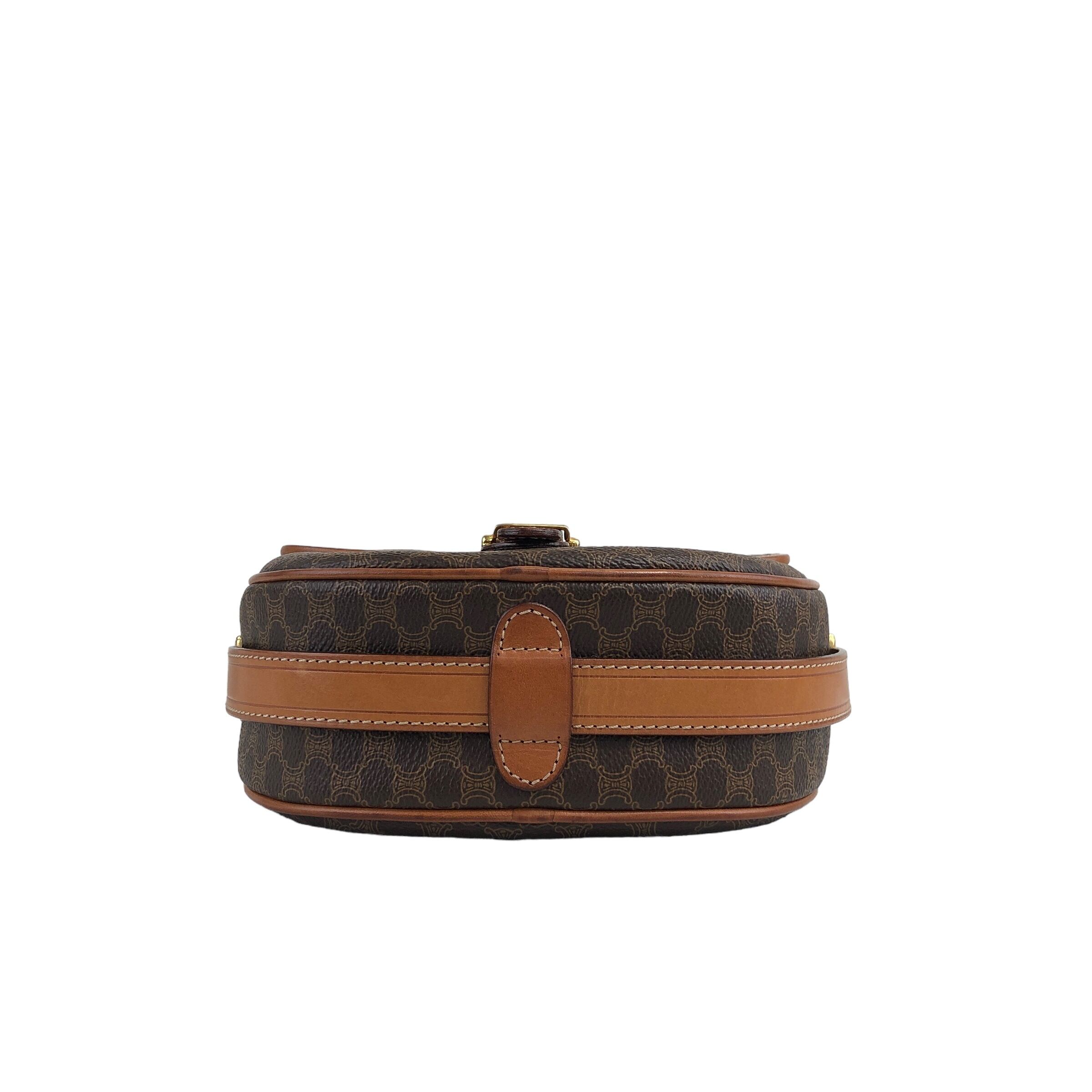 CELINE セリーヌ マカダム ショルダーバッグ ブラウン ブラゾン型押し PVC レザー フロントバックル vintage ヴィンテージ オールド c37k27