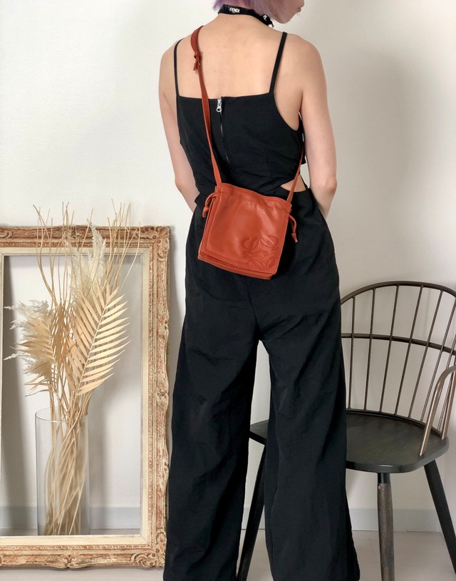 LOEWE ロエベ アナグラム ショルダーバッグ ブラウン レザー 巾着 vintage ヴィンテージ オールド gu6xkn