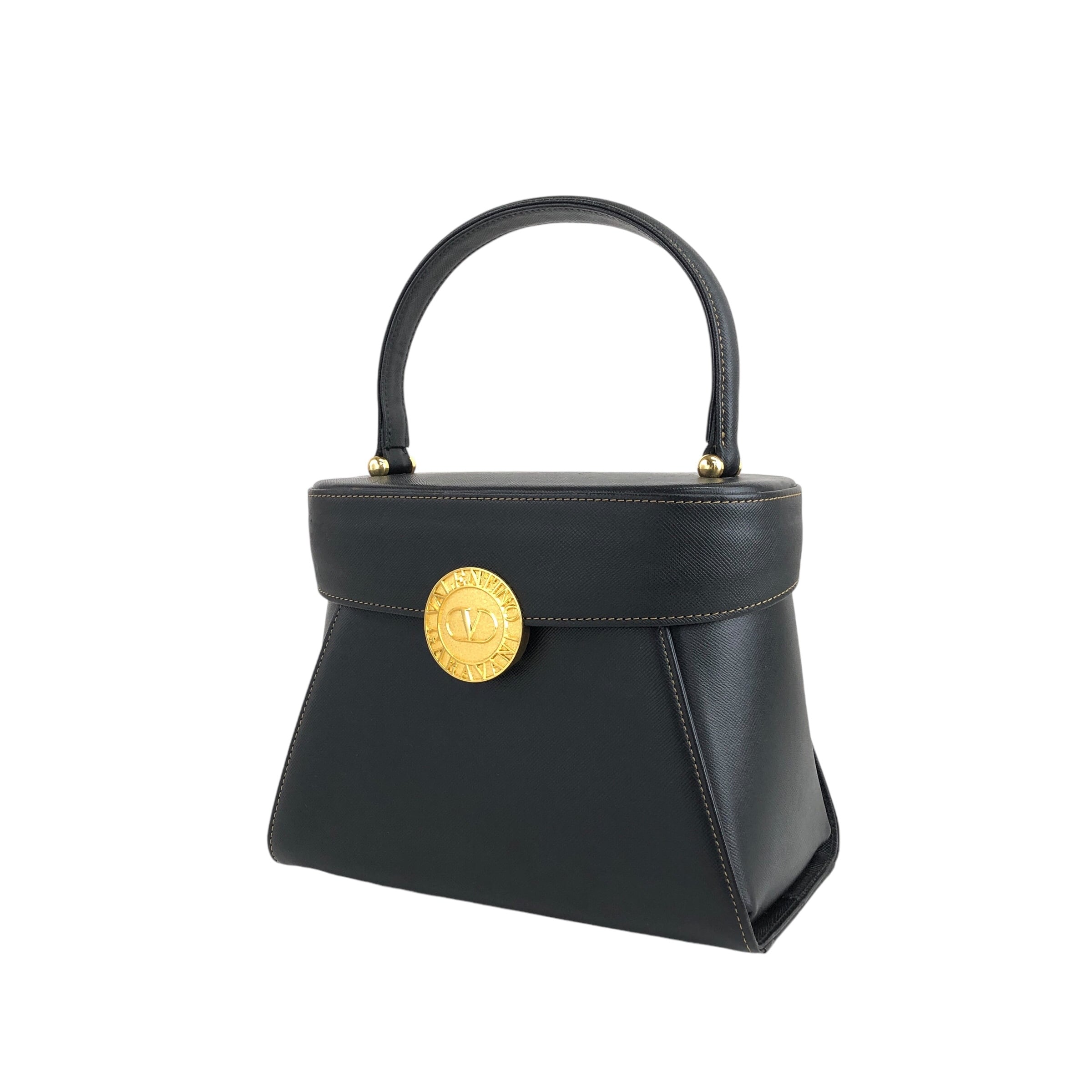 VALENTINO GARAVANI ヴァレンティノガラヴァーニ ハンドバッグ ブラック メダルモチーフ レザー バニティバッグ vintage ヴィンテージ オールド 68dag4