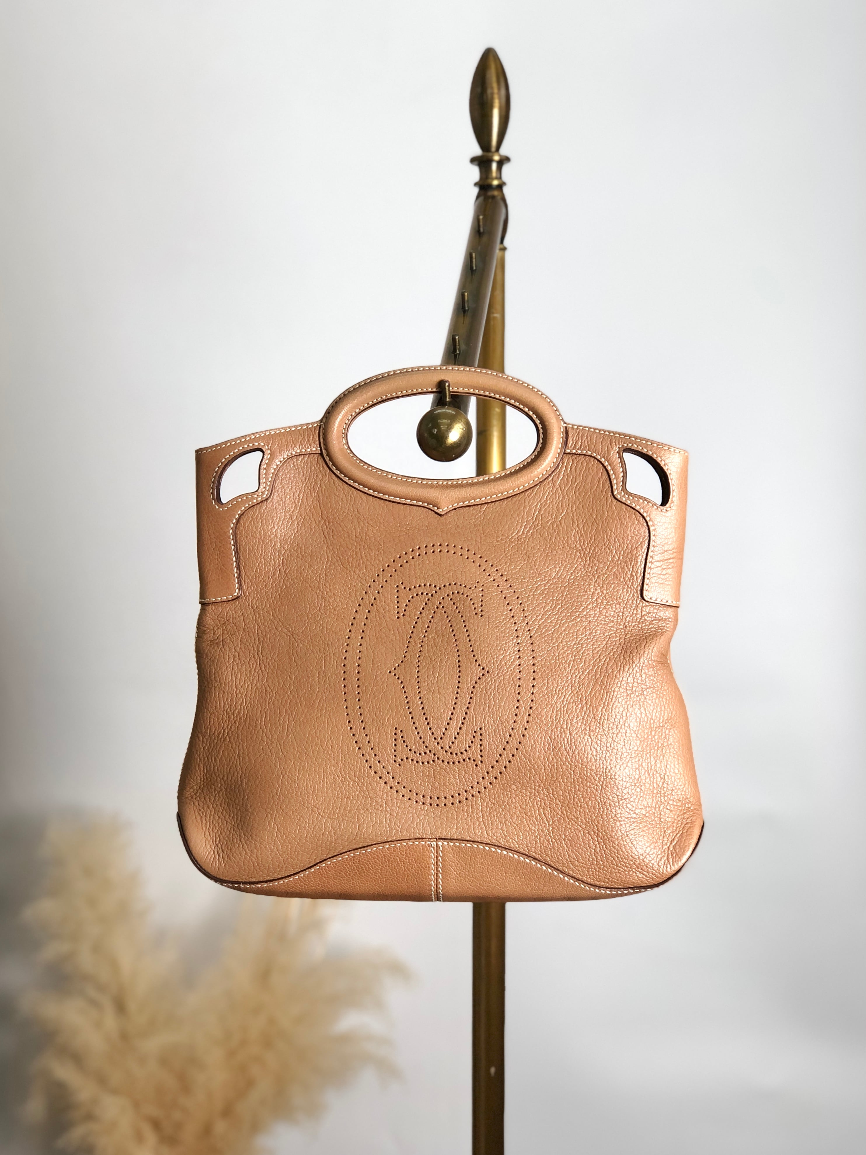 Cartier カルティエ ハンドバッグ ブラウン ロゴ レザー vintage ヴィンテージ オールド dbgb84