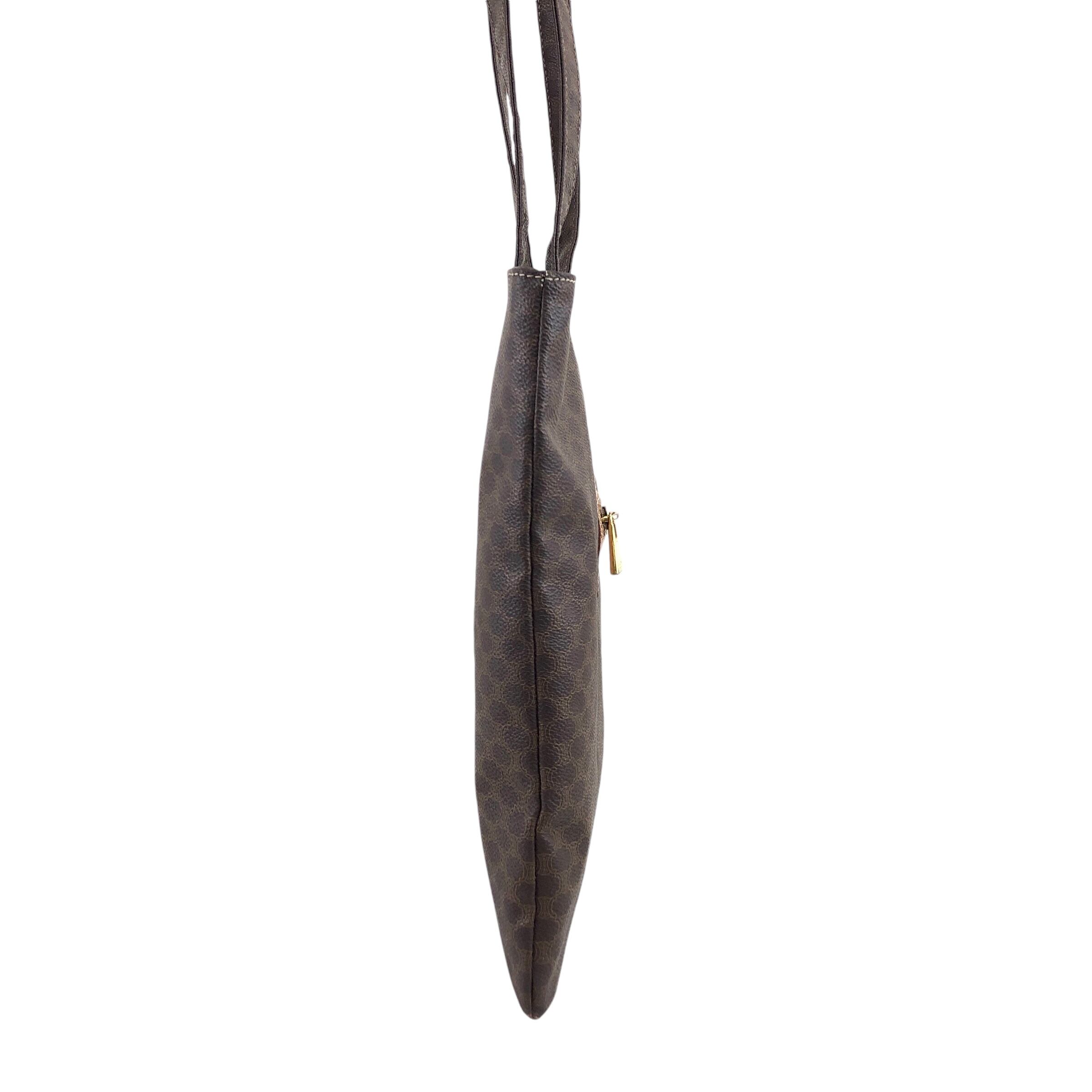 CELINE セリーヌ マカダム ハンドバッグ ブラウン ロゴ型押し PVCレザー トートバッグ vintage ヴィンテージ オールド idxpny