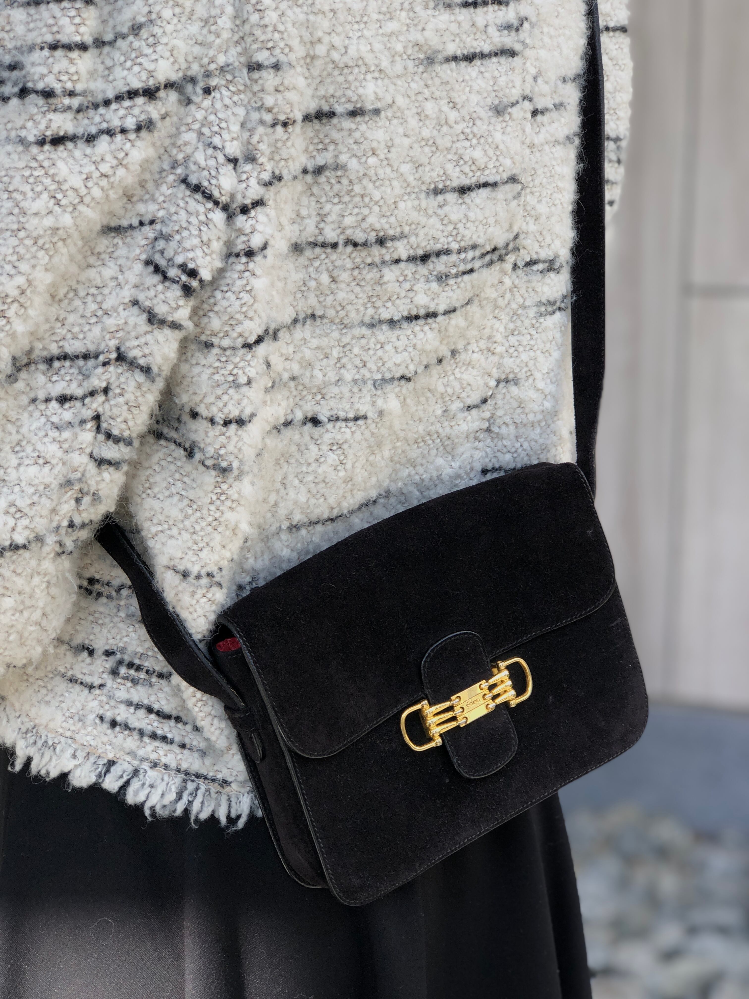 CELINE セリーヌ ショルダーバッグ ブラック ホースビット スエード クロスボディ vintage ヴィンテージ オールド yffeiu