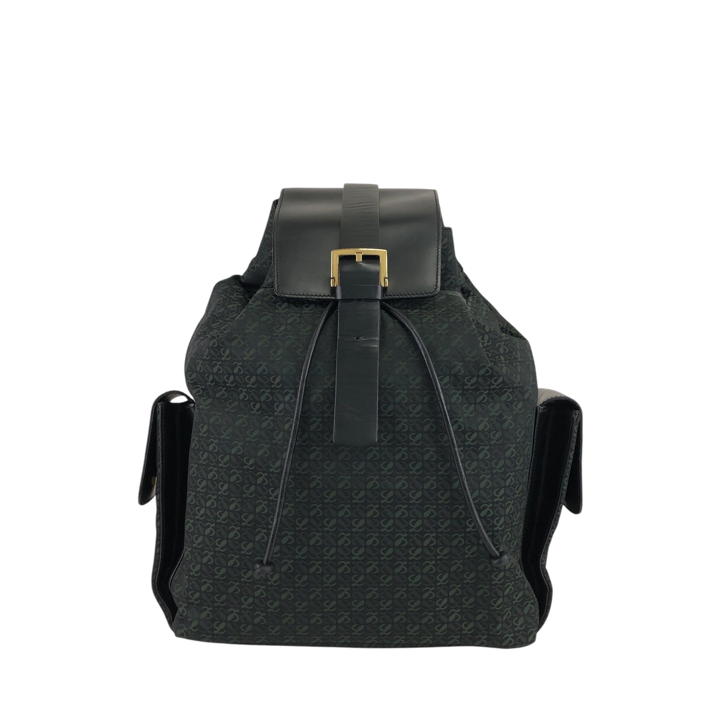LOEWE ロエベ 総柄 バックパック グリーン ブラック ジャガード レザー リュック vintage ヴィンテージ オールド si4hbw
