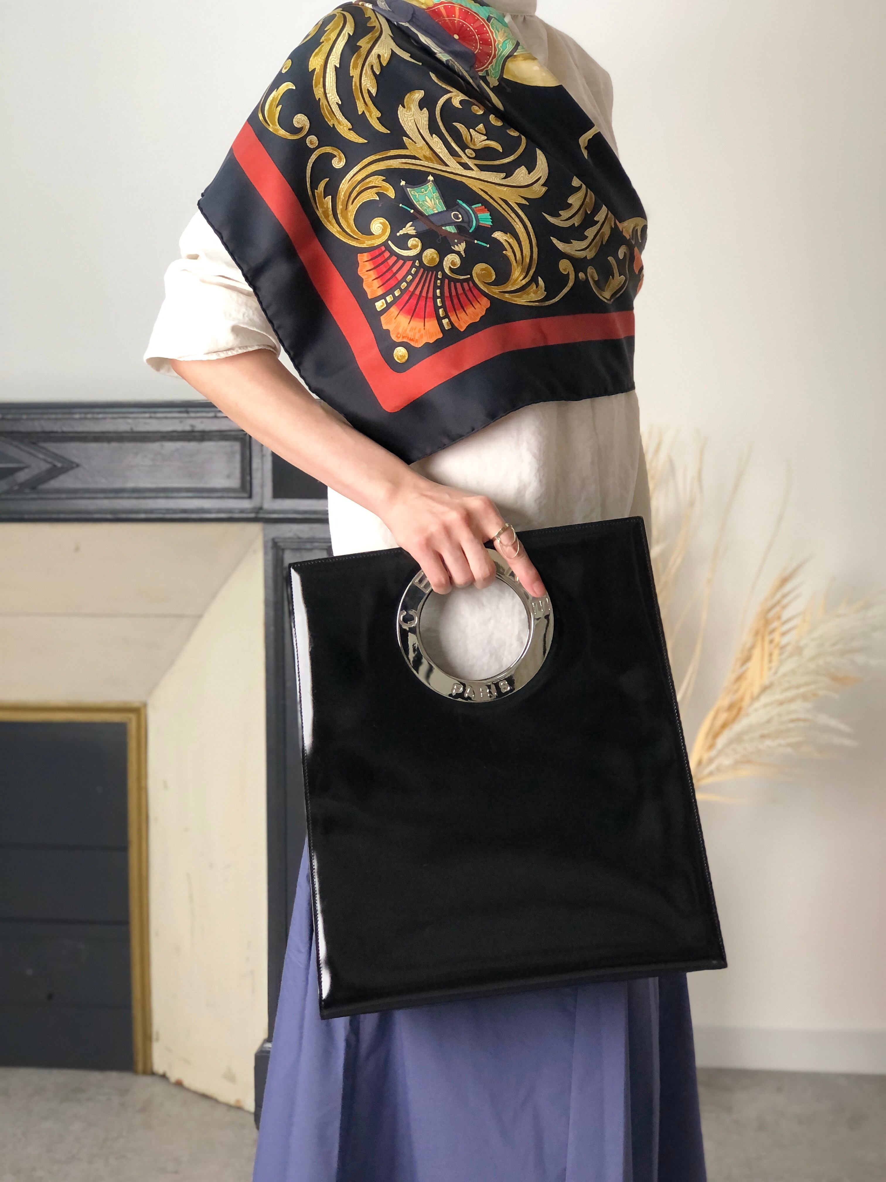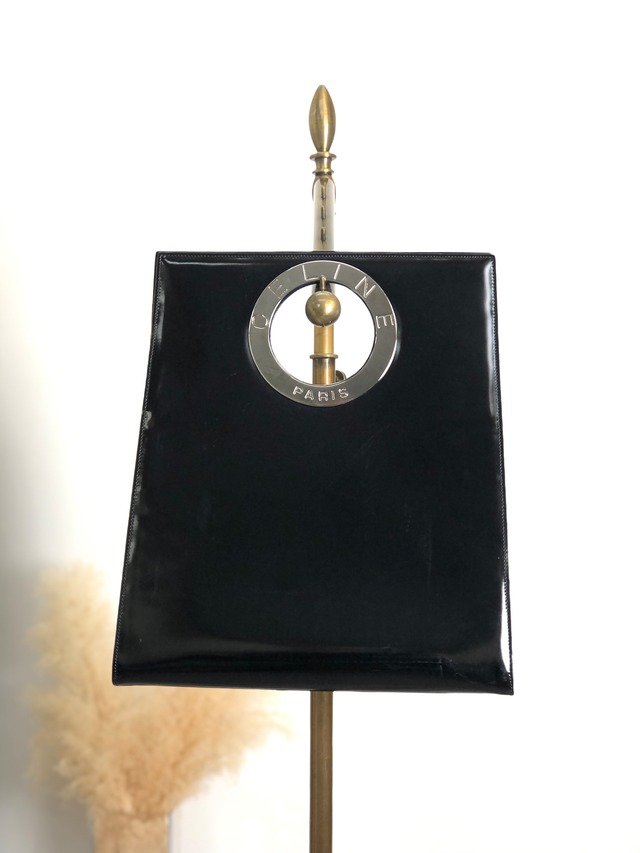 CELINE セリーヌ ハンドバッグ ブラック シルバー ロゴ サークル レザーvintage ヴィンテージ オールド unm36f