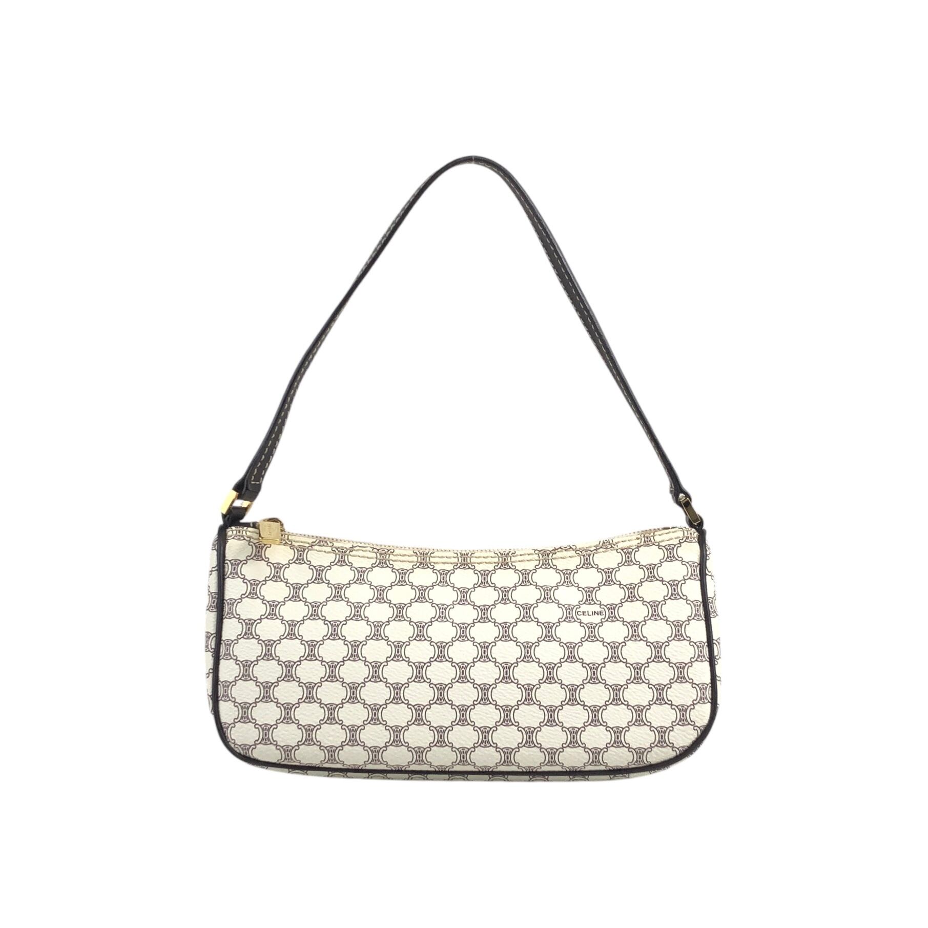 CELINE セリーヌ マカダム ハンドバッグ ホワイト PVC レザー ホーボーバッグ ミニバッグ vintage ヴィンテージ オールド dn6mmt